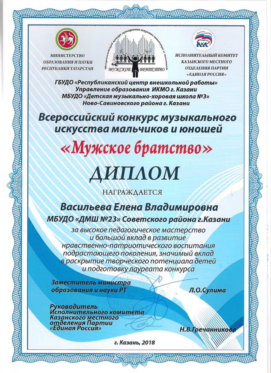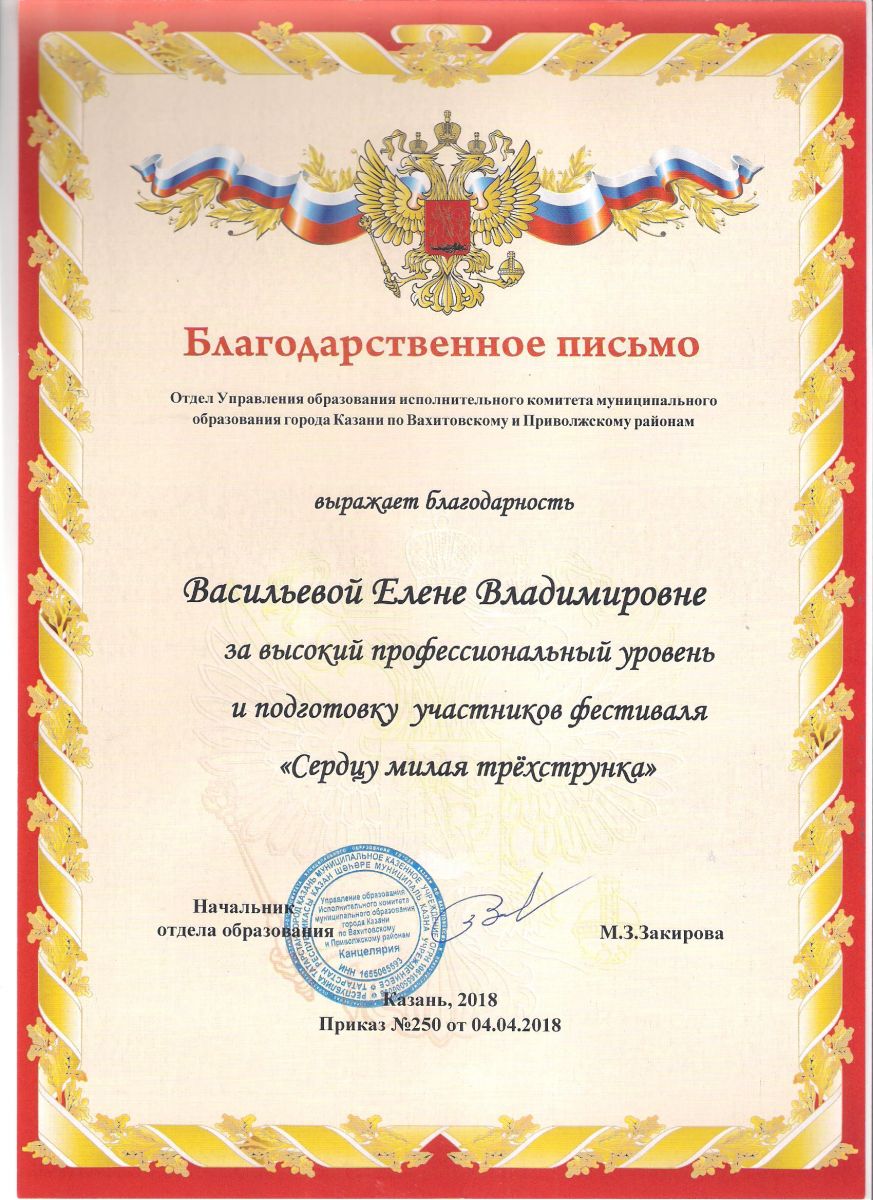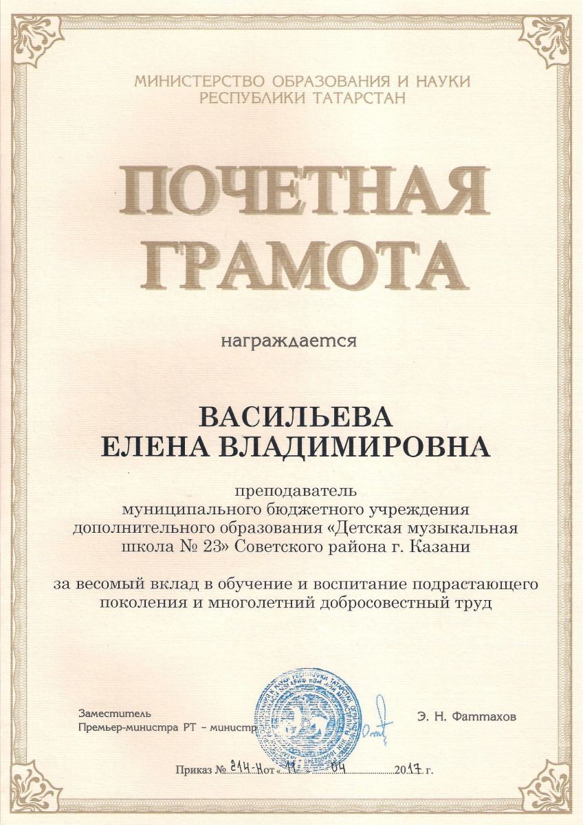 Почётная грамота Министерства образования и науки Республики Татарстан - Васильева Е.В.