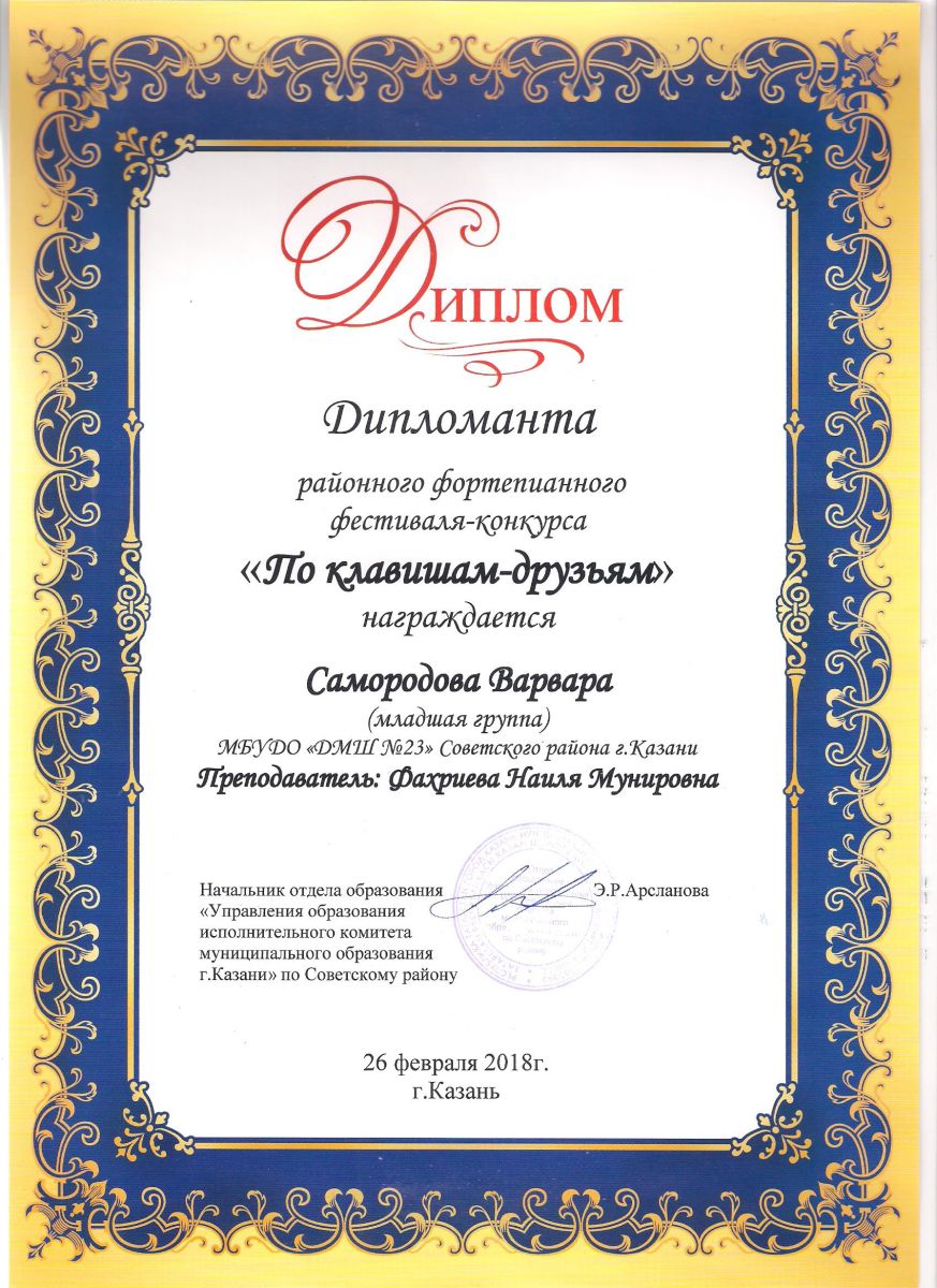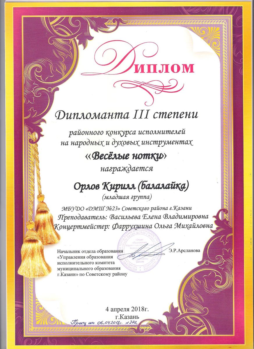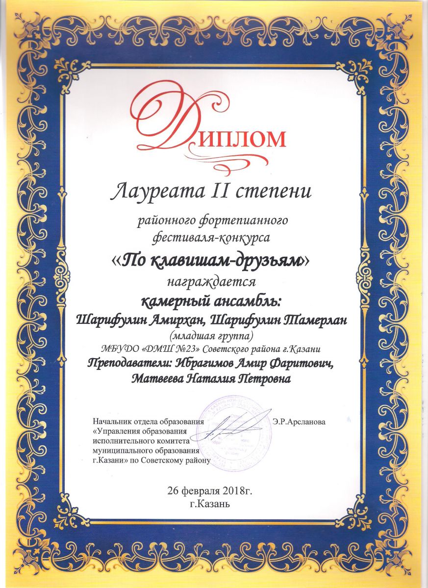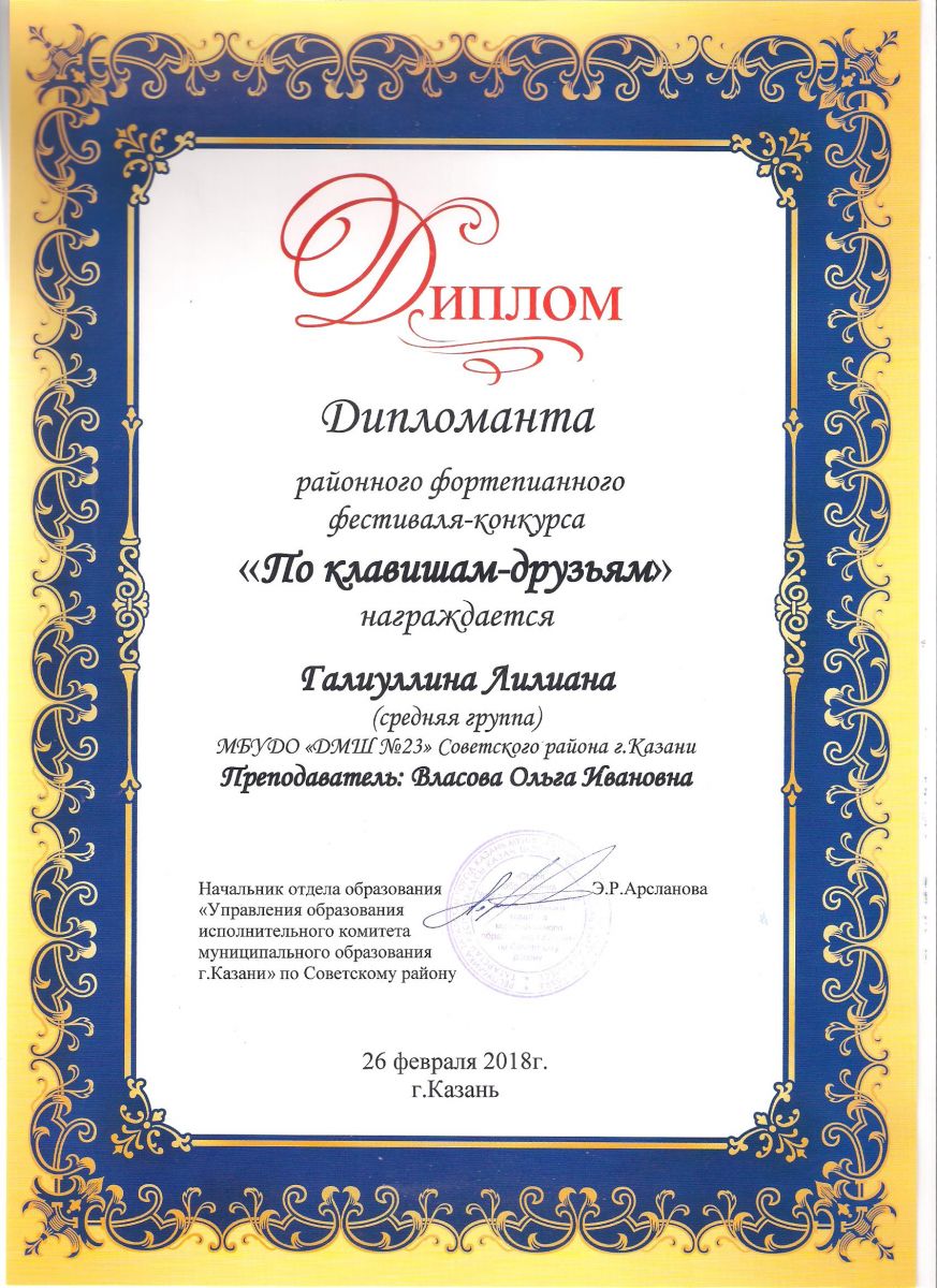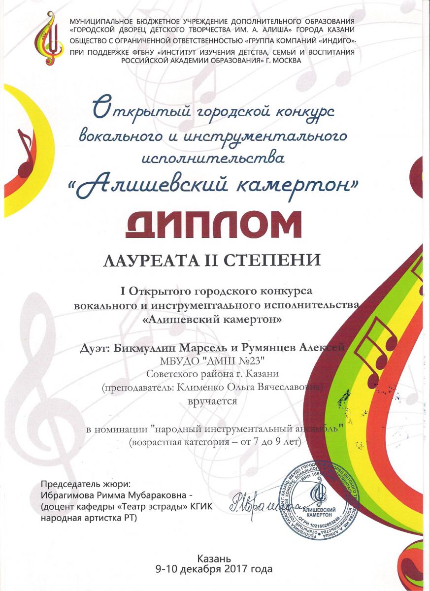 Районный конкурс исполнителей на народных и духовых инструментах "Весёлые нотки" - Диплом дипломанта 1 степени - Сабирзянова Адиля (преподаватель: Петрова М.С., концертмейстер: Петрова М.С.)