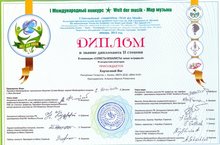 - Йагмур Изель – II место, номинация «Вокальное и инструментальное творчество» (класс преподавателя Черновой О.Р.)