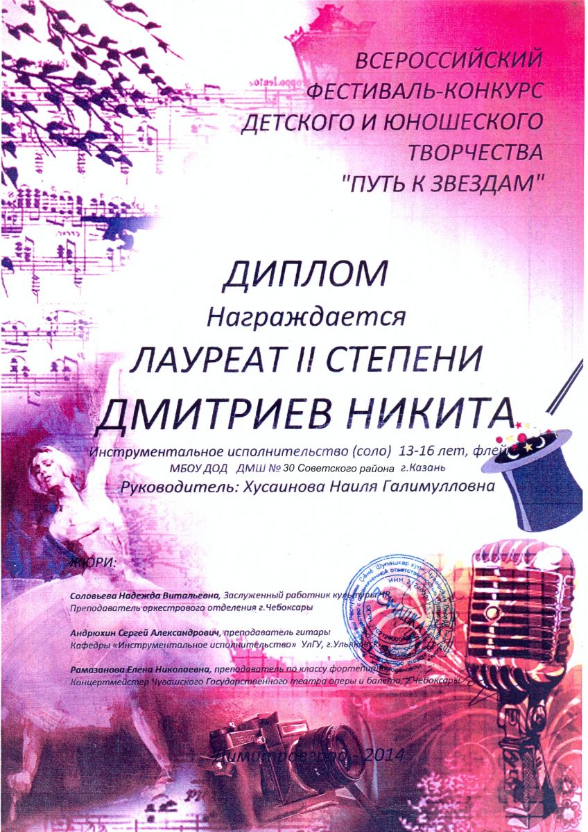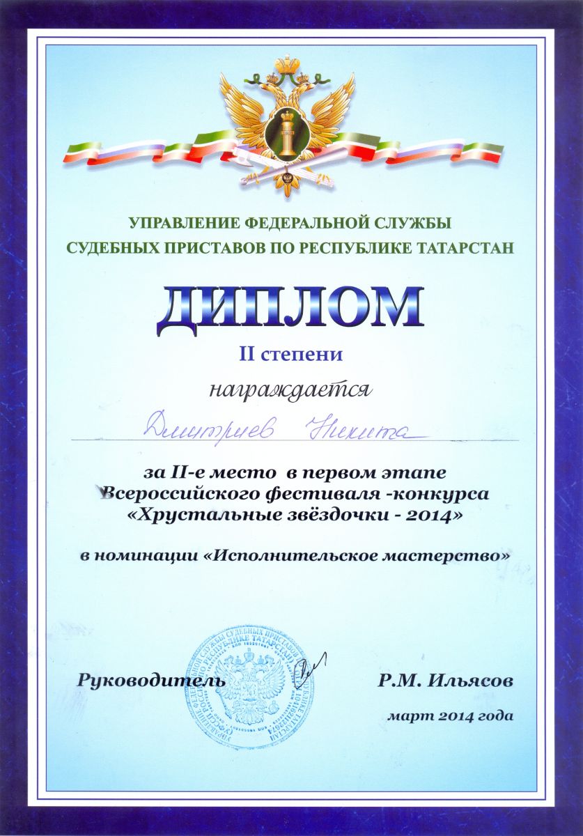 Всероссийский фестиваль-конкурс «Хрустальные звездочки» - Дмитриев Никита - II место