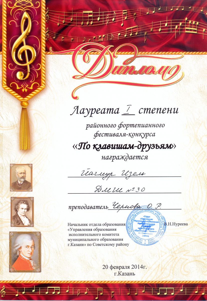 Районный фортепианный фестиваль – конкурс «По клавишам-друзьям» - Йагмур Изель - I место