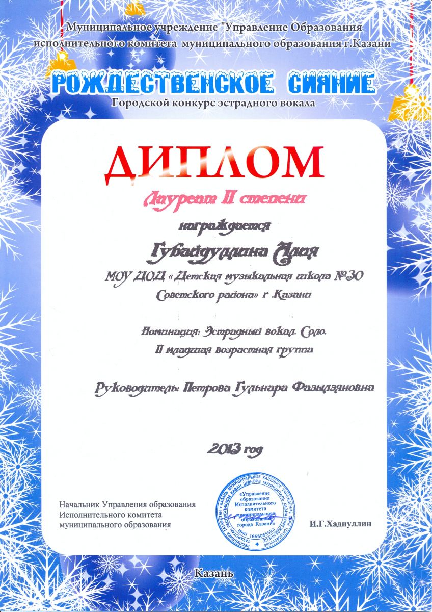 Городской конкурс эстрадного вокала «Рождественское сияние»– Губайдуллина Алия – II место