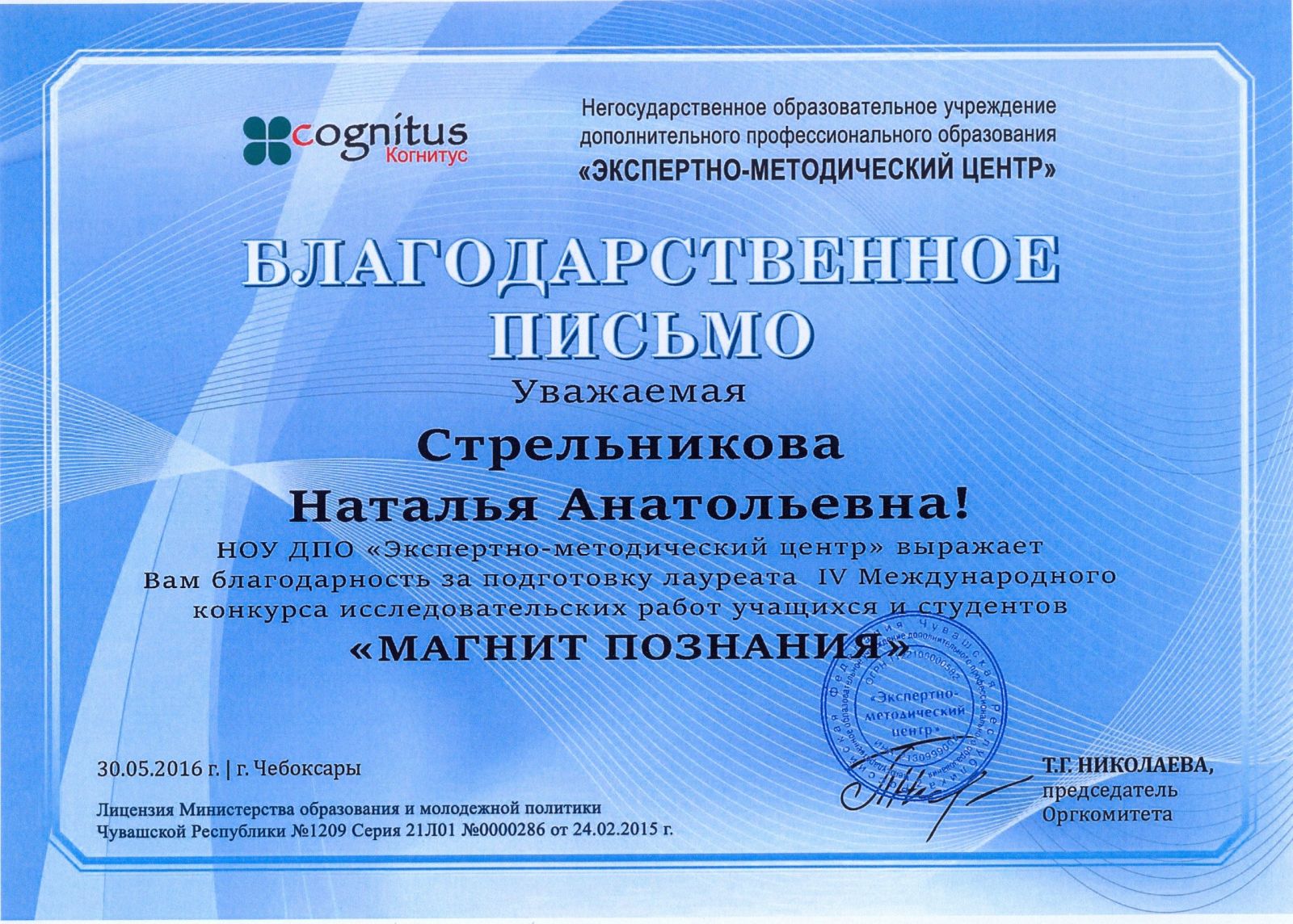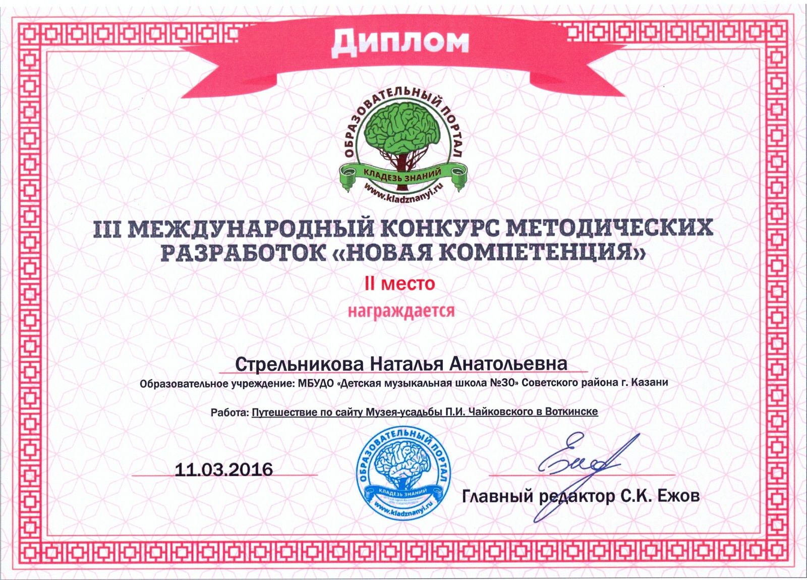 III Международный конкурс метадических разработок "Новая компетенция" - Стрельникова Н.А. - II место