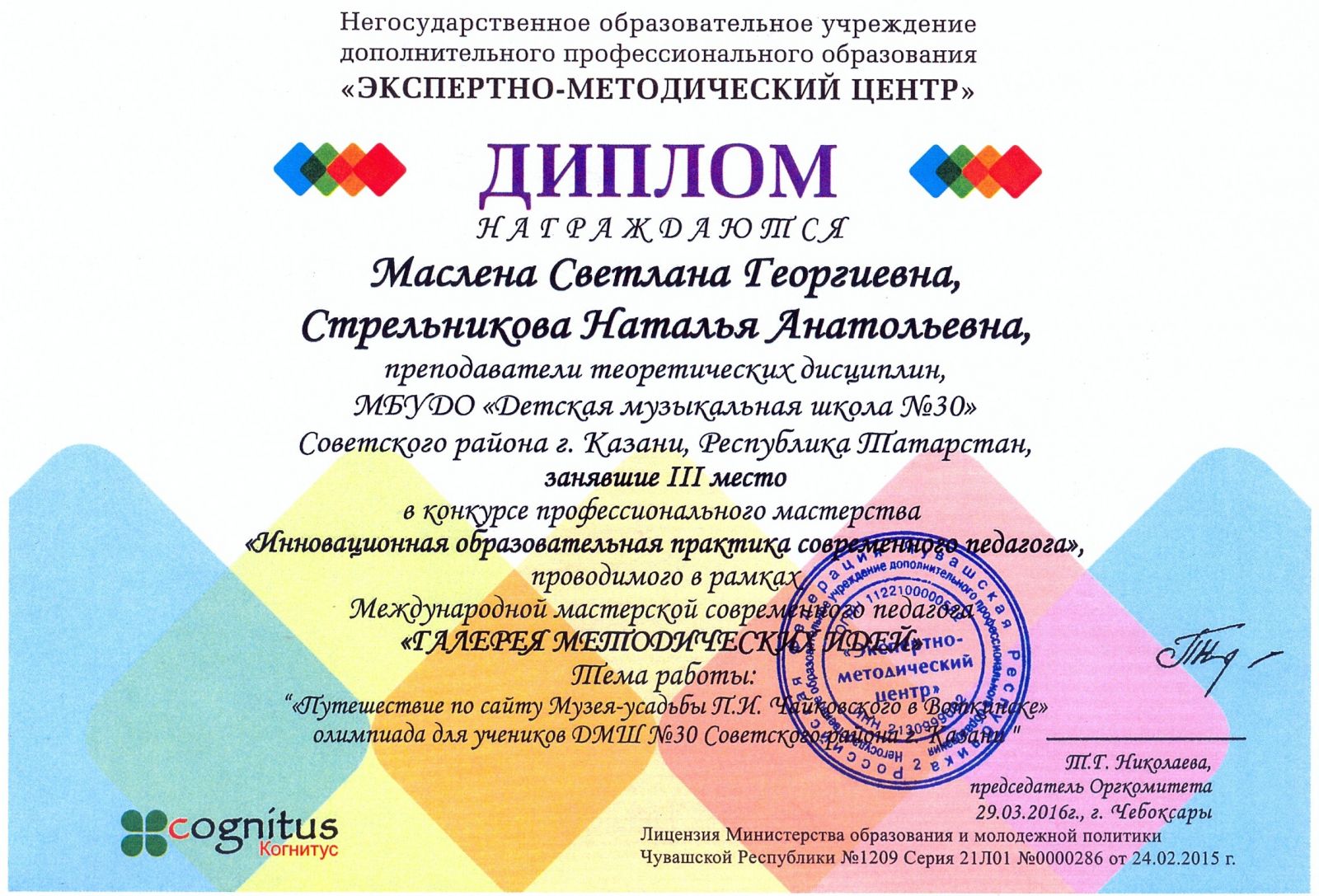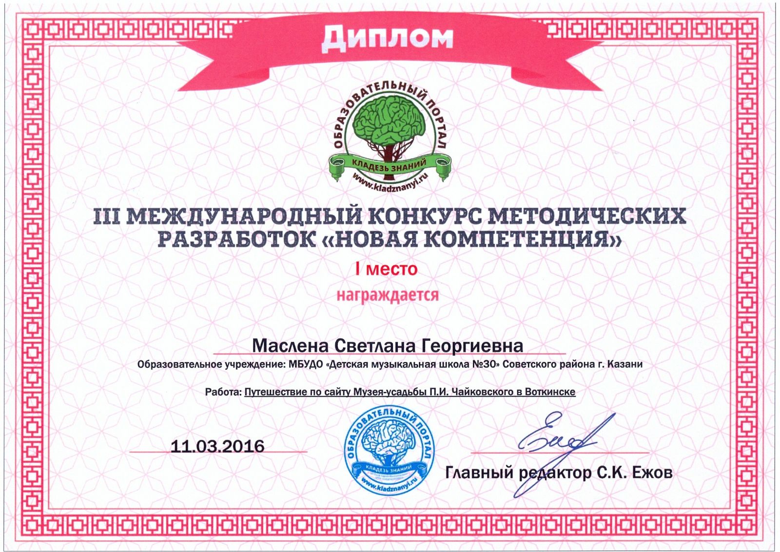 III Международный конкурс метадических разработок "Новая компетенция" - Маслена С.Г. - I место