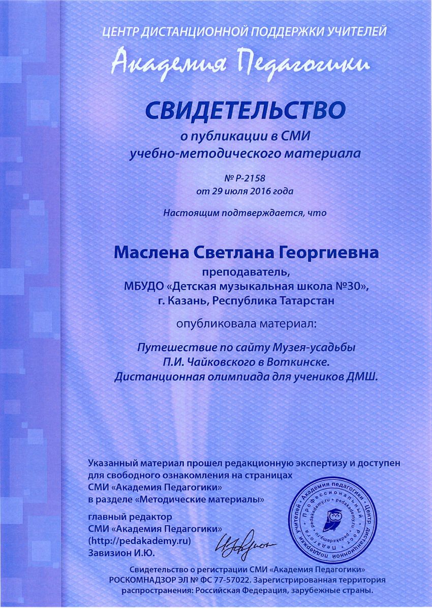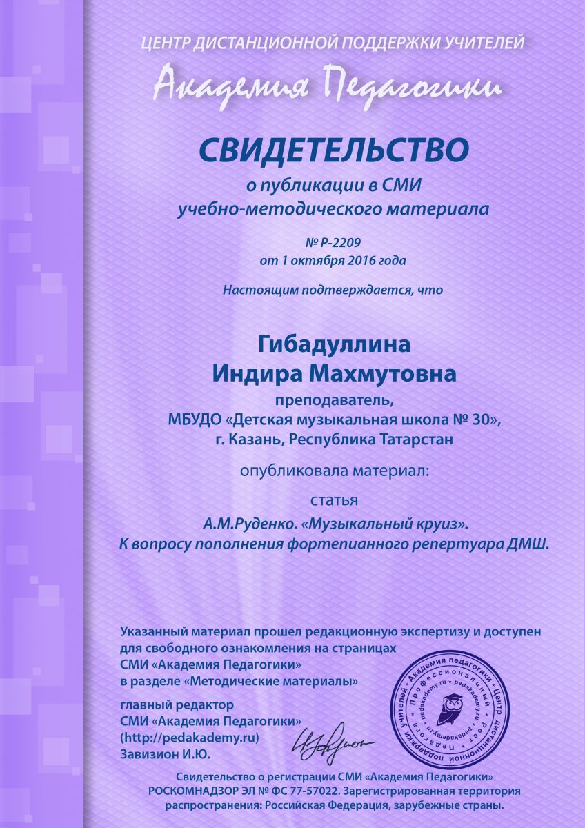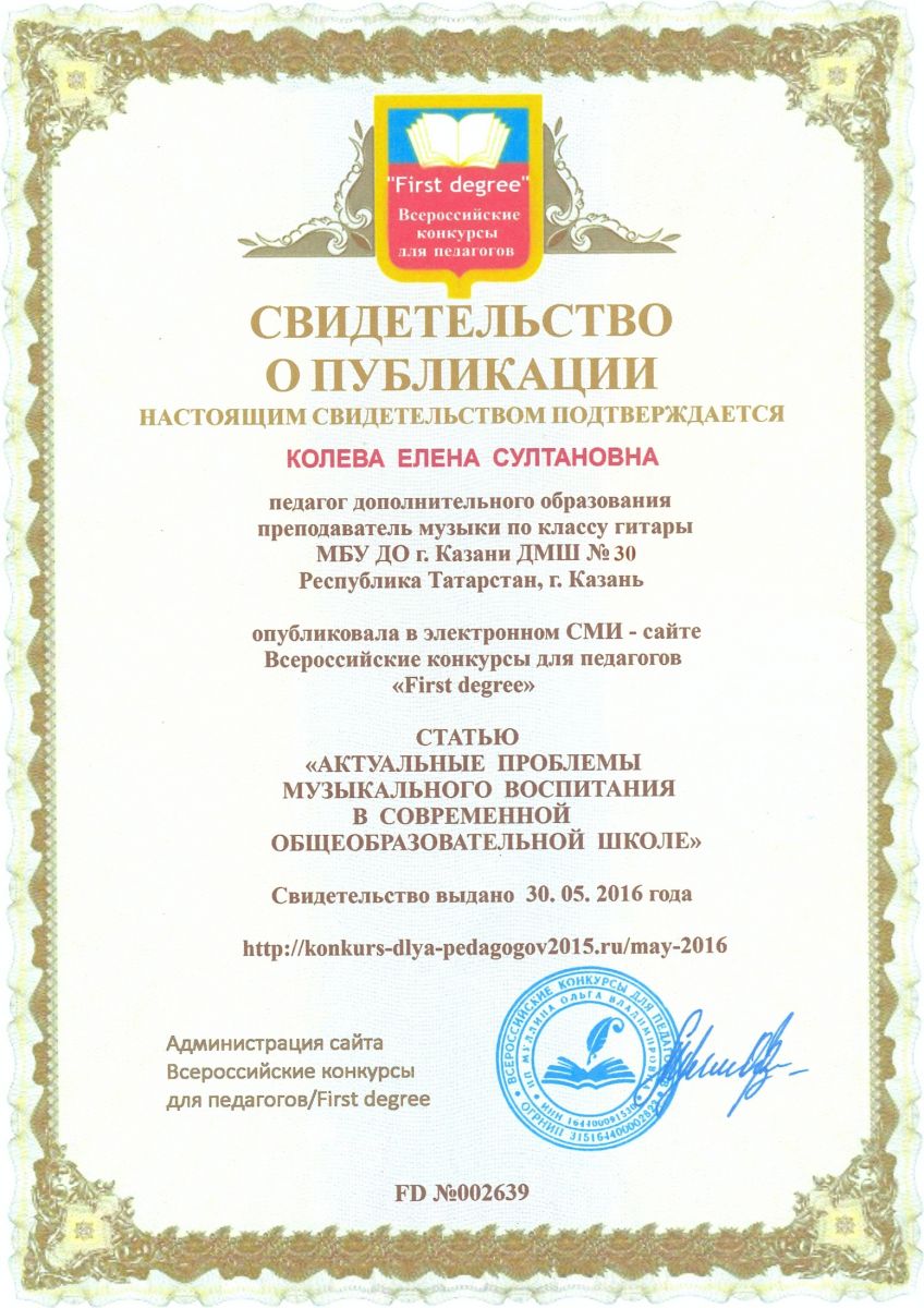 Статья "Практические аспекты реализации предпрофессиональных программ в учебном процессе ДМШ и ДШИ" в электронном научно-методическом журнале Kazanobr.u № 14 июнь 2016, автор Камалова Ю.З. http://smi.kazanobr.ru/14/05.html