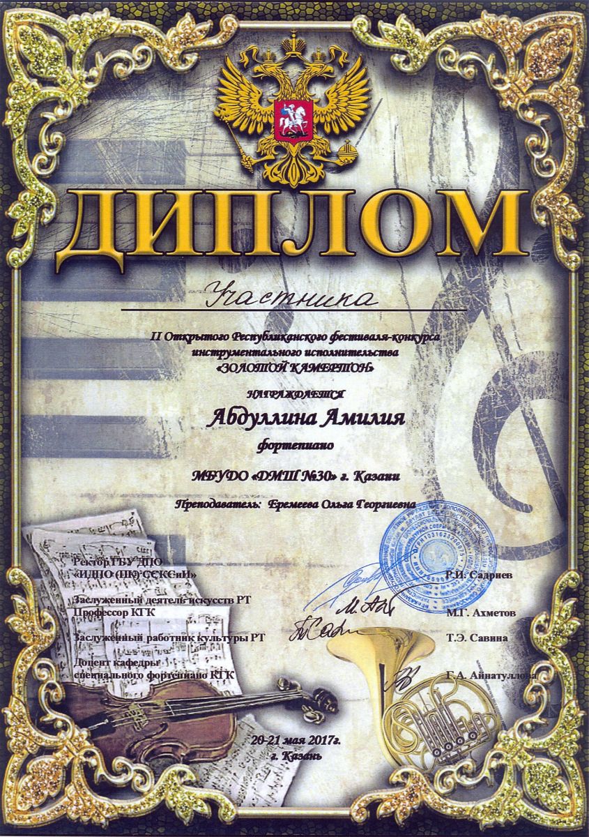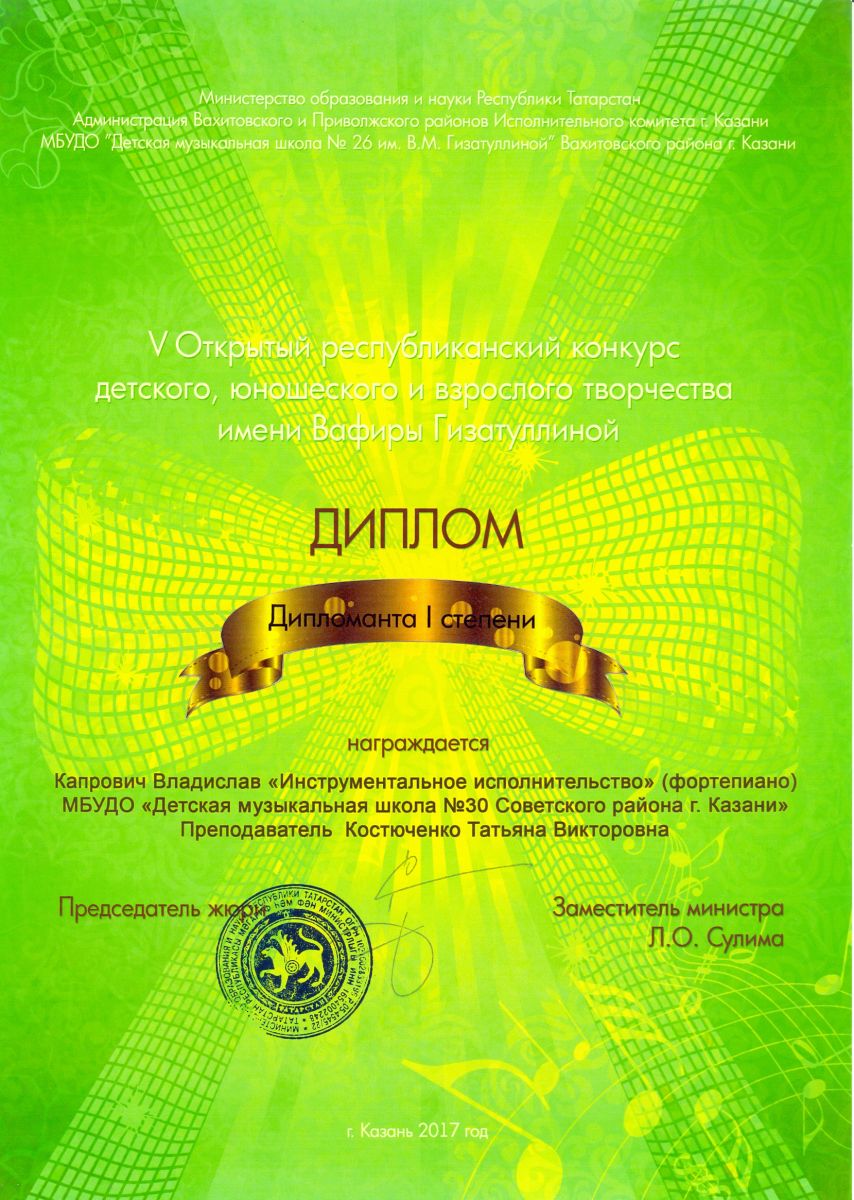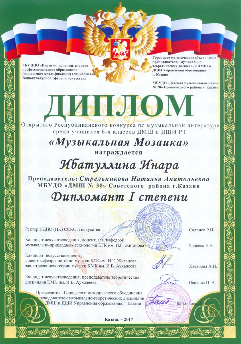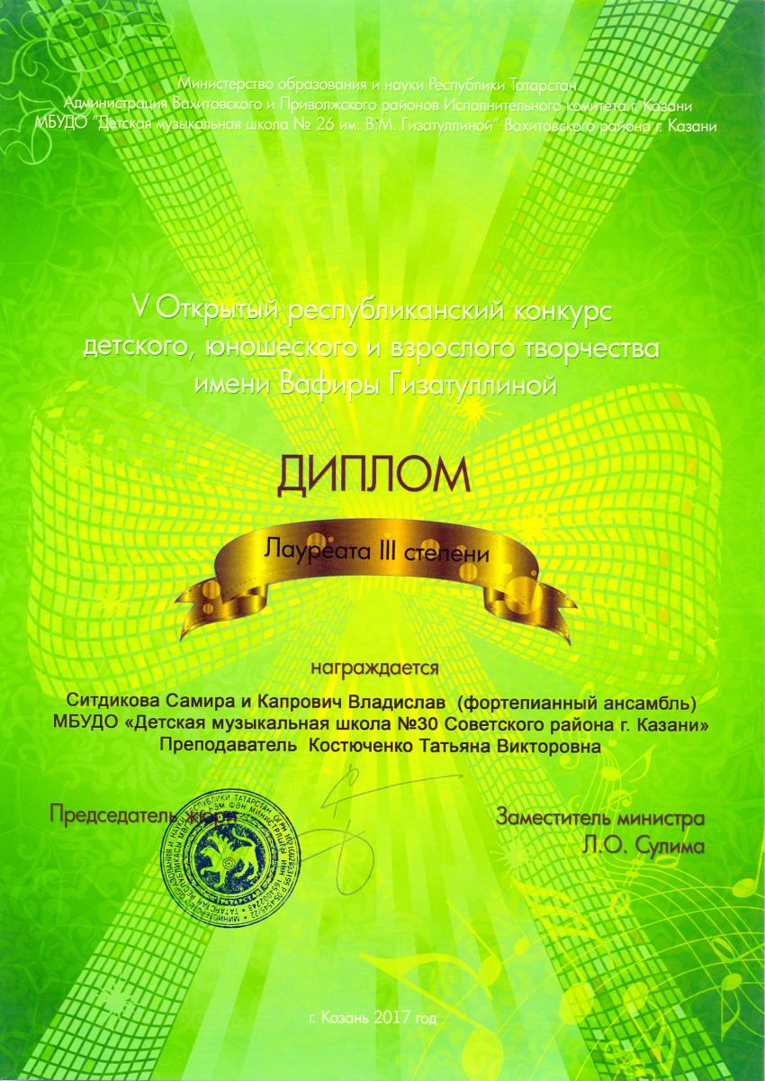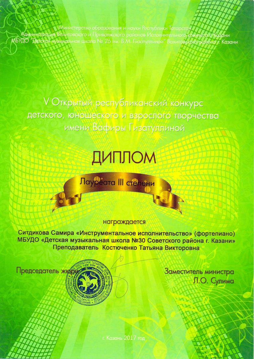 Республиканский конкурс пианистов "Музыкальная мозаика" - Ситдикова Лия - диплом I степени