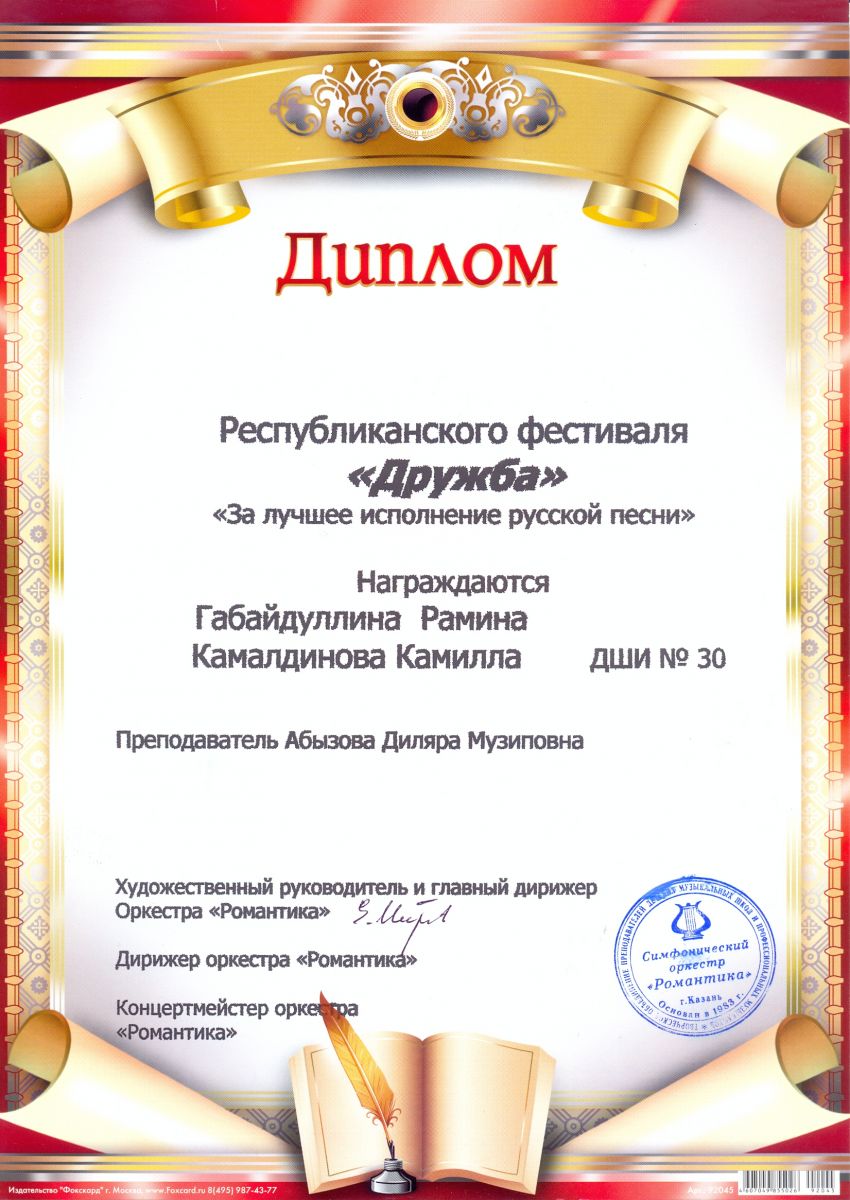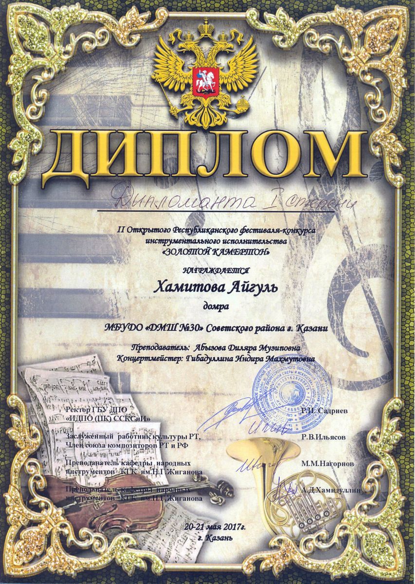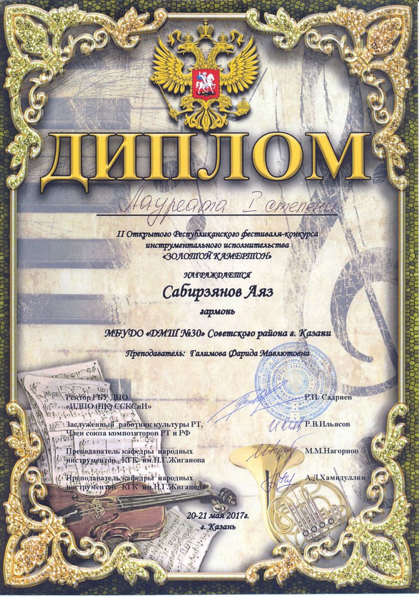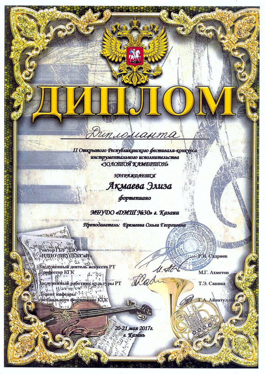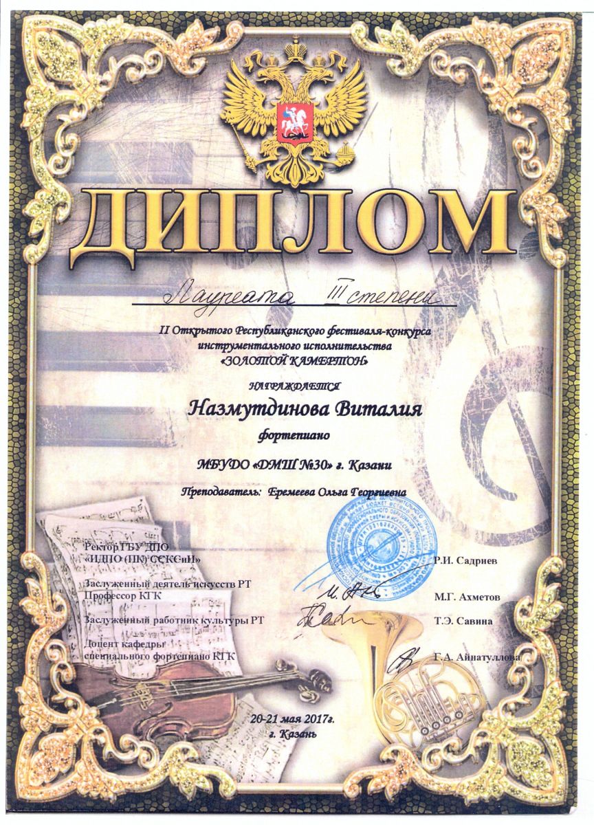 Республиканский конкурс пианистов "Музыкальная мозаика" - Ситдикова Лия - диплом I степени