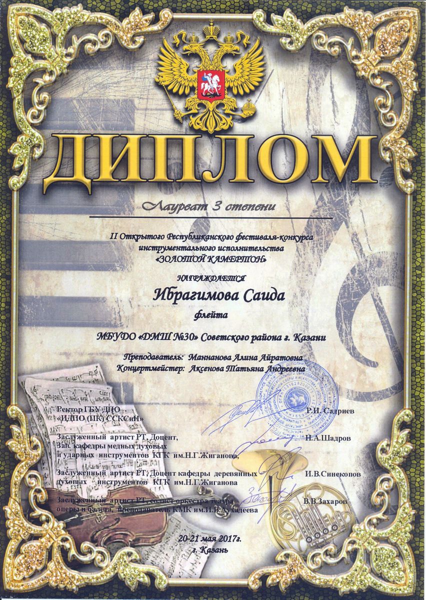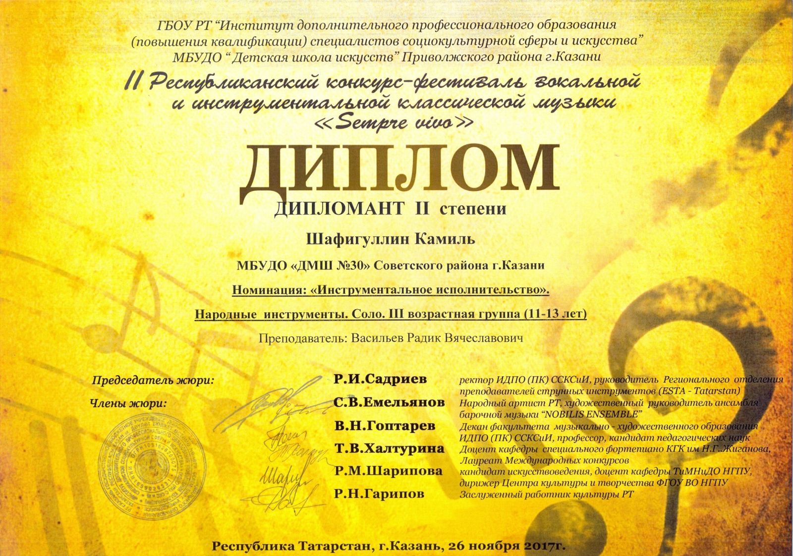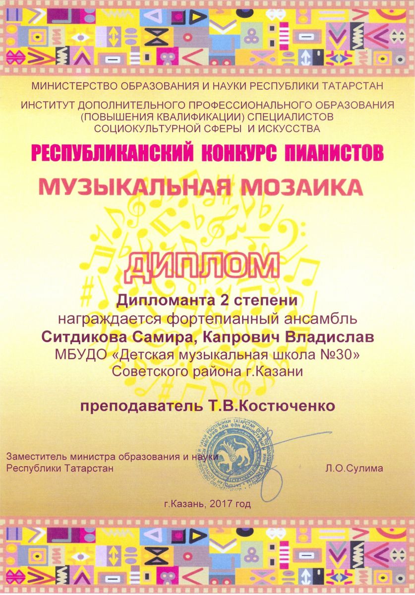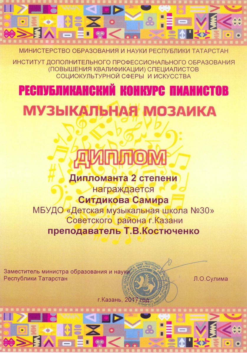 Республиканский конкурс пианистов "Музыкальная мозаика" - Ситдикова Самира - диплом II степени