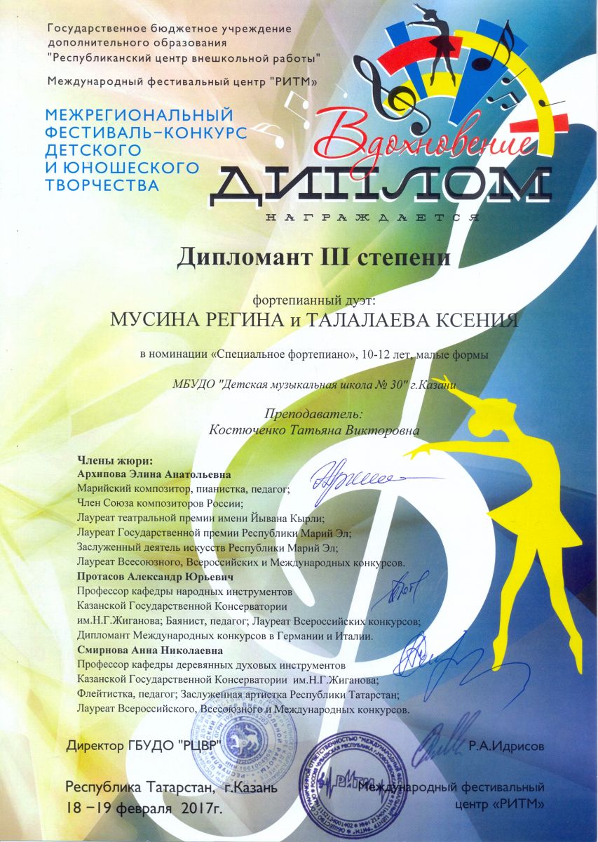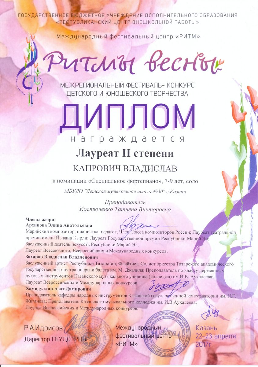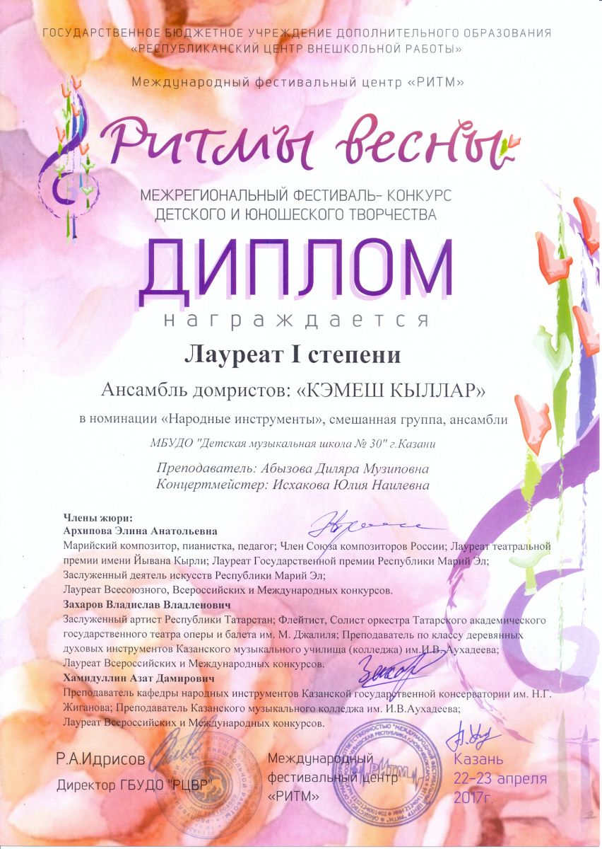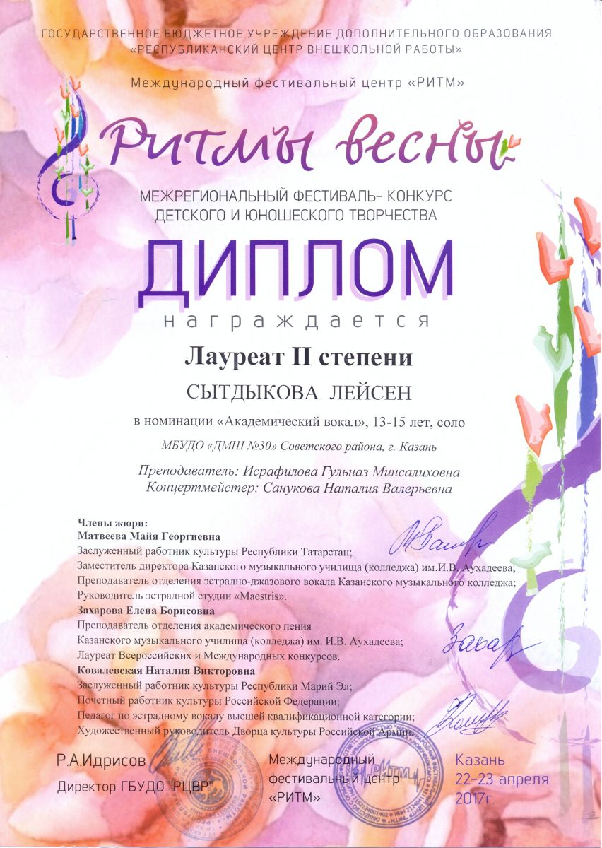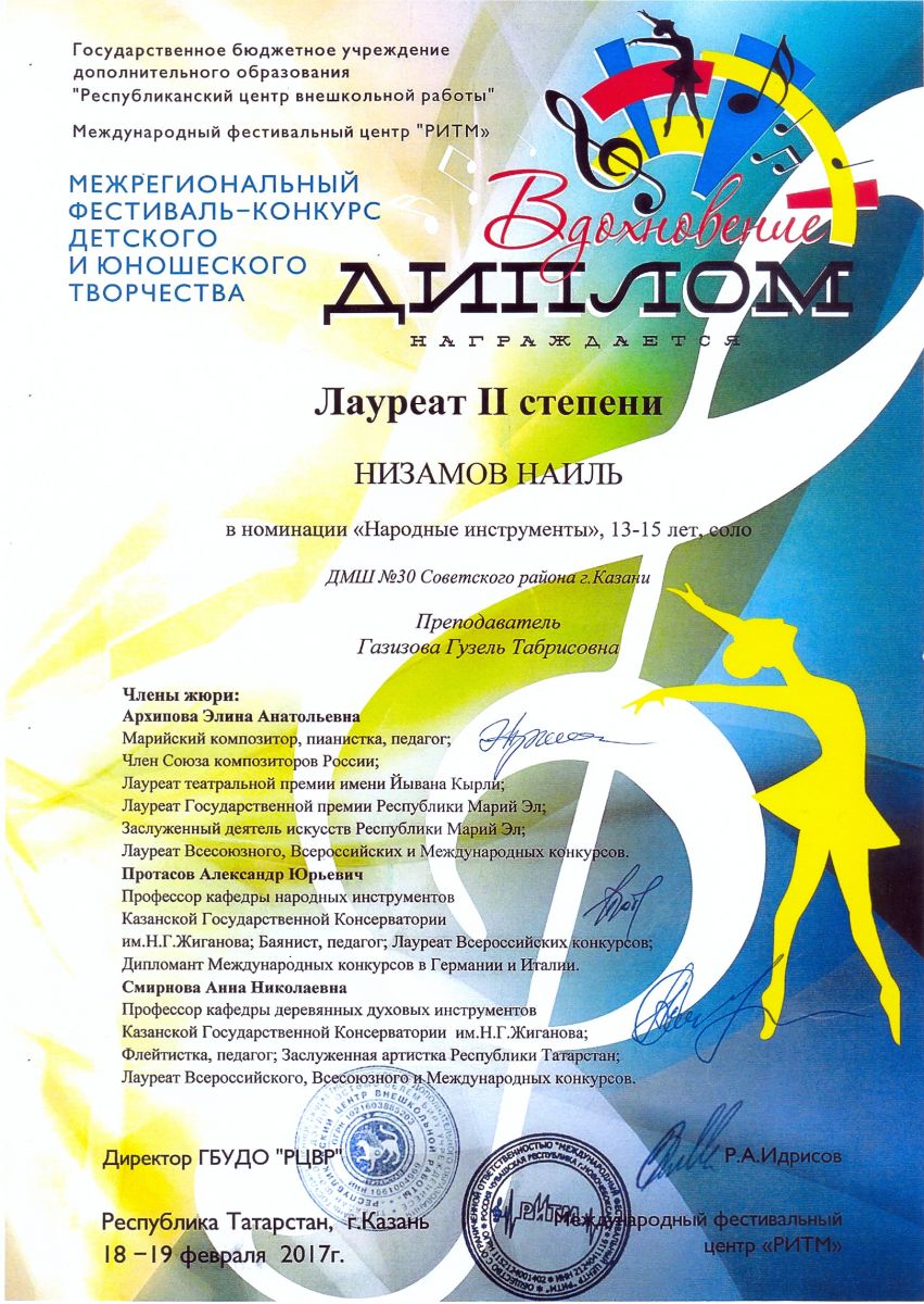 2017 год (Межрегиональные и Республиканские конкурсы и фествиали)