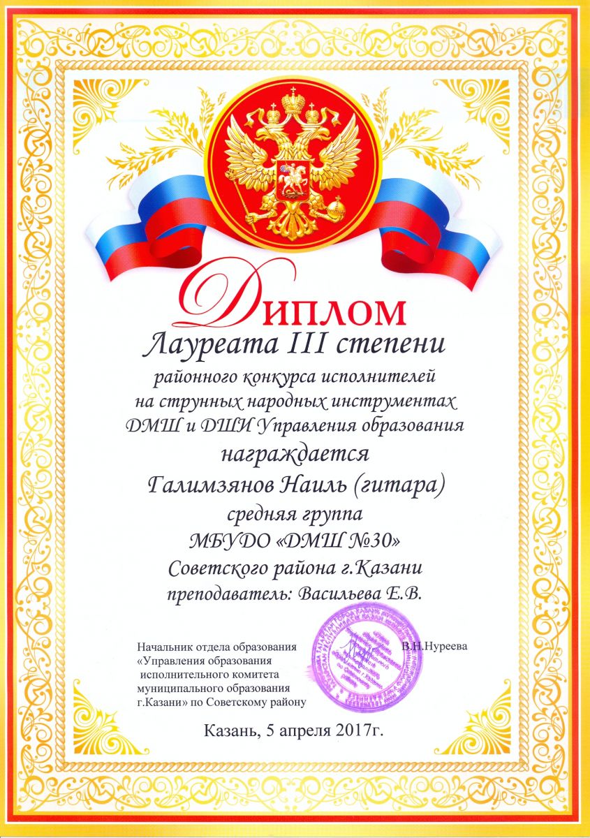 Районный конкурс исполнителей на струнных народных инструментах ДМШ и ДШИ Управления образования - Галимзянов Наиль - III место