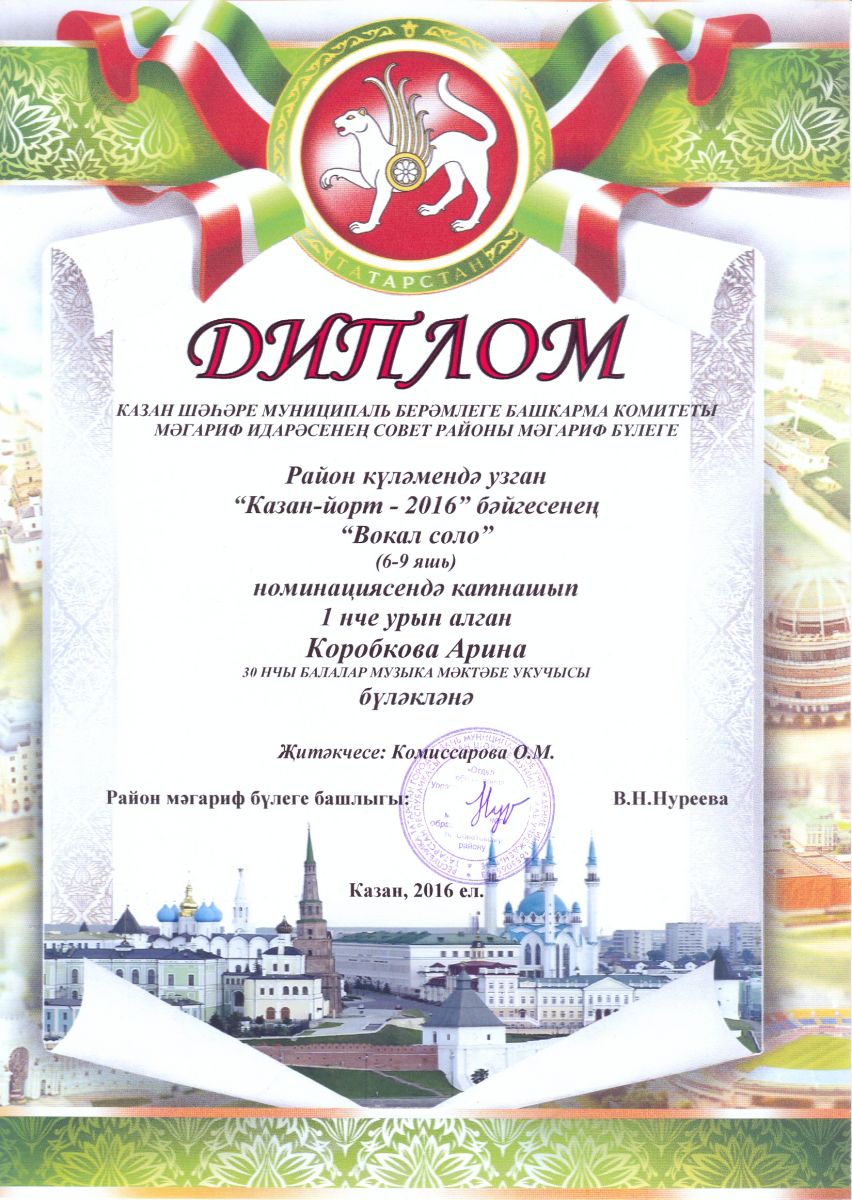Районный конкурс "Казан - йорт" - Коробкова Арина - I место