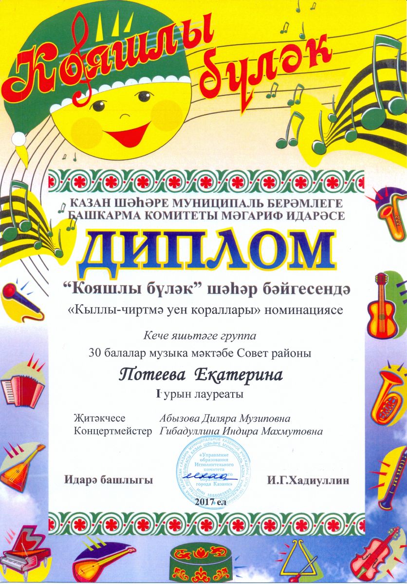 VI Городской конкурс татарской музыки "Кояшлы бүләк" - Потеева Екатерина - I место