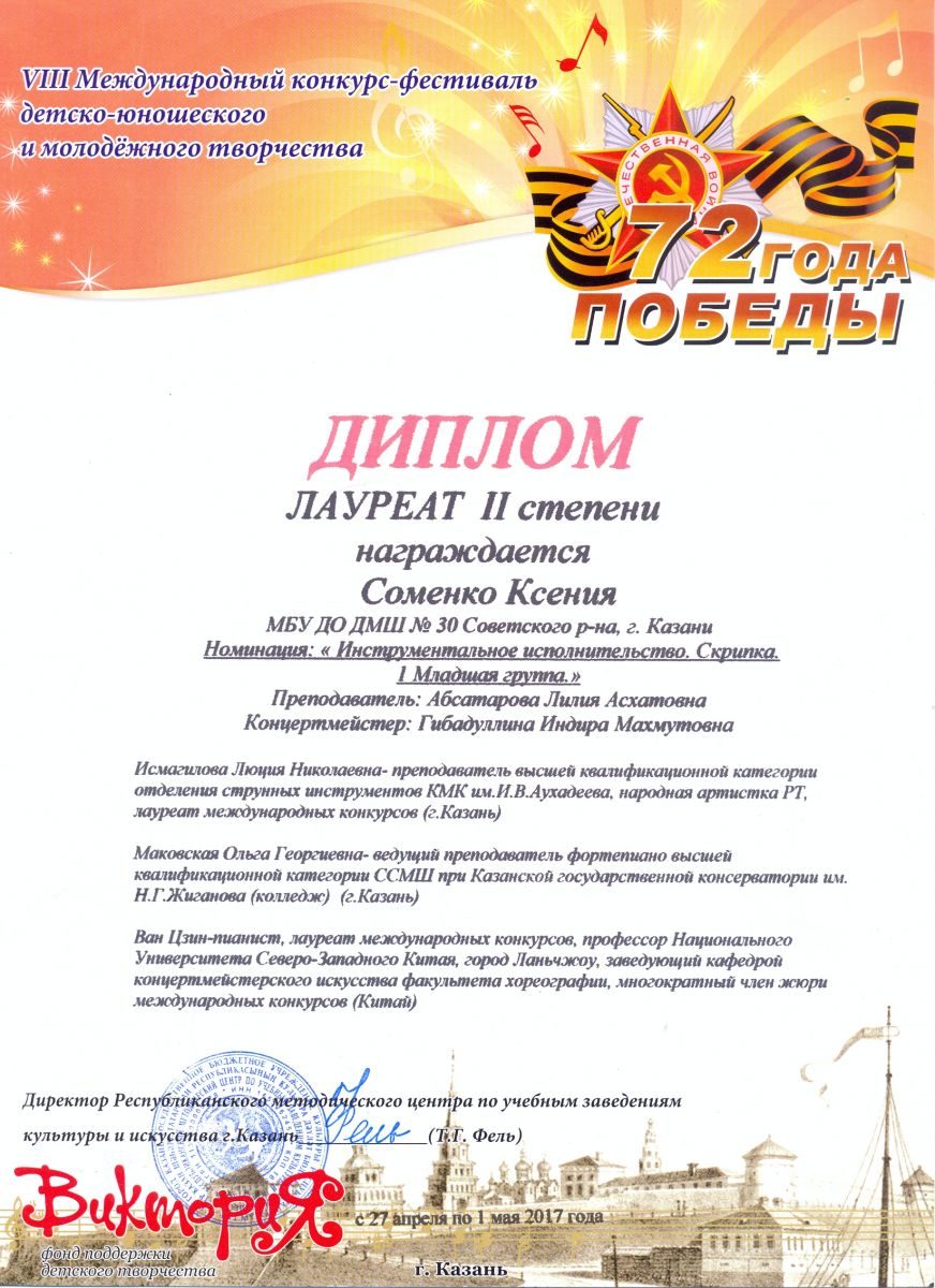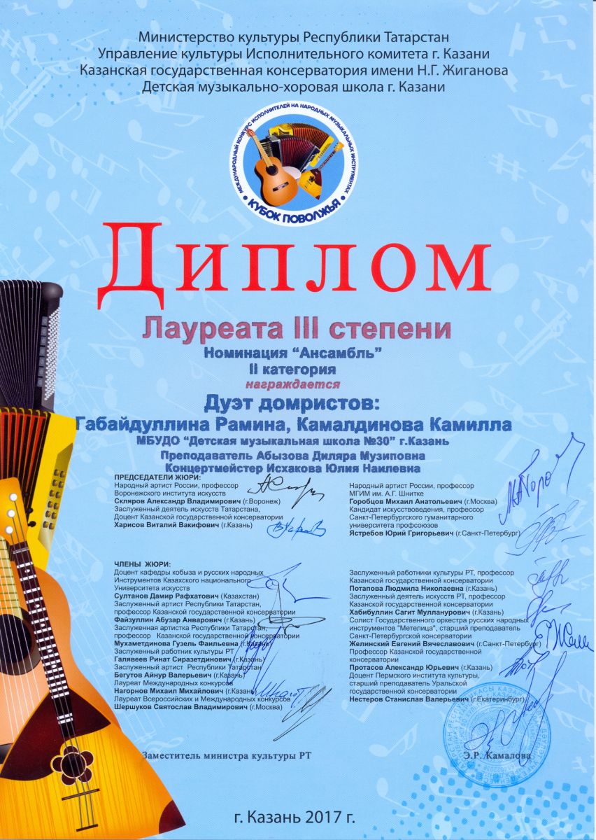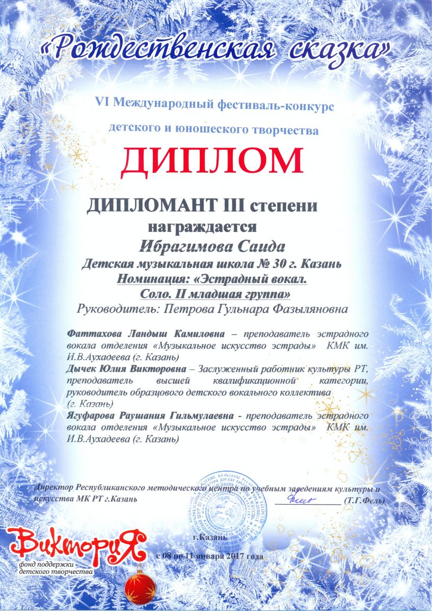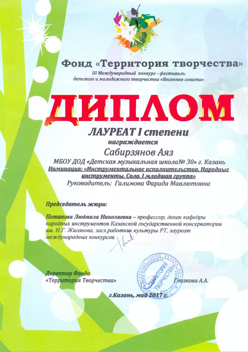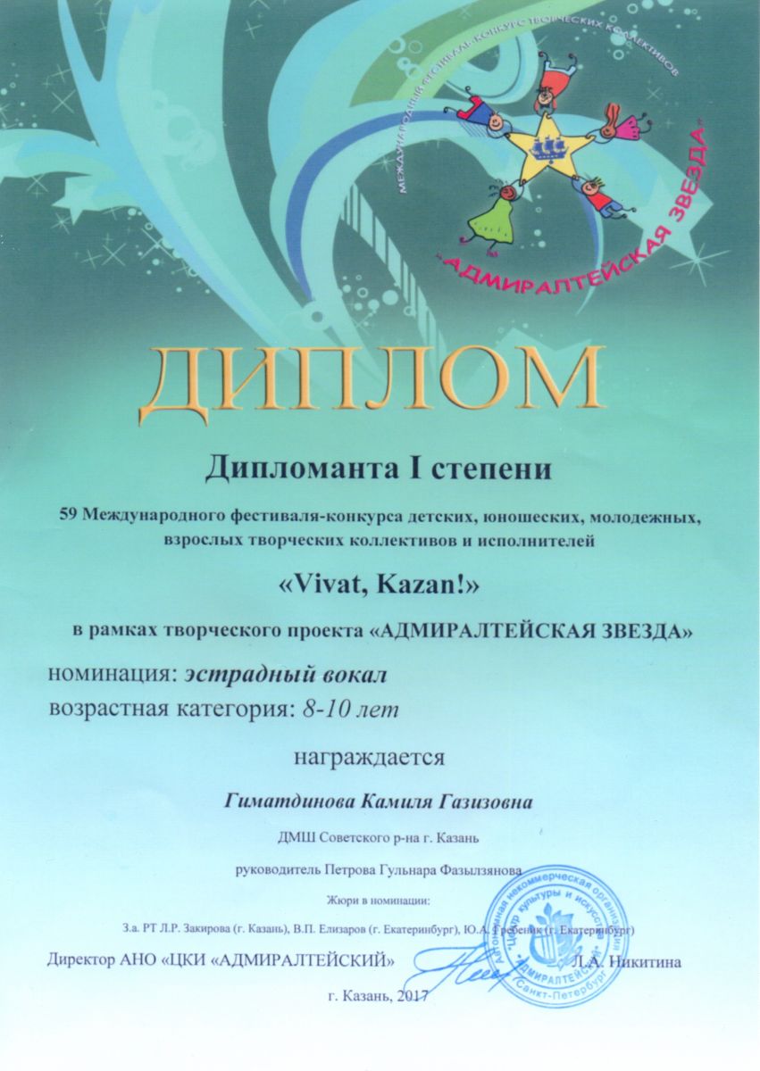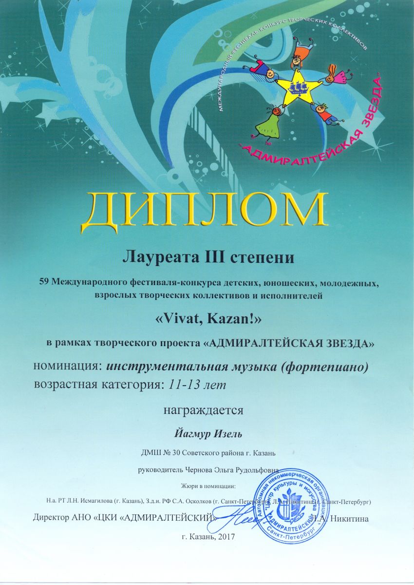 Международный фестиваль-конкурс "Детство цвета апельсина" - Гиниятуллина Эндже - III место