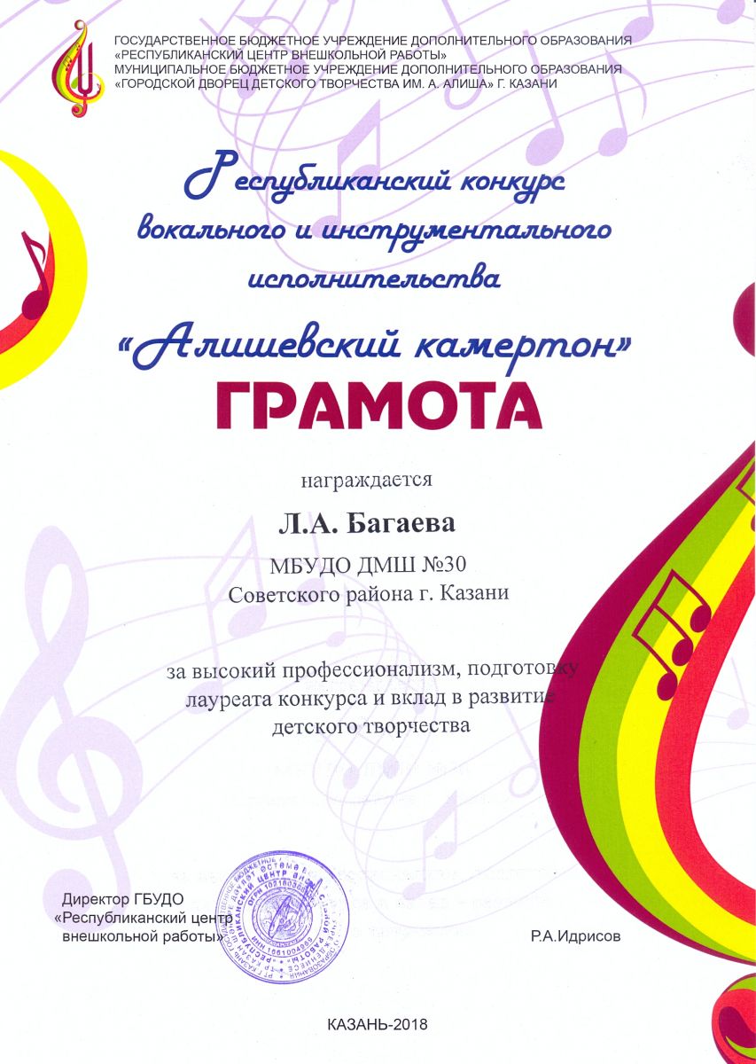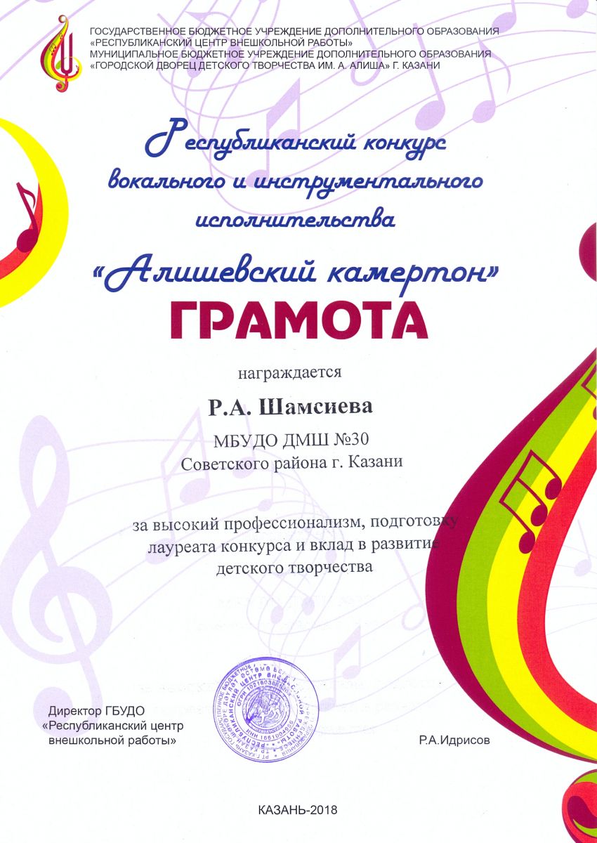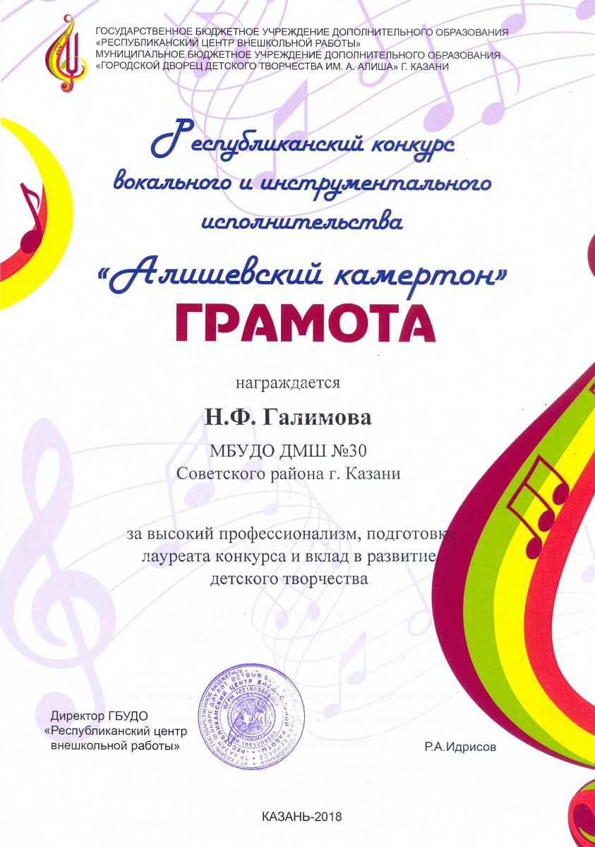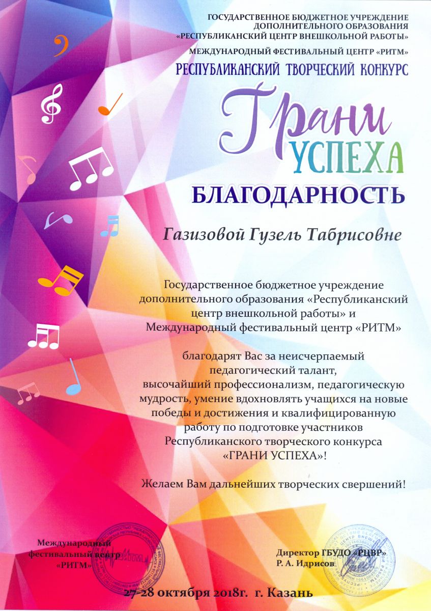 Республиканский твоческий конкурс "Грани успеха" - Газизова Г.Т. - благодарность за профессионализм