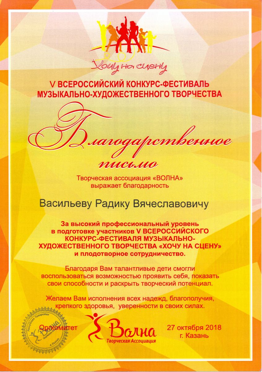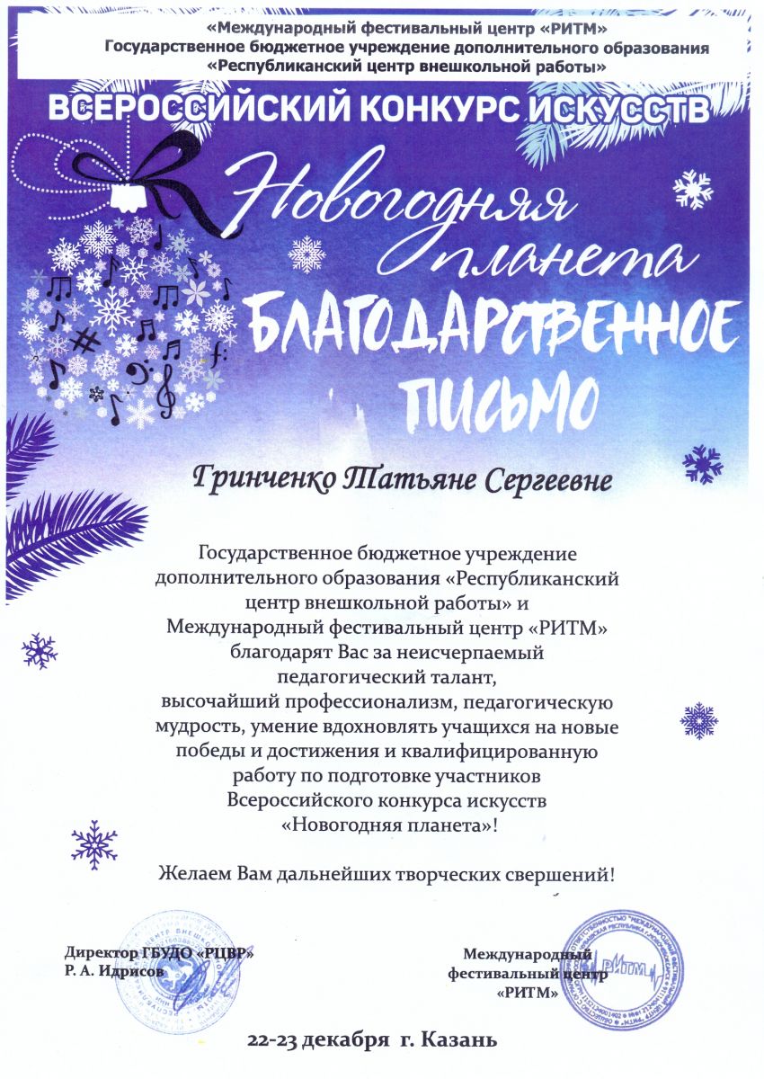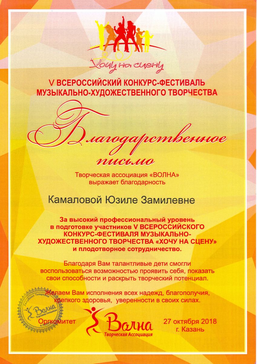 Международный конкурс-фестиваль "На крыльях таланта" - Камалова Ю.З. - благодарность