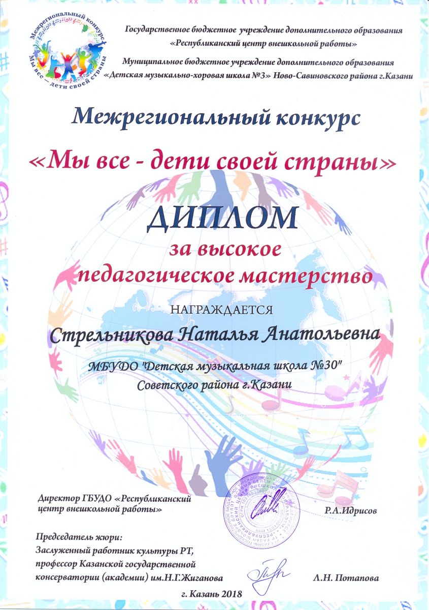 Всероссийский творческий конкурс "Новая школа" - Стрельникова Н.А. - I место