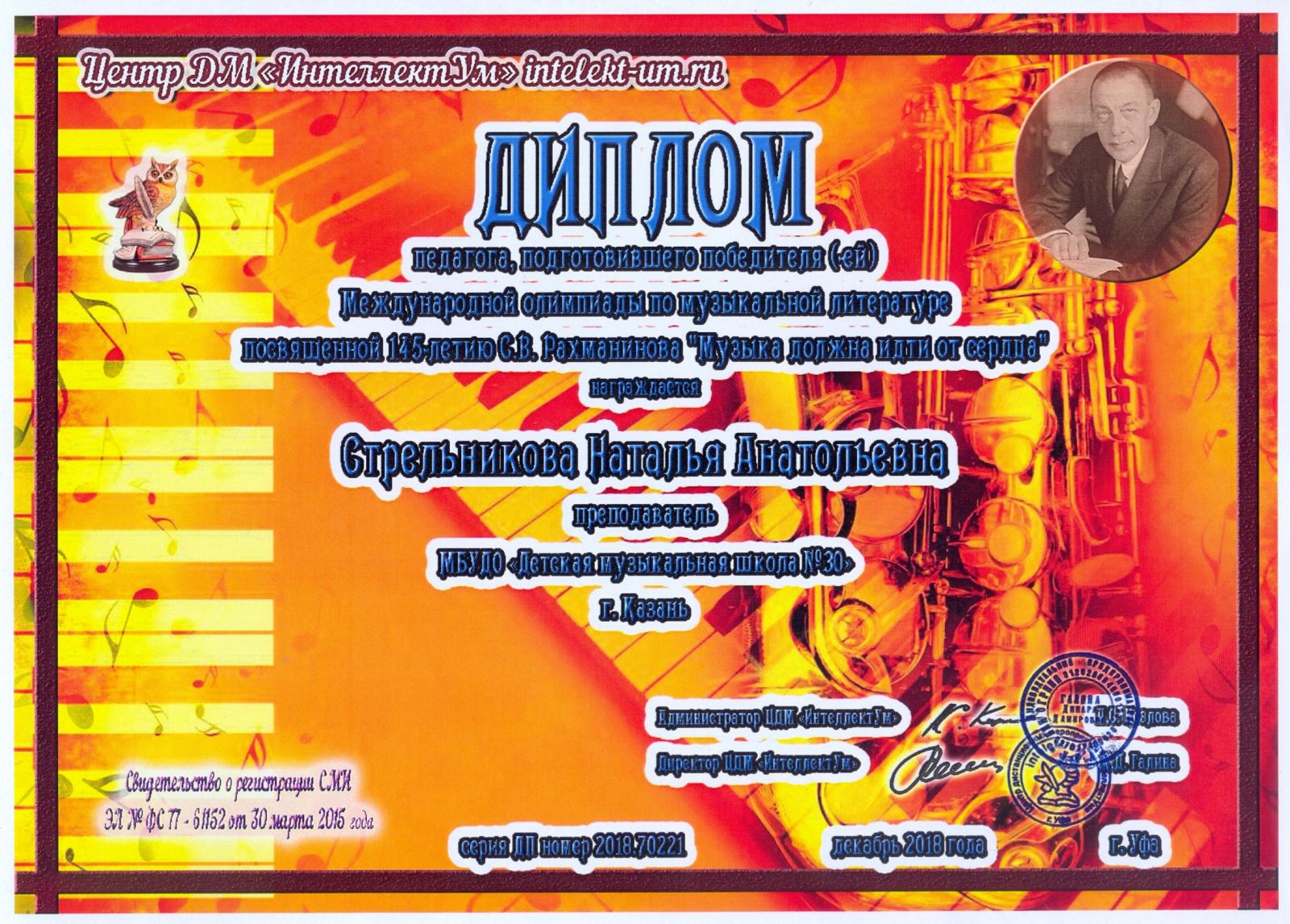 I Всероссийский профессиональный конкурс "Фундамент успеха" - Стрельникова Н.А. - диплом