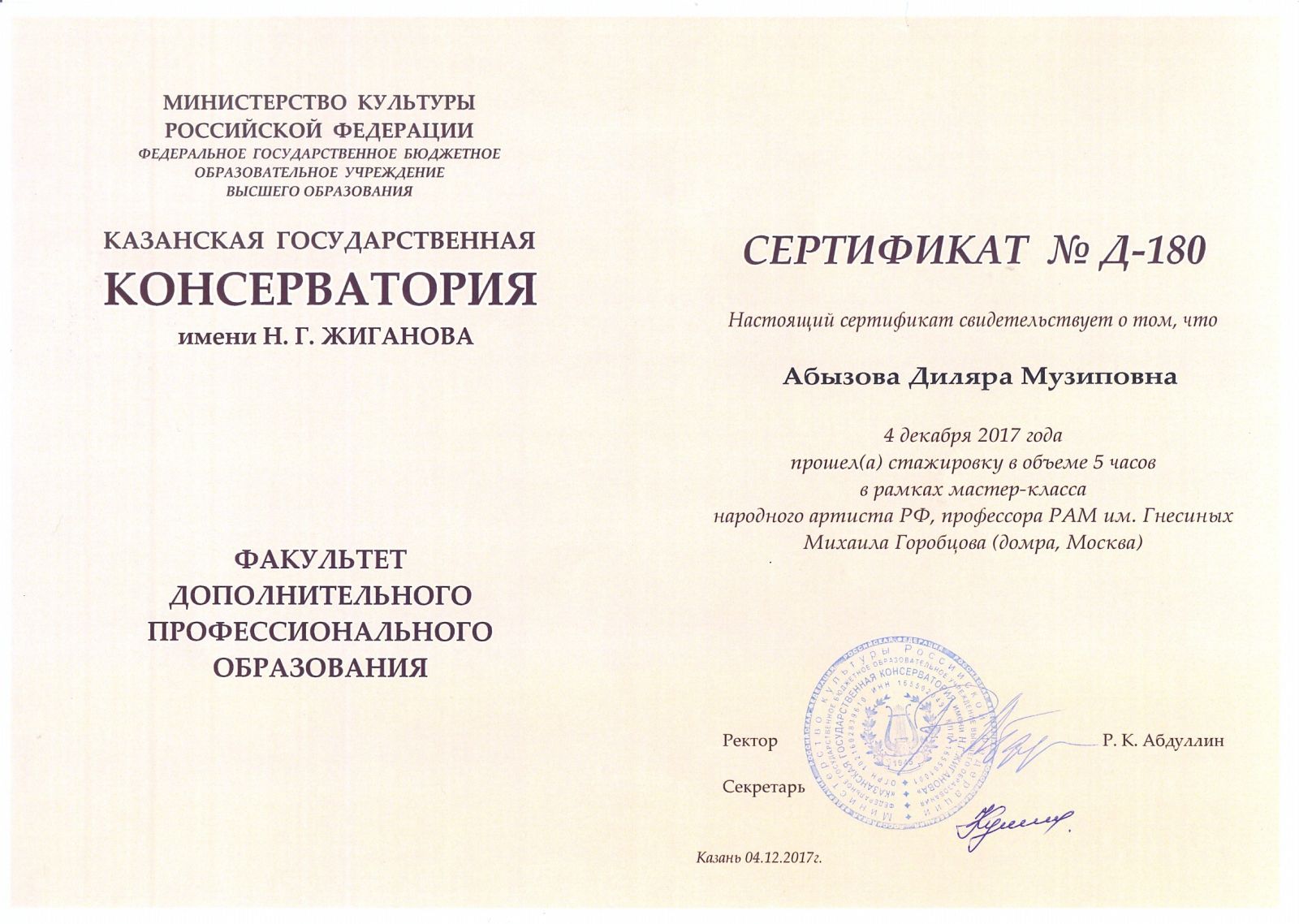 Мастер-класс народного артиста РФ, профессора РАМ им.Гнесиных М.Горобцова - Абызова Д.М. - стажировка