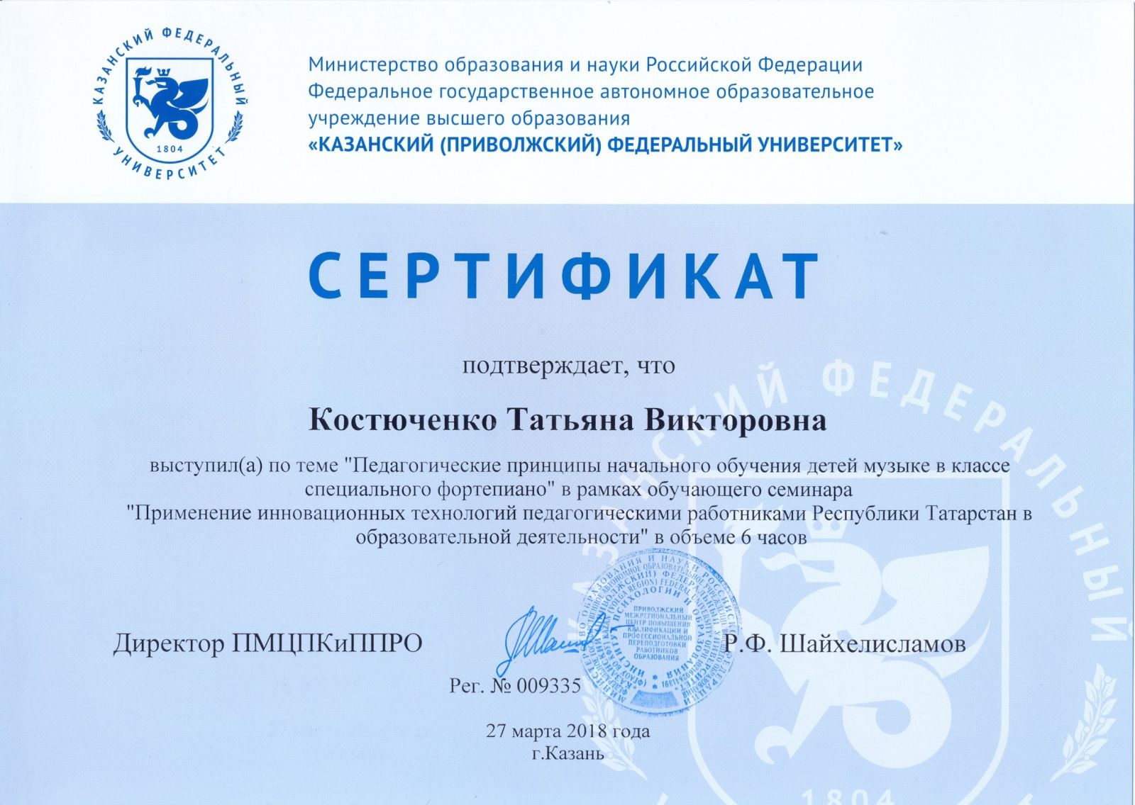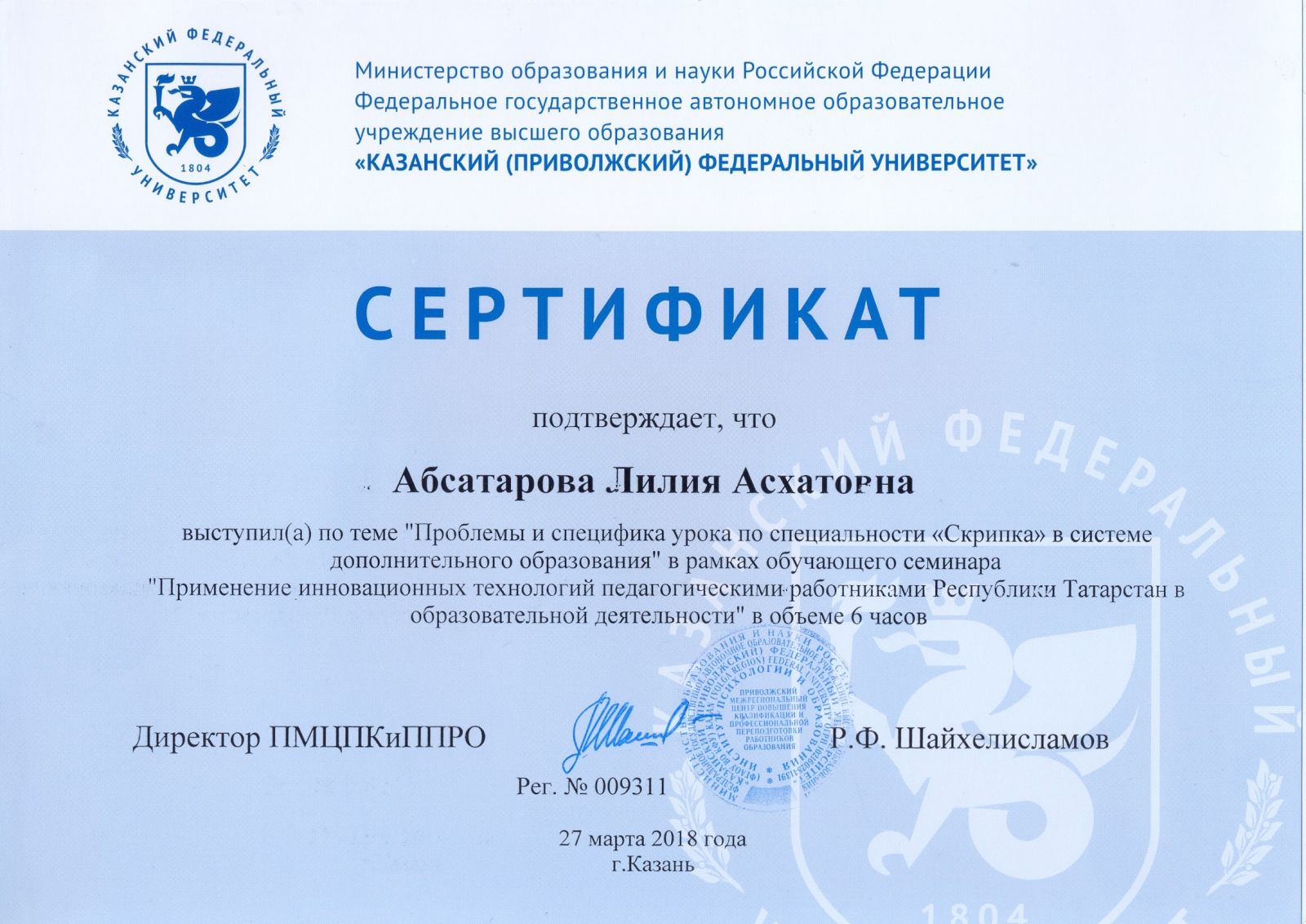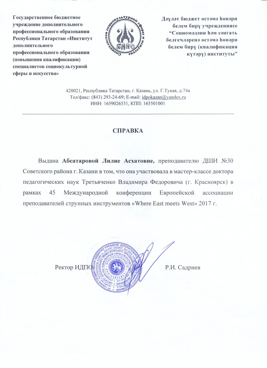 Мастер-класс скрипача Миша Кибардина (Германия) в рамках курсов повышения квалификации ИДПО МК РТ - Гринченко Т.С. - участник