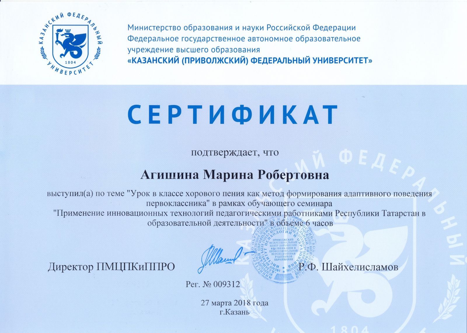 Республиканский обучающий семинар "Применение инновационных технологий в образовательной деятельности" - выступление Агишиной М.Р. по теме "Урок в классе хорового пения как метод формирования адаптивного поведения первоклассника"
