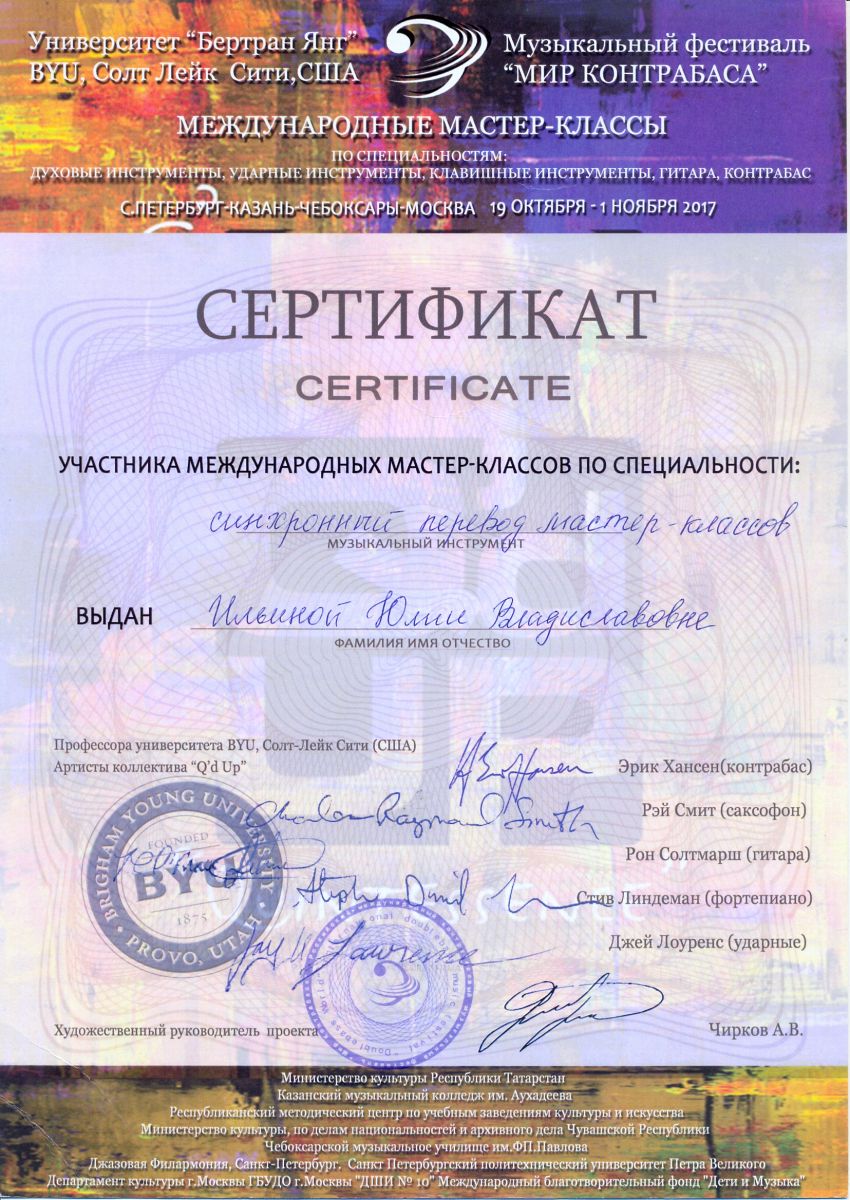 Международный мастер-класс по специальности "синхронный перевод мастер-классов" - Ильина Ю.В. - участник