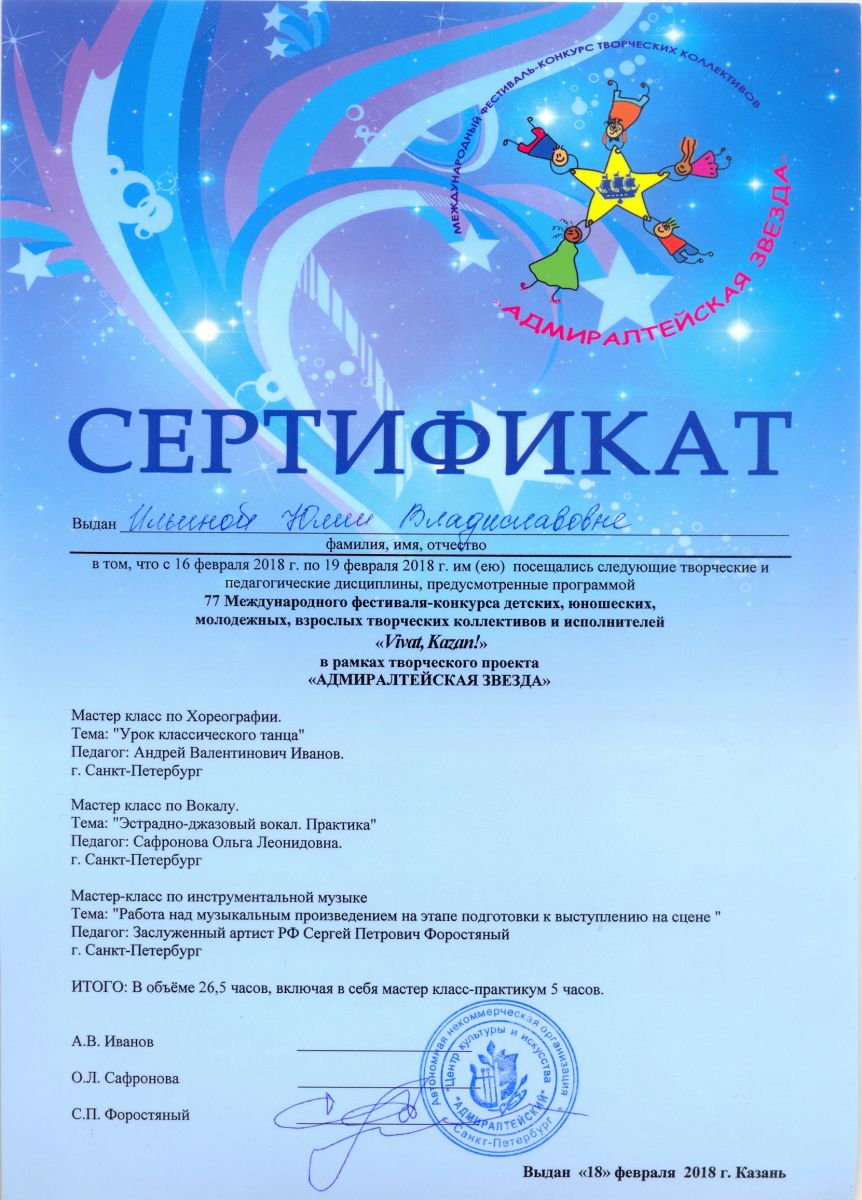 В рамках 77 Международного фестиваля-конкурса "Vivat. Kazan!" семинарские занятия и мастер-классы - Ильина Ю.В.