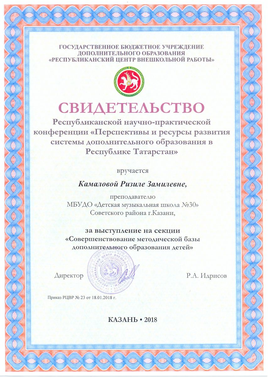 Республиканская научно-практическая конференция "Перспективы и ресурсы развития системы дополнительного образования РТ" - Камалова Р.З. - выступление на секции "Совершенствование методической базы дополнительного образовыания детей"