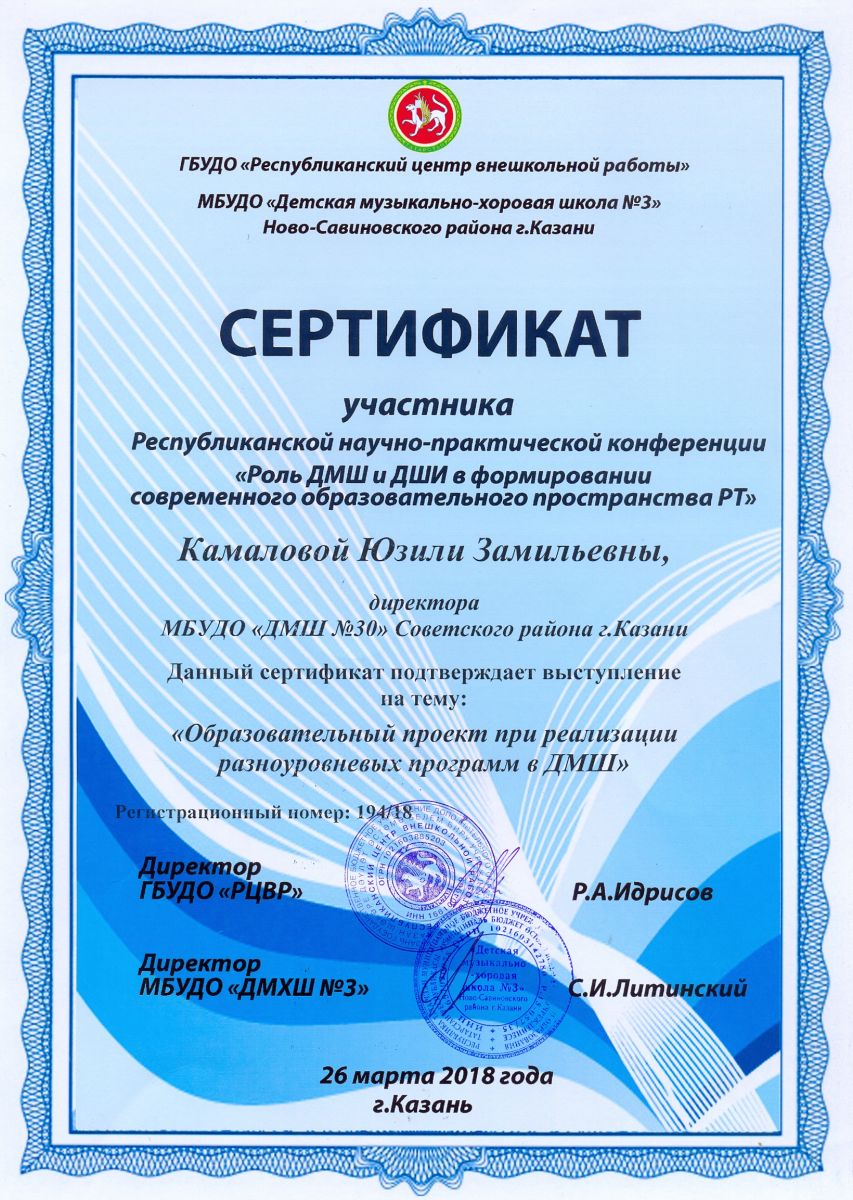 Республиканская научно-практическая конференция "Роль ДМШ и ДШИ в формировании современного образовательного пространства РТ" - выступление Камаловой Ю.З. по теме "Образовательный проект при реализации разноуровневых программ в ДМШ"