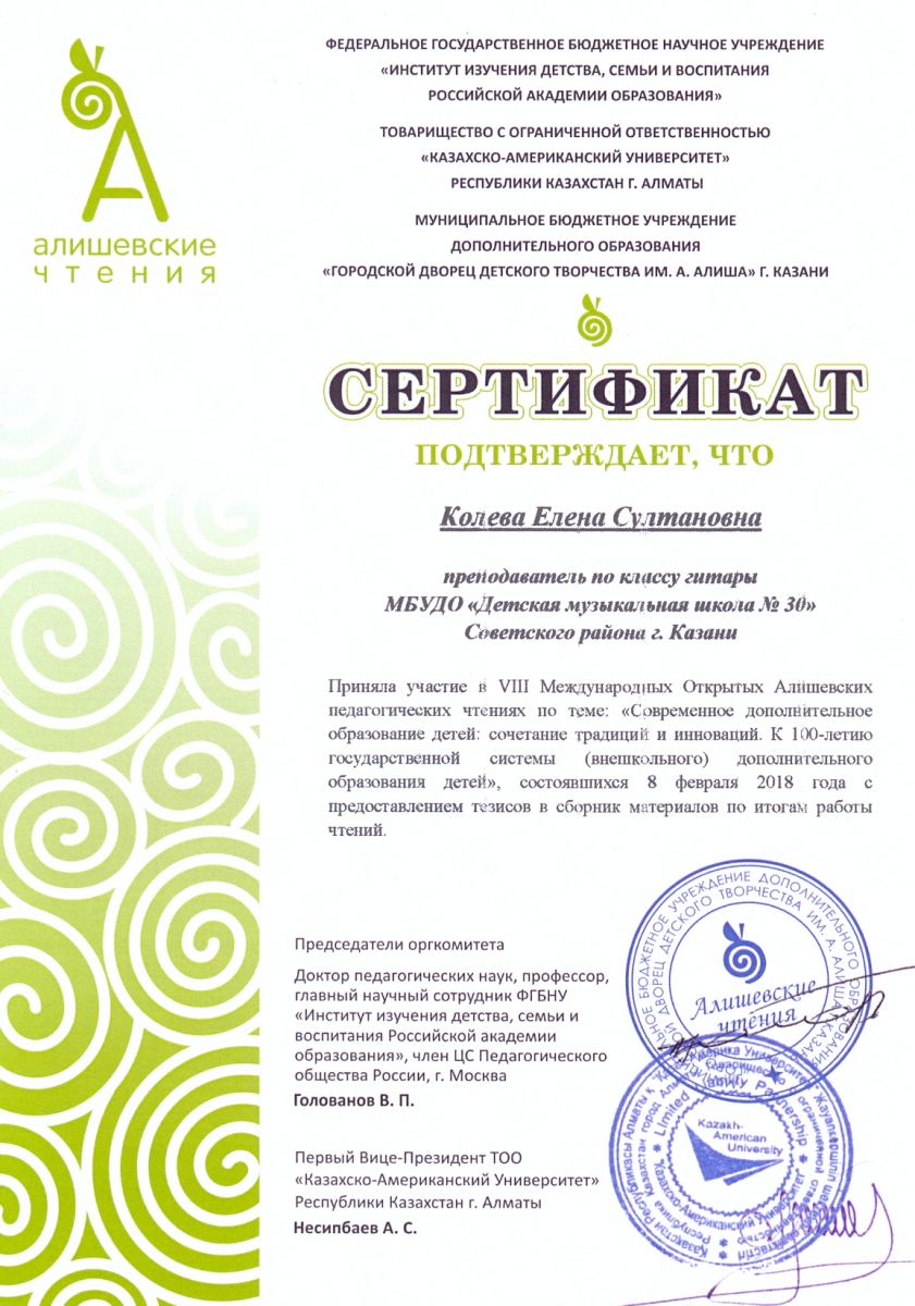 VIII Международные Открытые Алишевские педагогические чтения "Современное дополнительное образование детей: сочетание традиций и инноваций" - Колева Е.С. (с публикацией тезисов выступления)