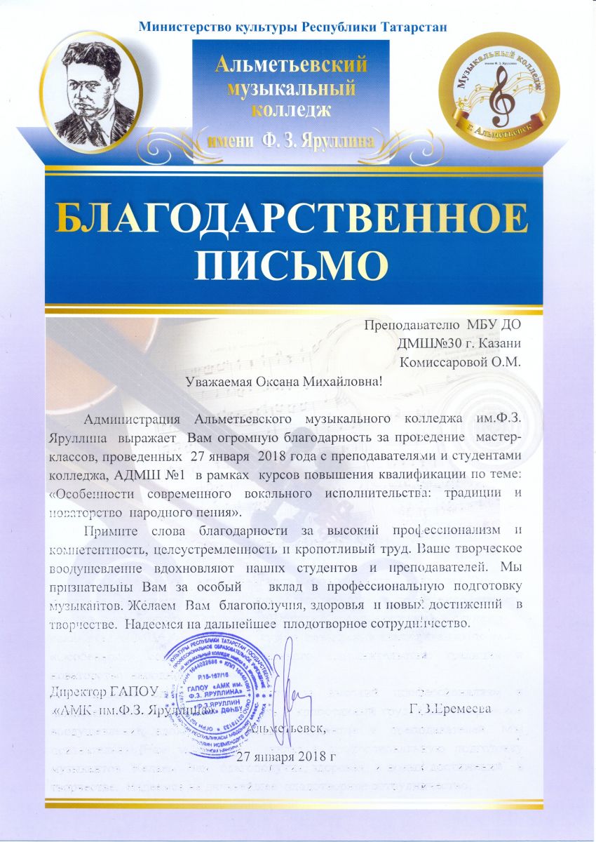 Республиканские курсы повышения квалификации "Особенности современного вокального исполнительства: традиции инноваторства" - Комиссарова О.М. мастер-классы для преподавателей и студентов Альметьевского музыкального колледжа им.Ф.Яруллина