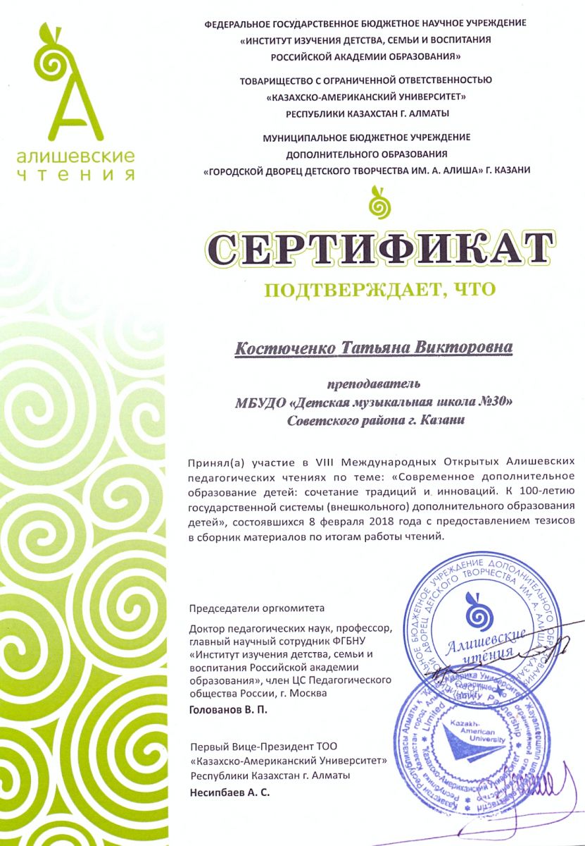 VIII Международные Открытые Алишевские педагогические чтения "Современное дополнительное образование детей: сочетание традиций и инноваций" - Костюченко Т.В. (с публикацией тезисов выступления)