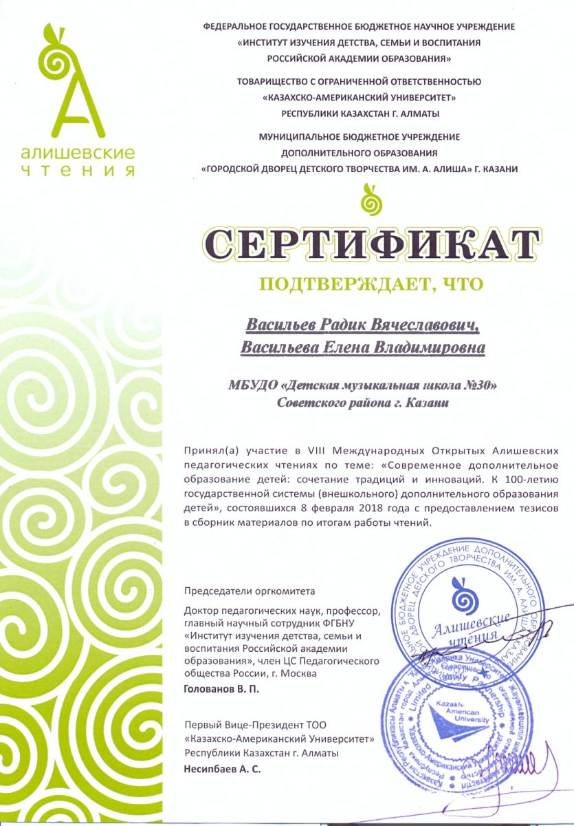 VIII Международные Открытые Алишевские педагогические чтения "Современное дополнительное образование детей: сочетание традиций и инноваций" - Васильев Р.В. (с публикацией тезисов выступления)