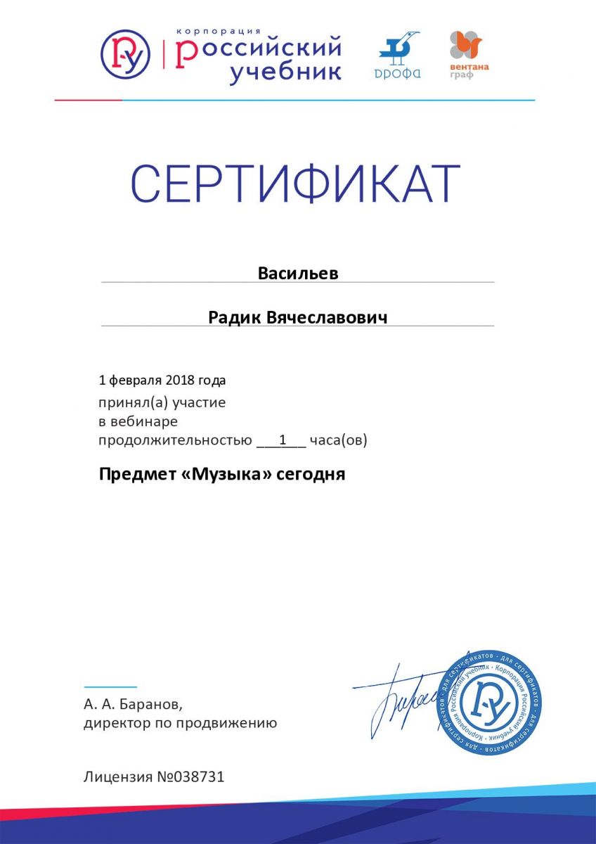 Всероссийский вебинар "Музыка сегодня" - Васильев Р.В. - участник