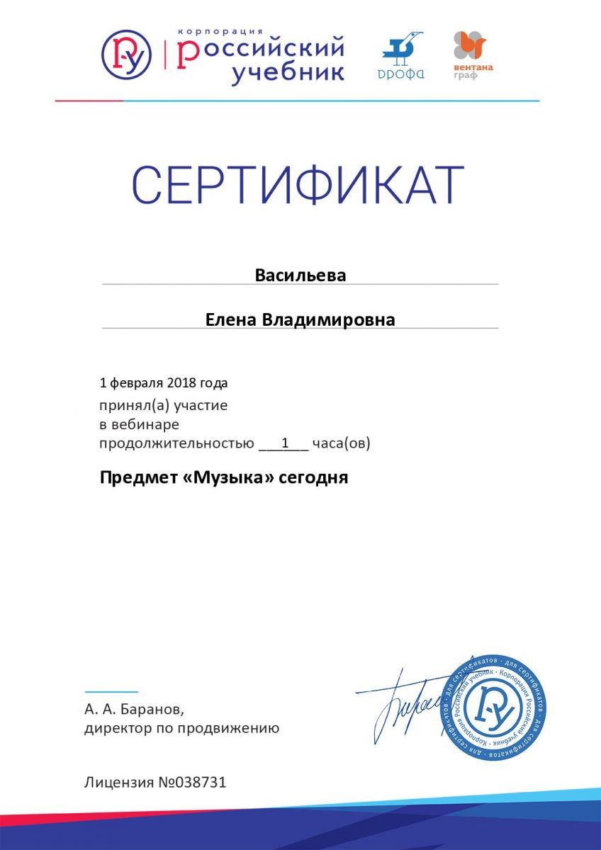 Всероссийский вебинар "Музыка сегодня" - Васильева Е.В. - участник