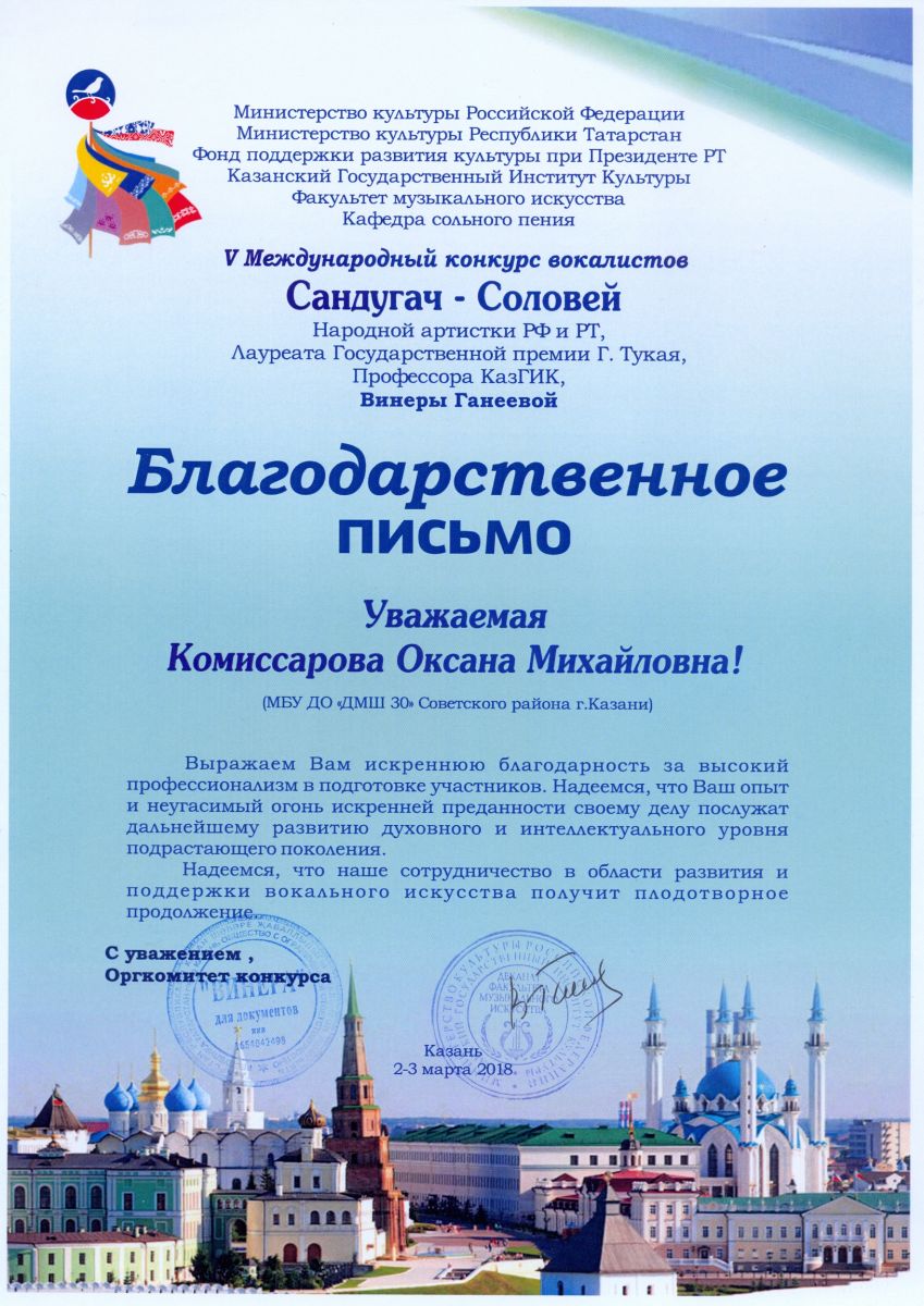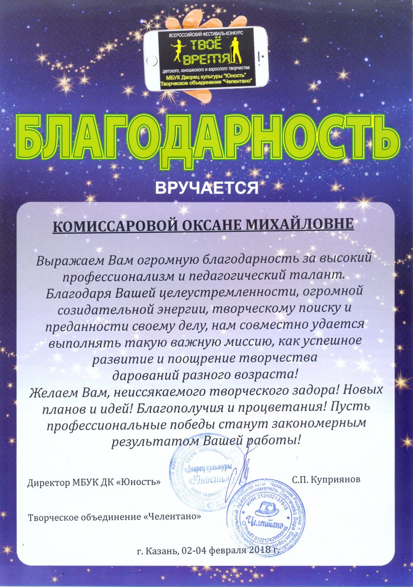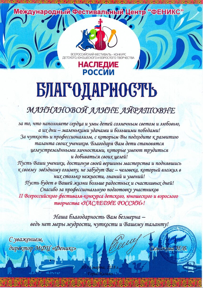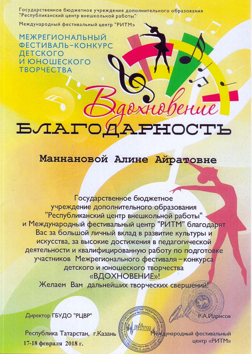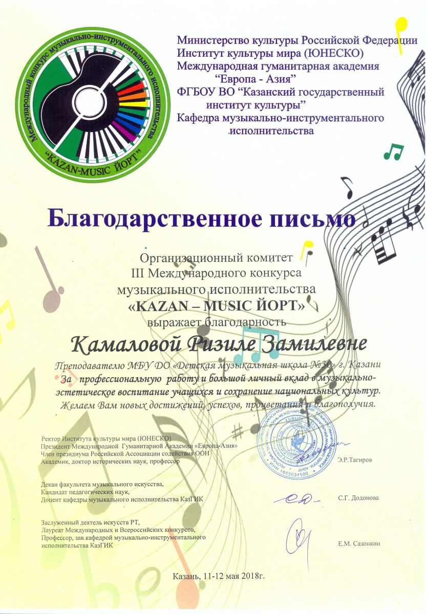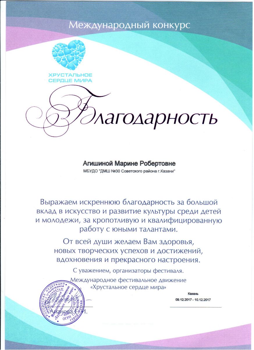 Международный конкурс-фестиваль "На крыльях таланта" - Камалова Ю.З. - благодарность