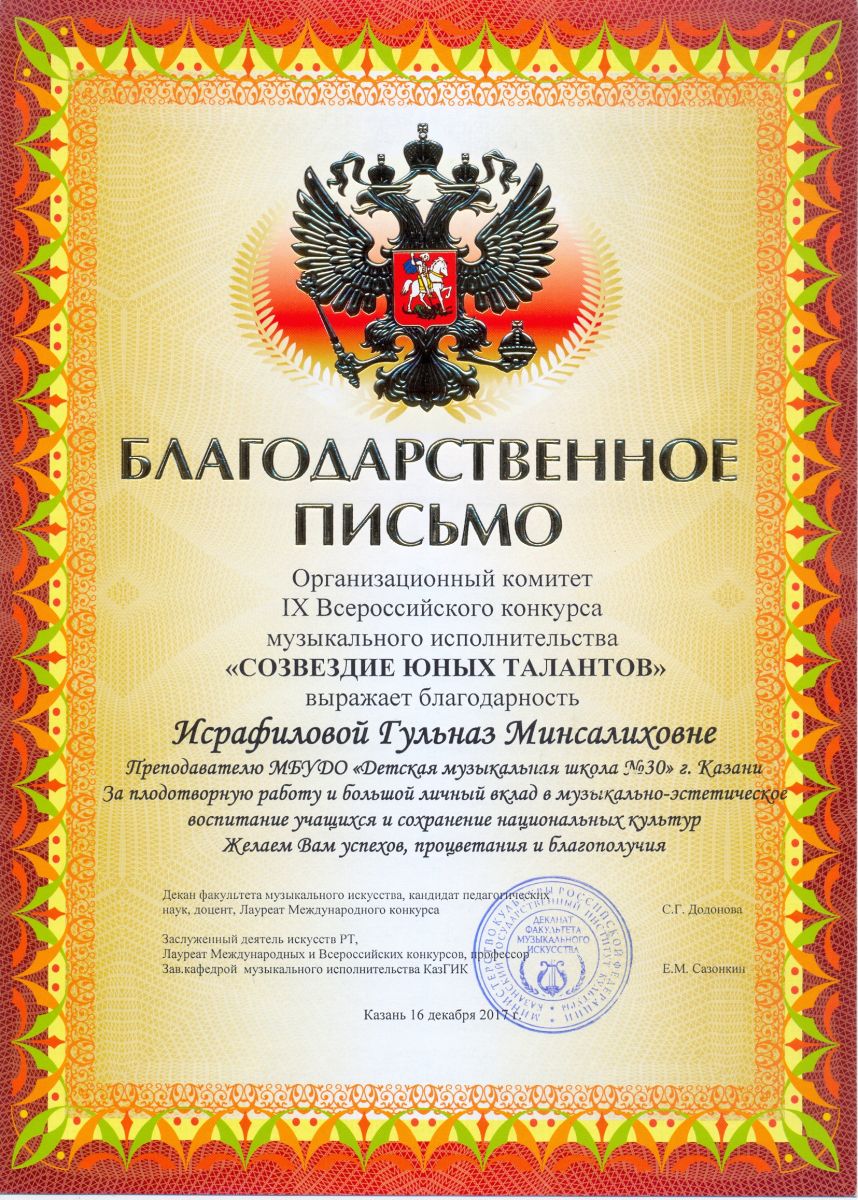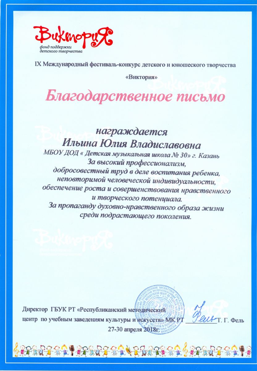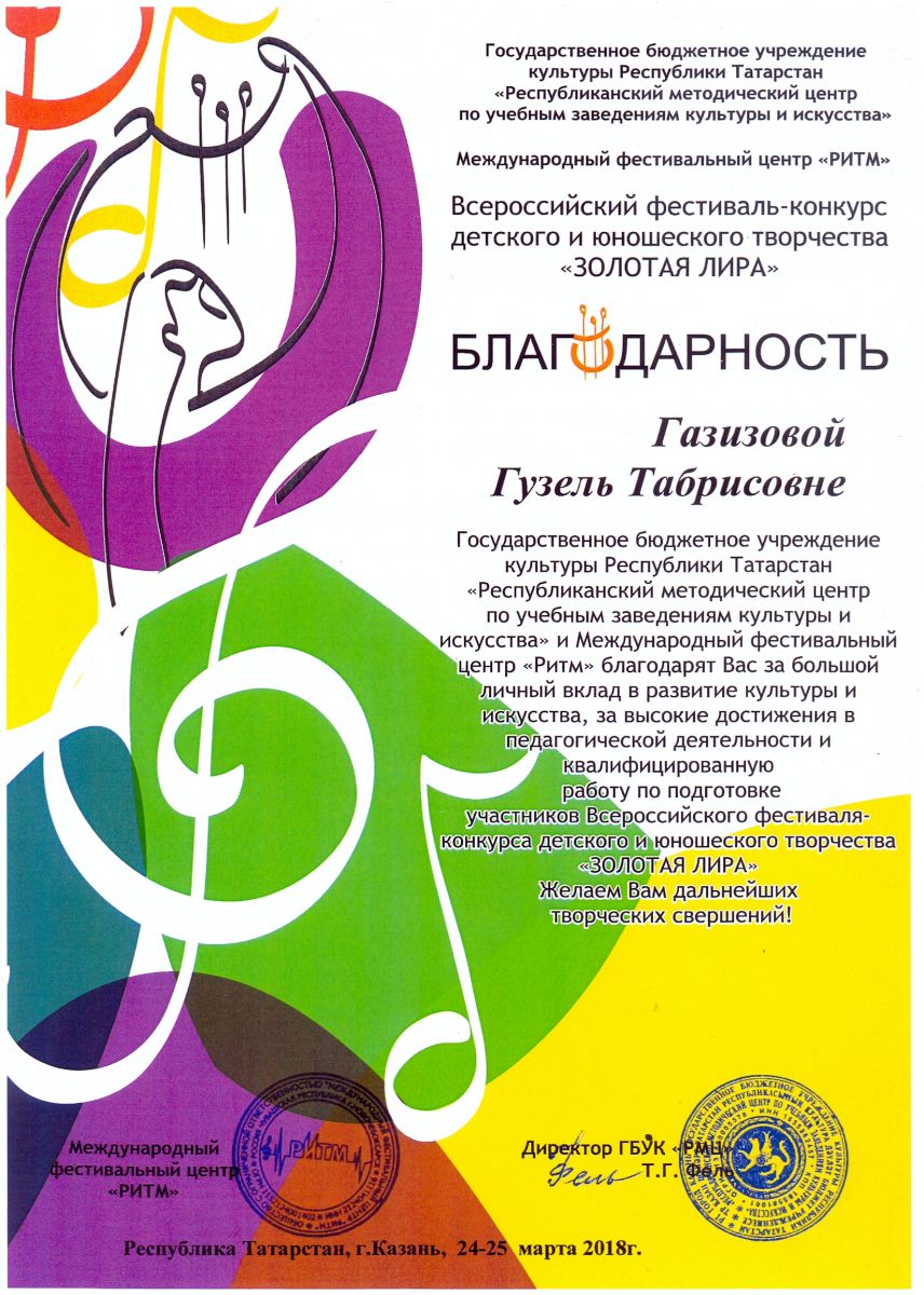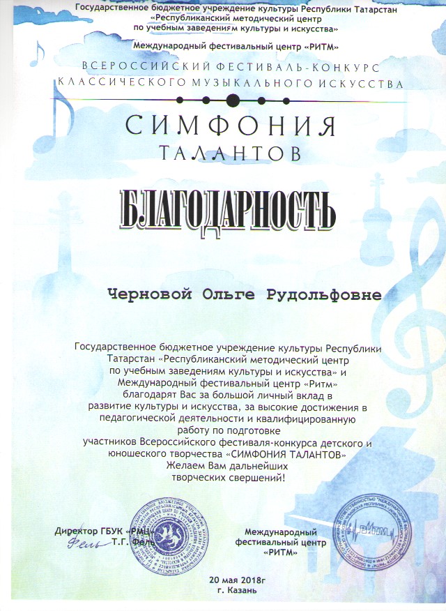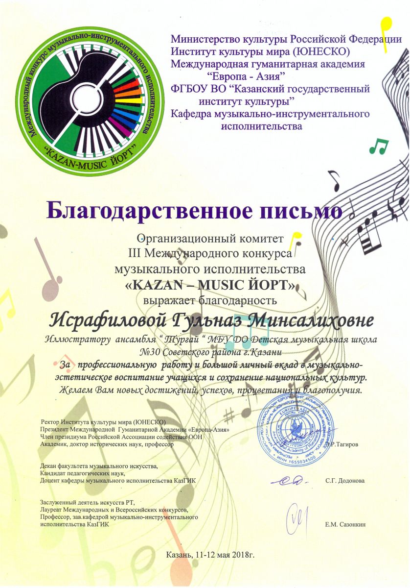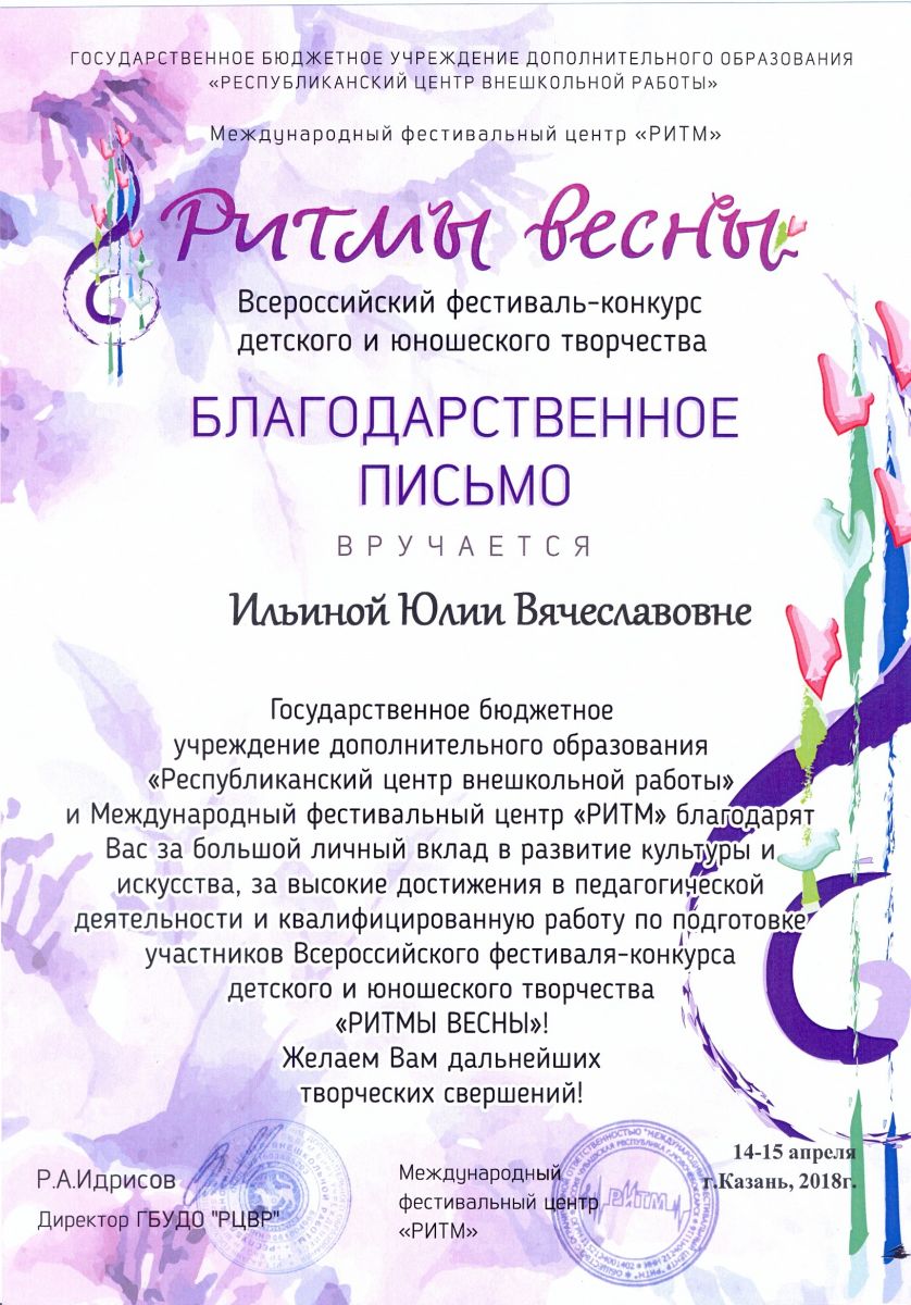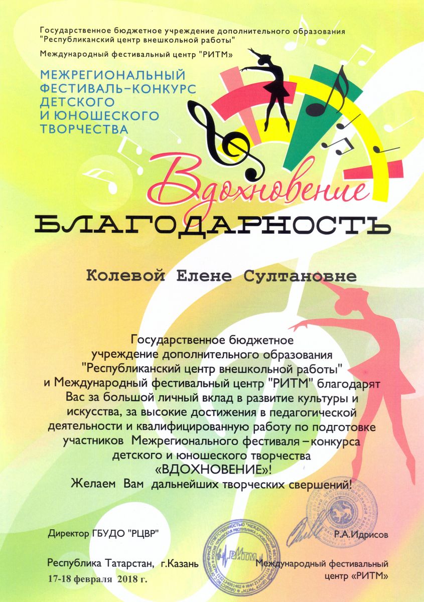 Международный конкурс-фестиваль "На крыльях таланта" - Камалова Ю.З. - благодарность