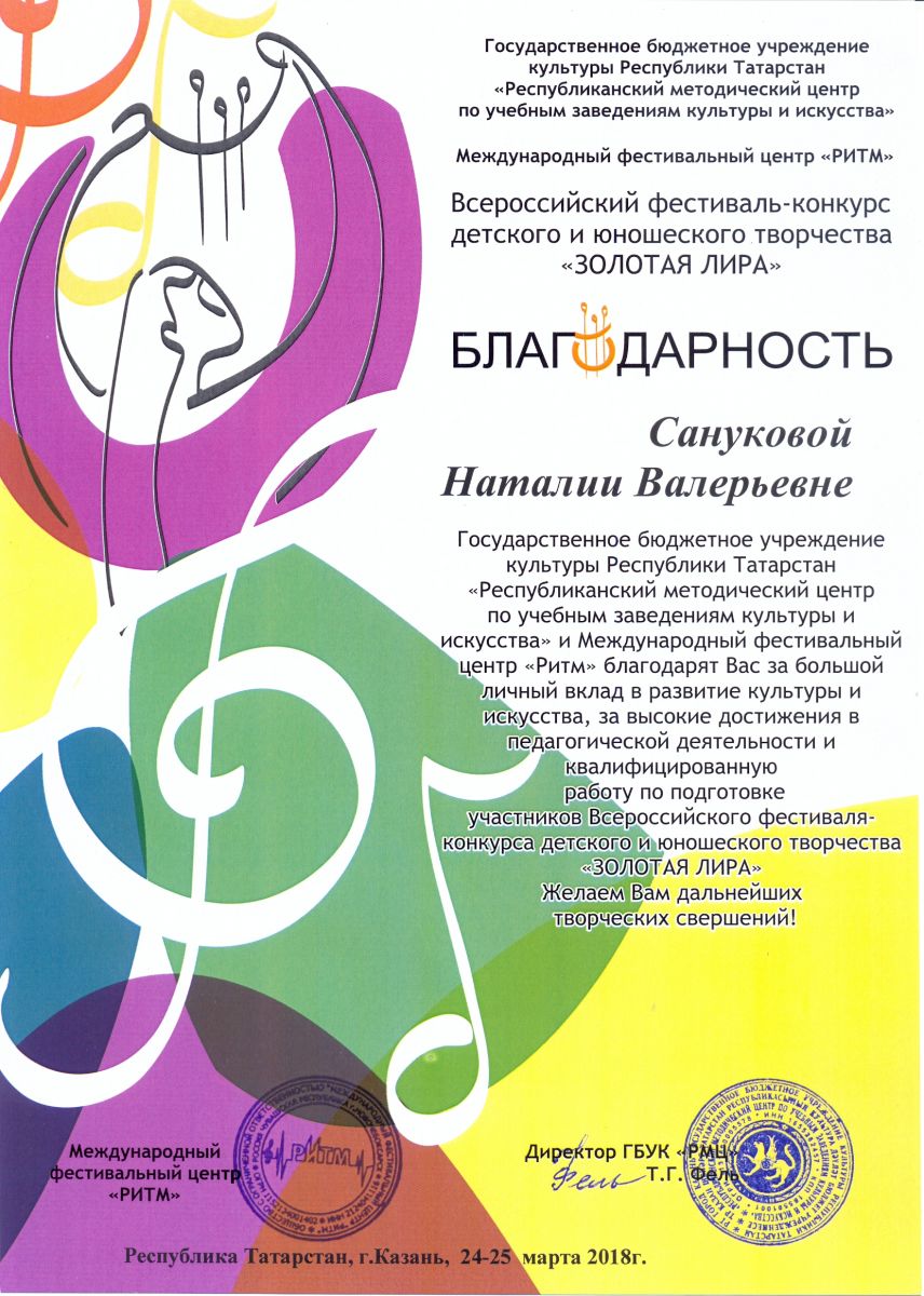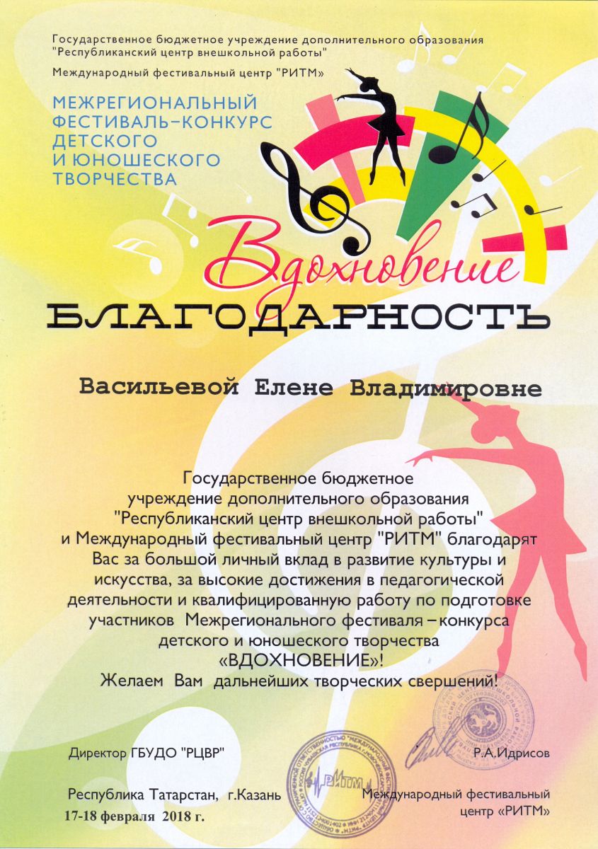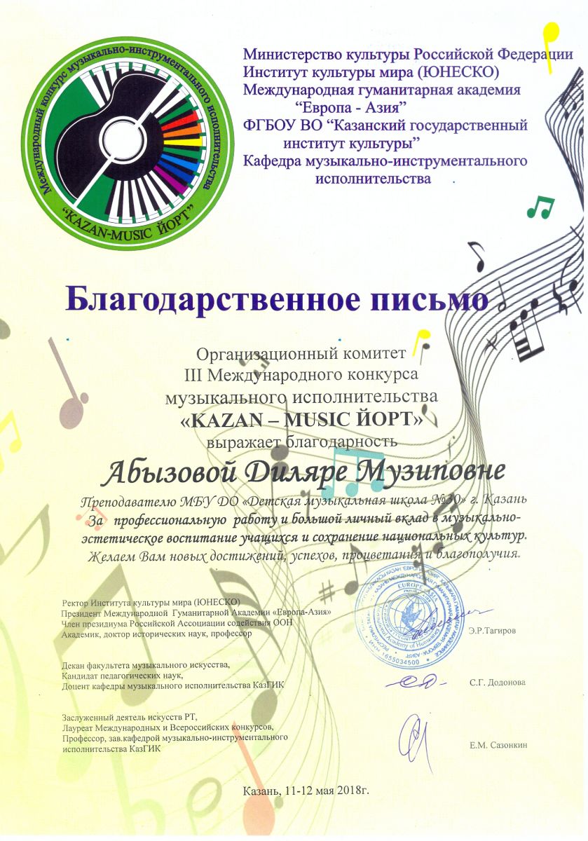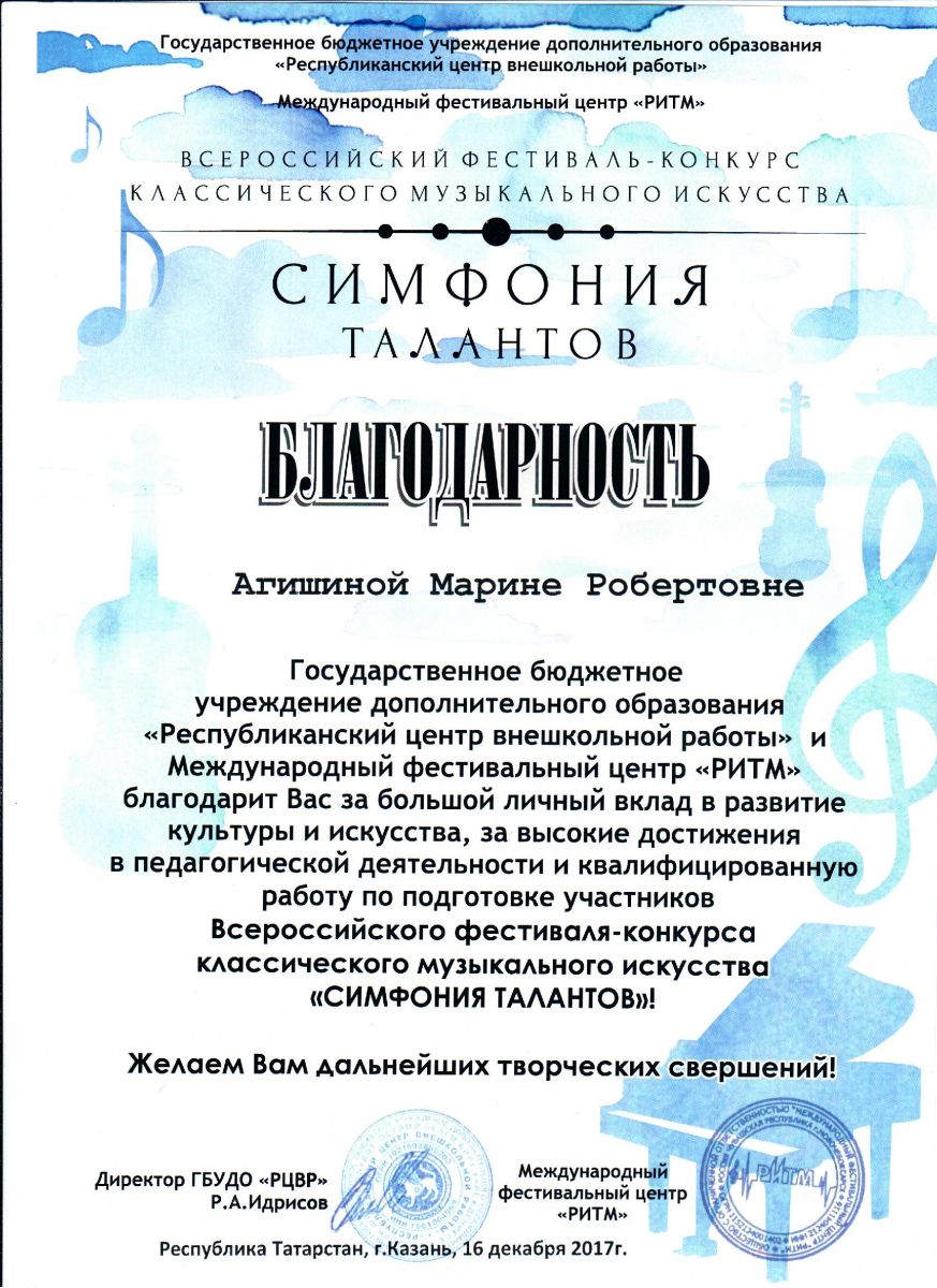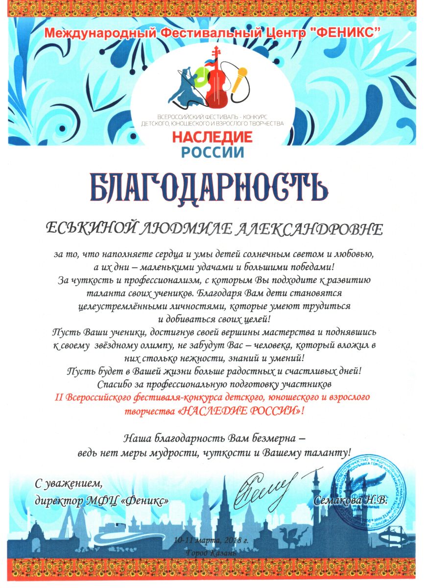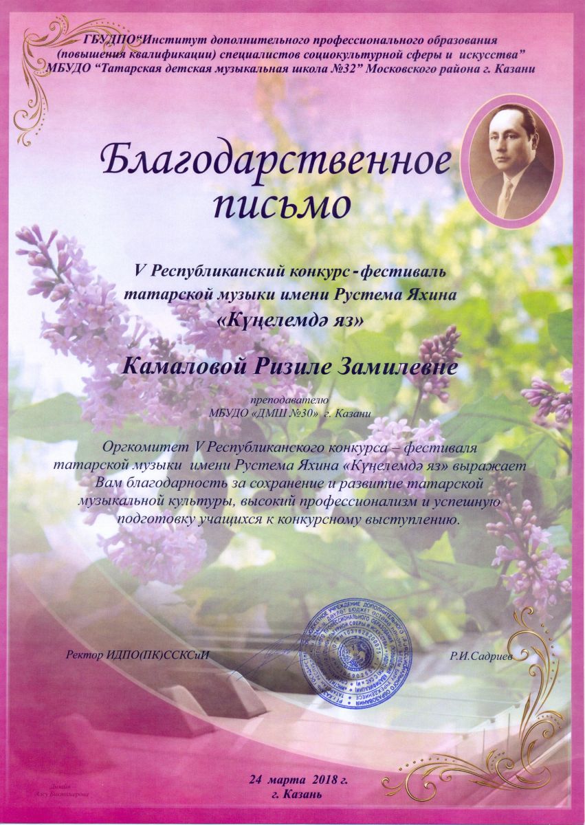 Международный конкурс-фестиваль "На крыльях таланта" - Камалова Ю.З. - благодарность