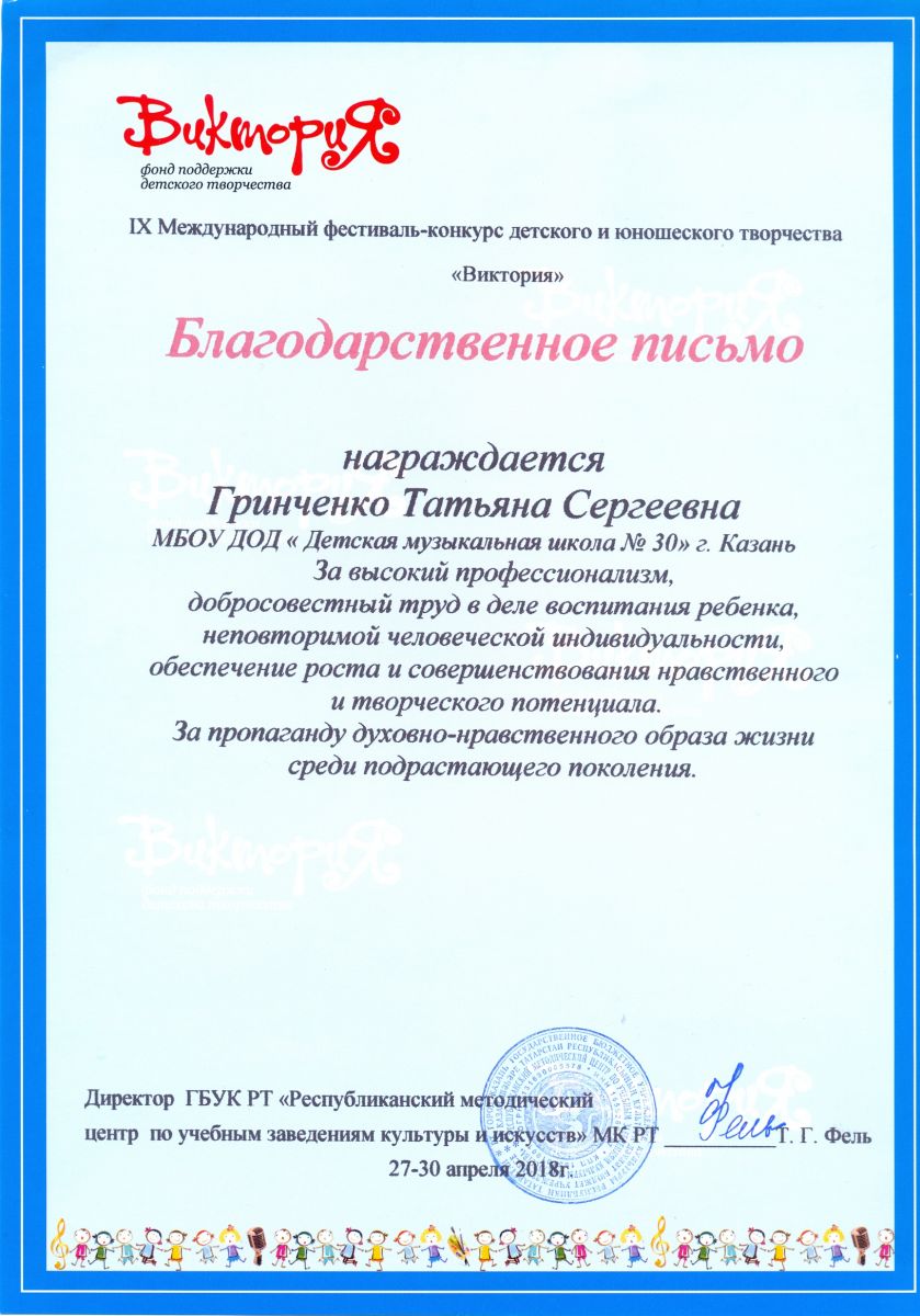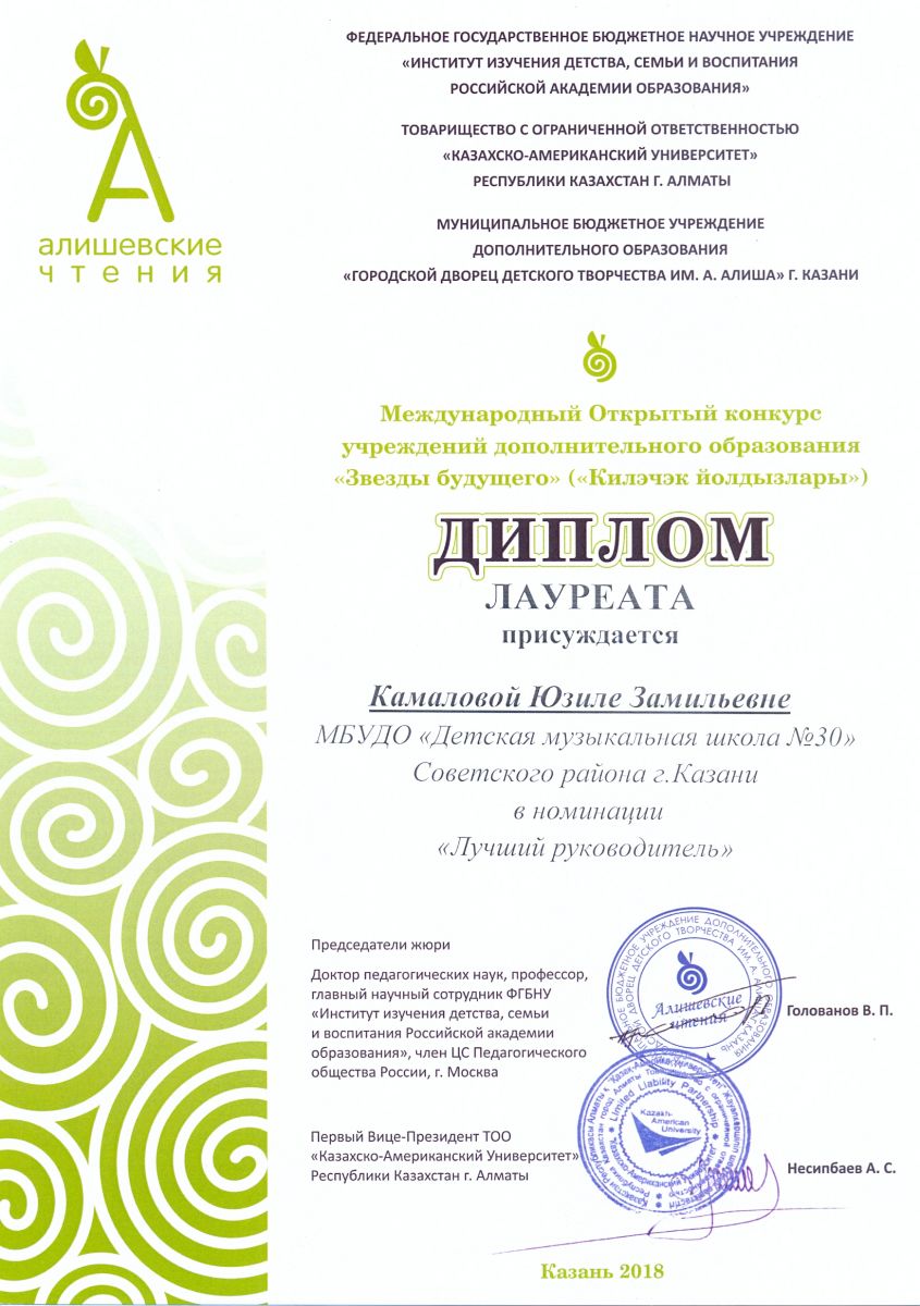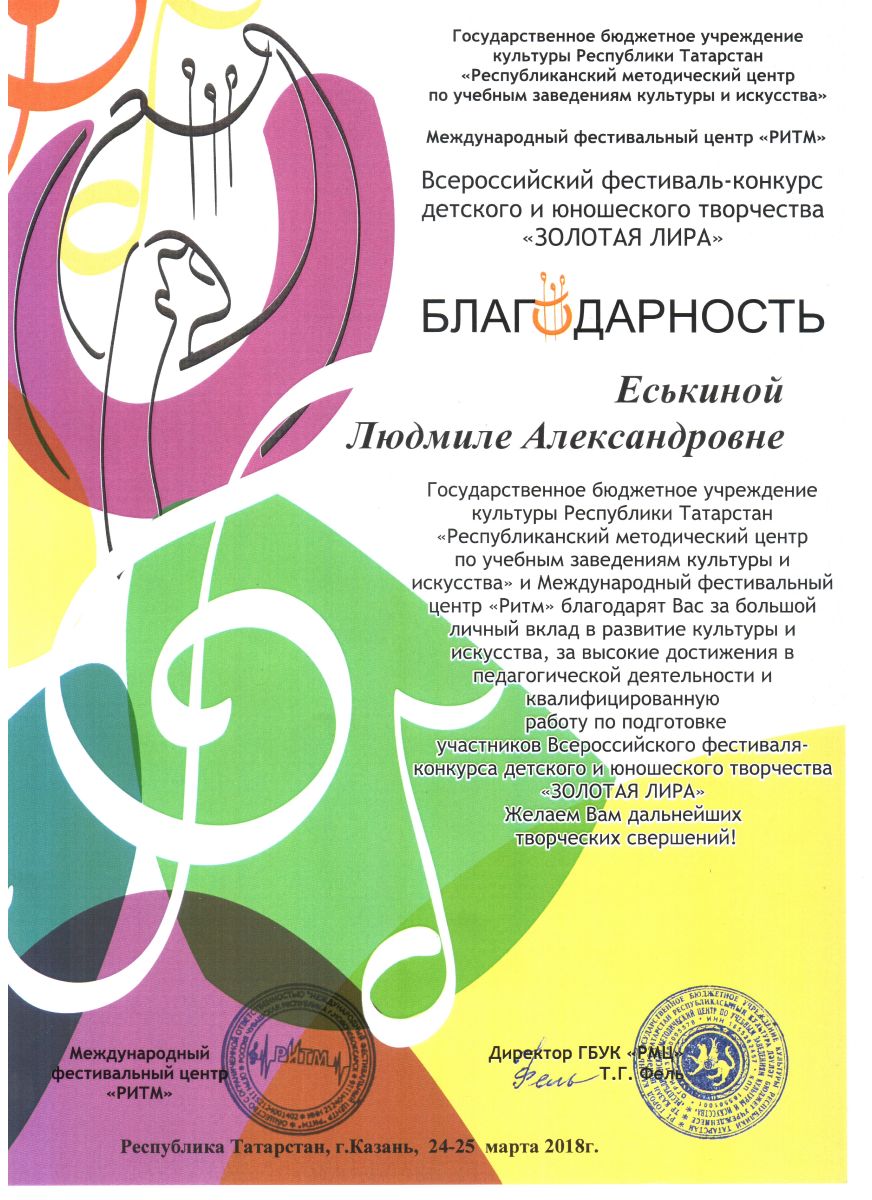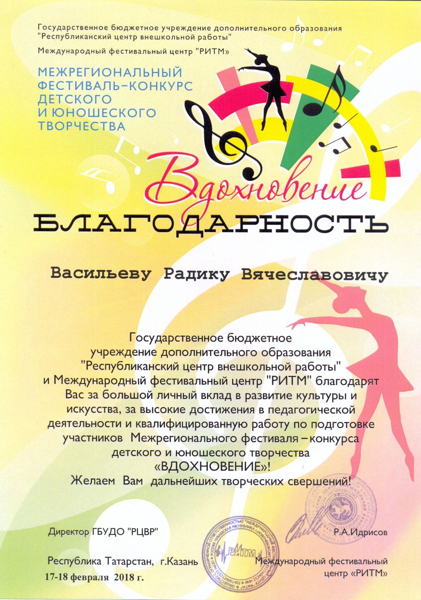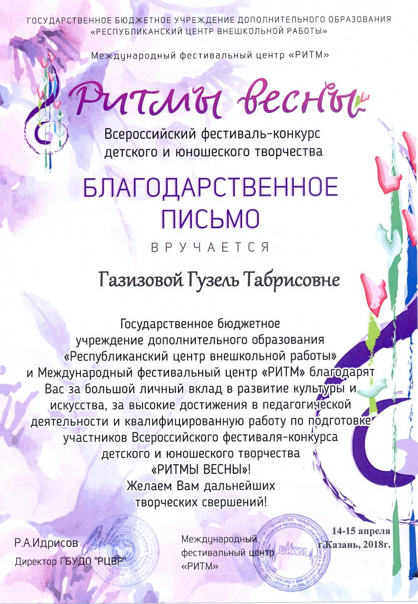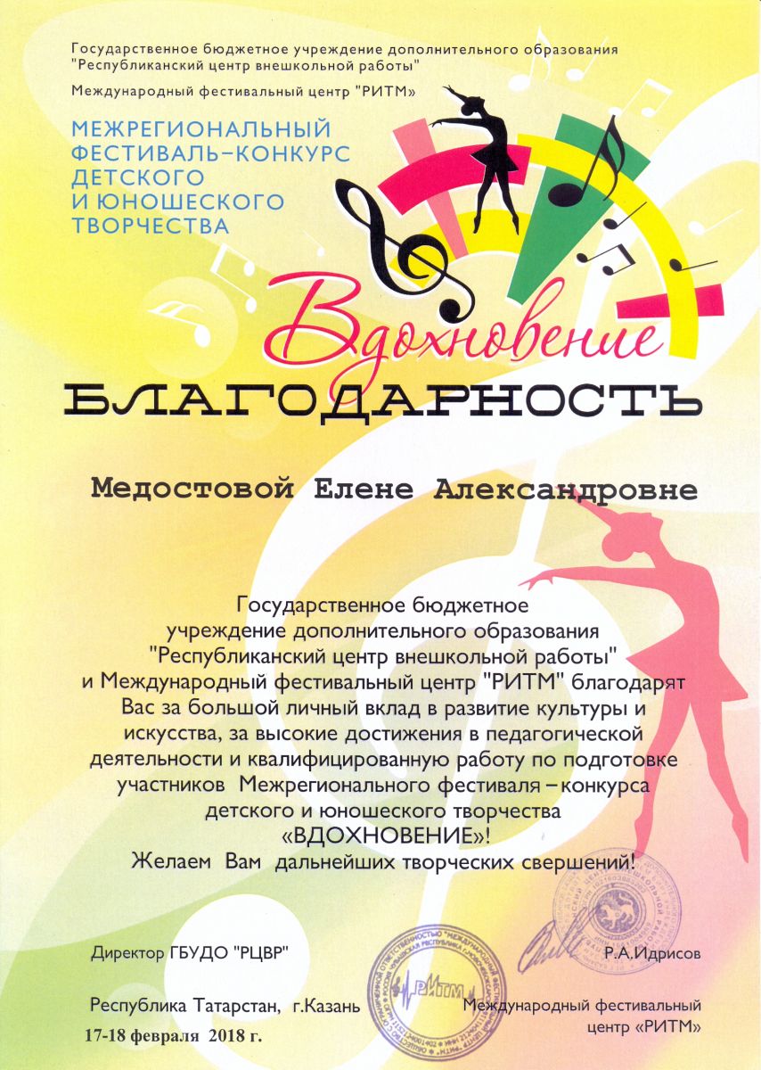 Международный конкурс-фестиваль "На крыльях таланта" - Камалова Ю.З. - благодарность