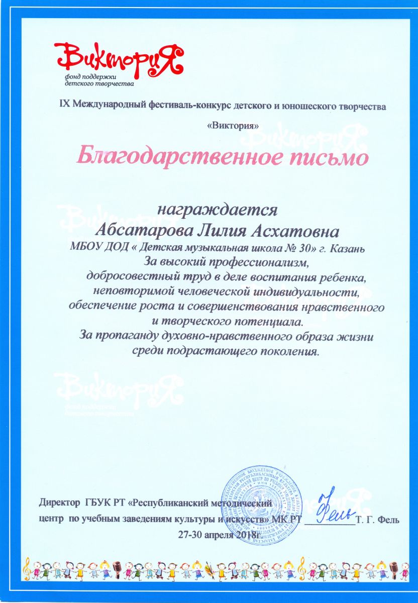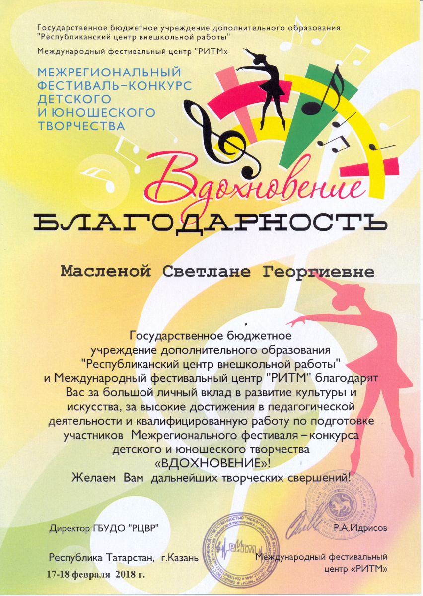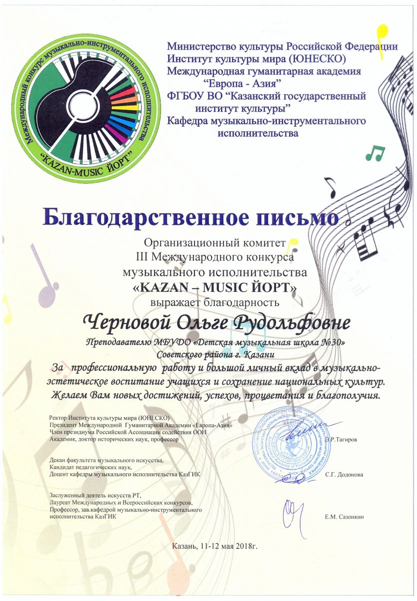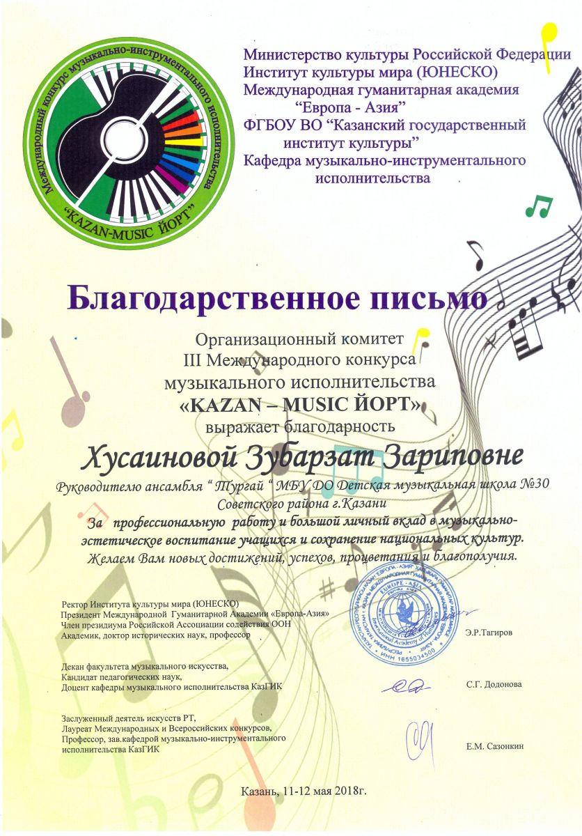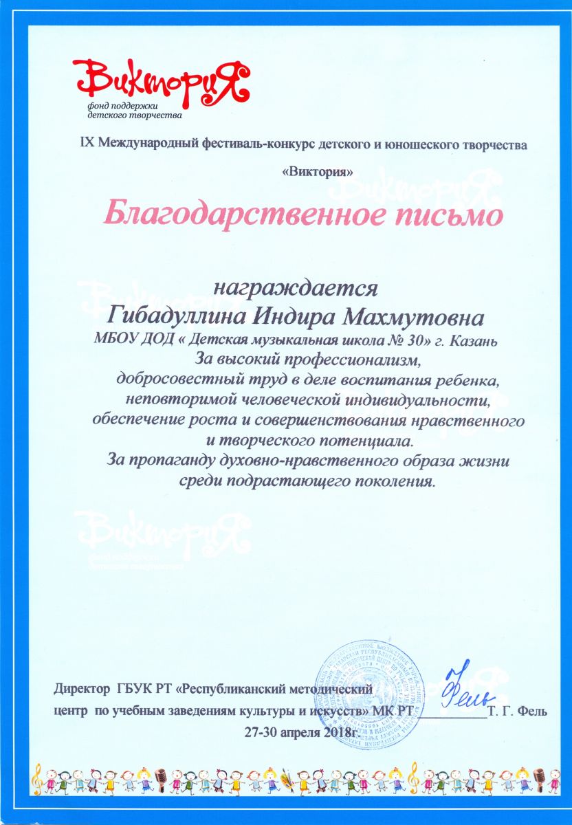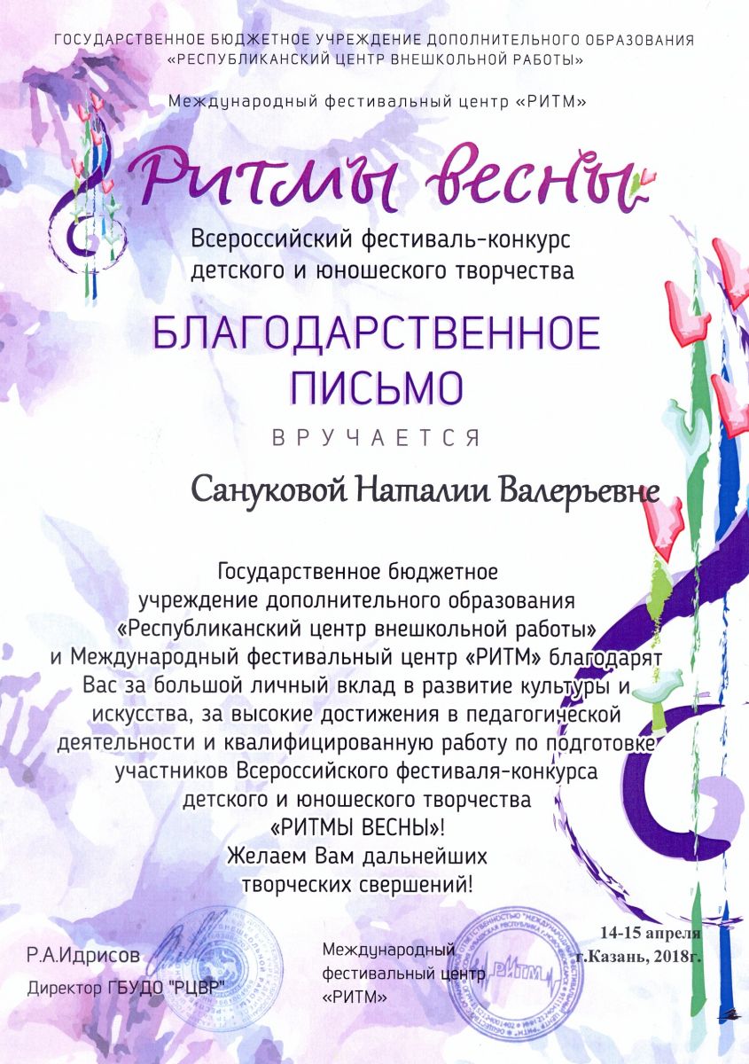 Международный конкурс-фестиваль "На крыльях таланта" - Камалова Ю.З. - благодарность