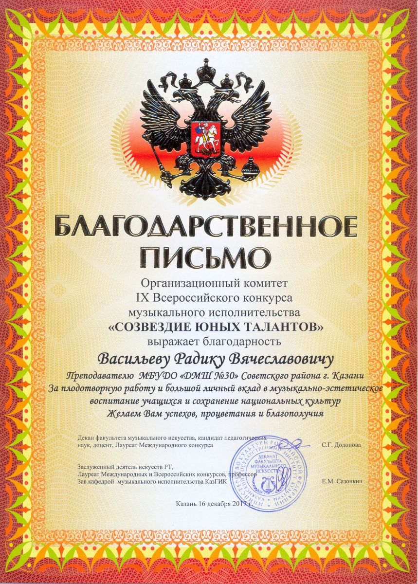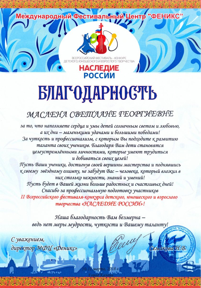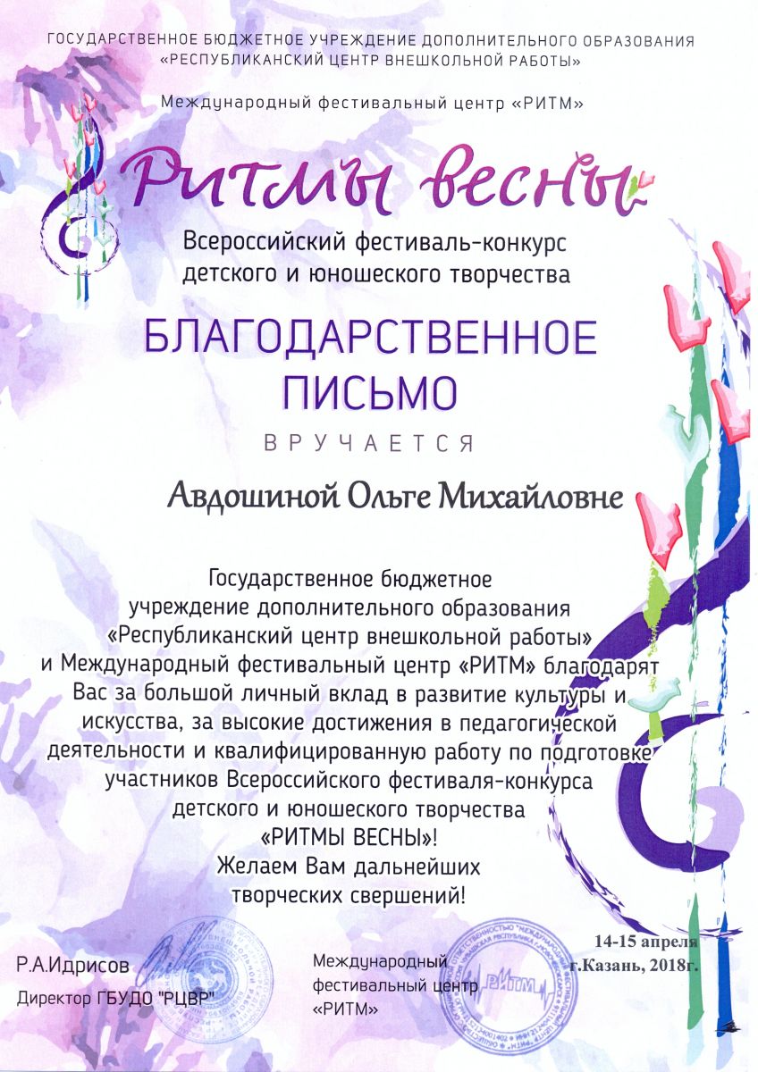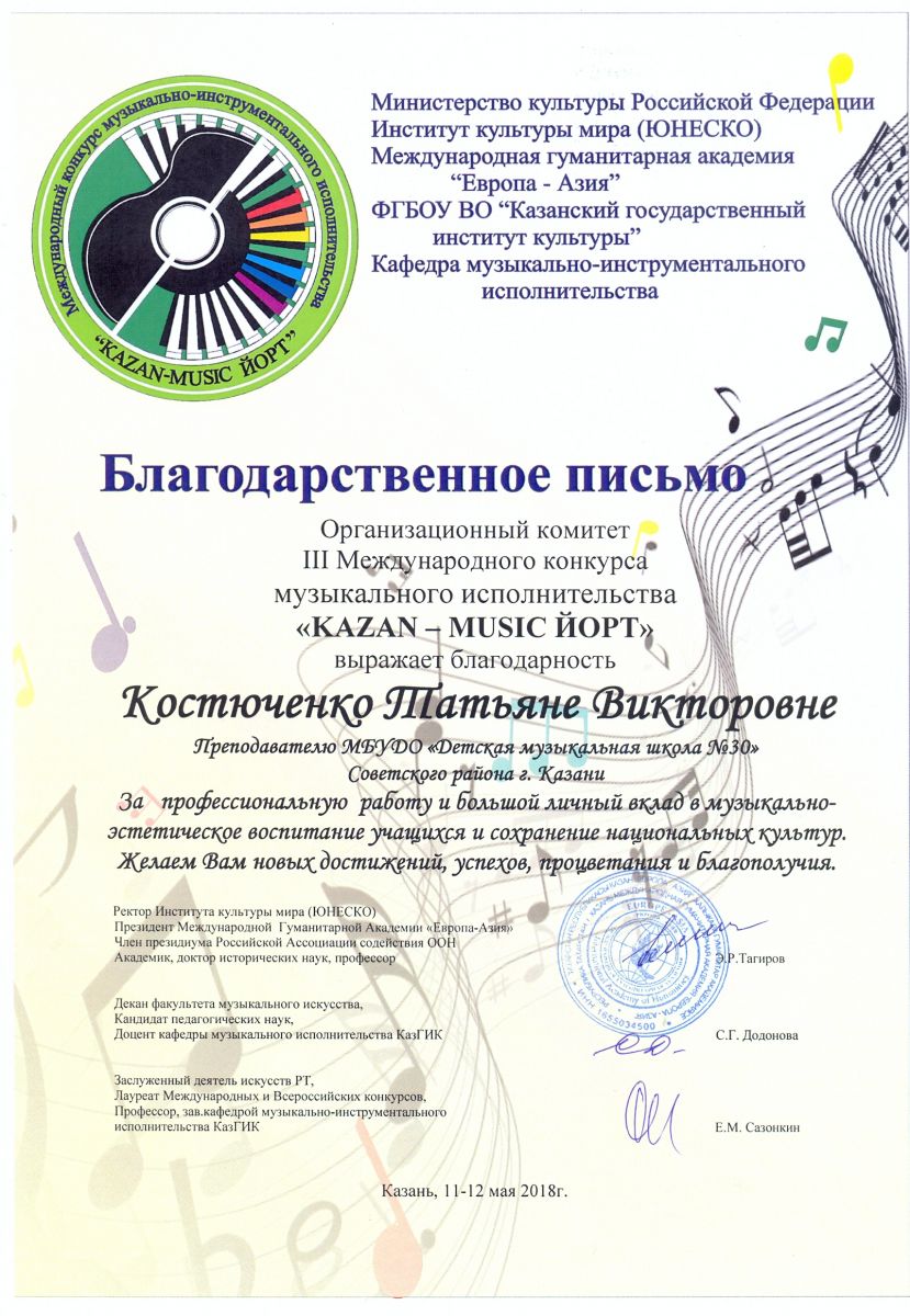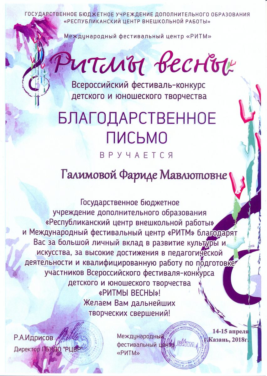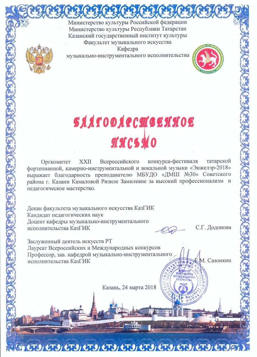 Международный конкурс-фестиваль "На крыльях таланта" - Камалова Ю.З. - благодарность