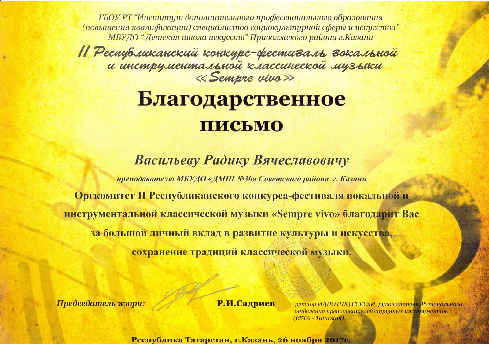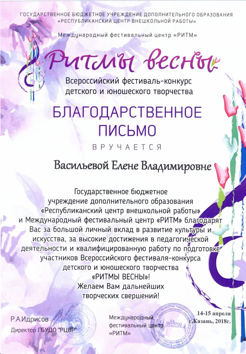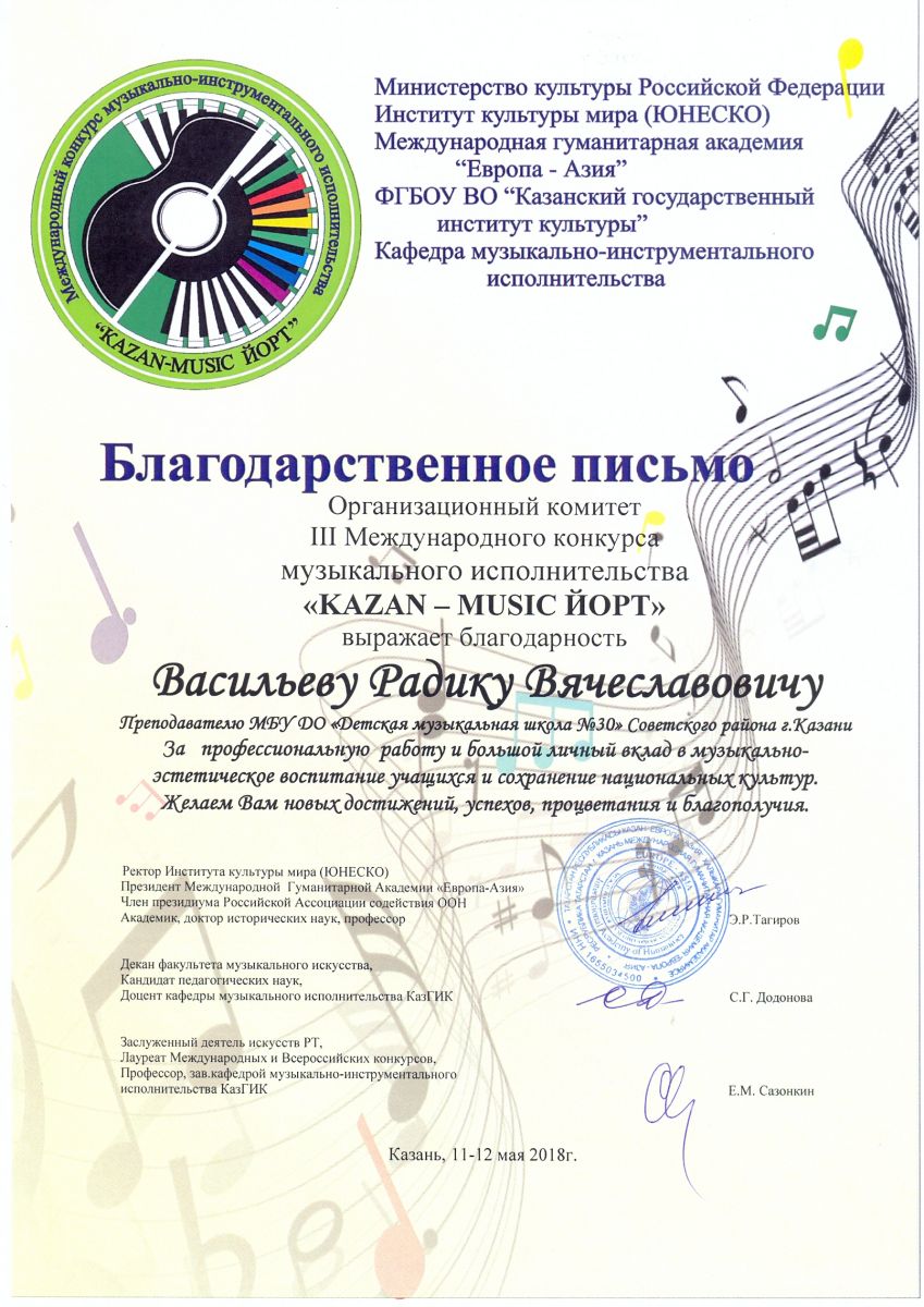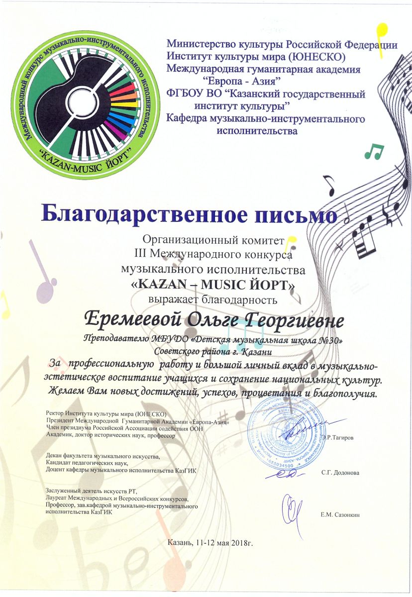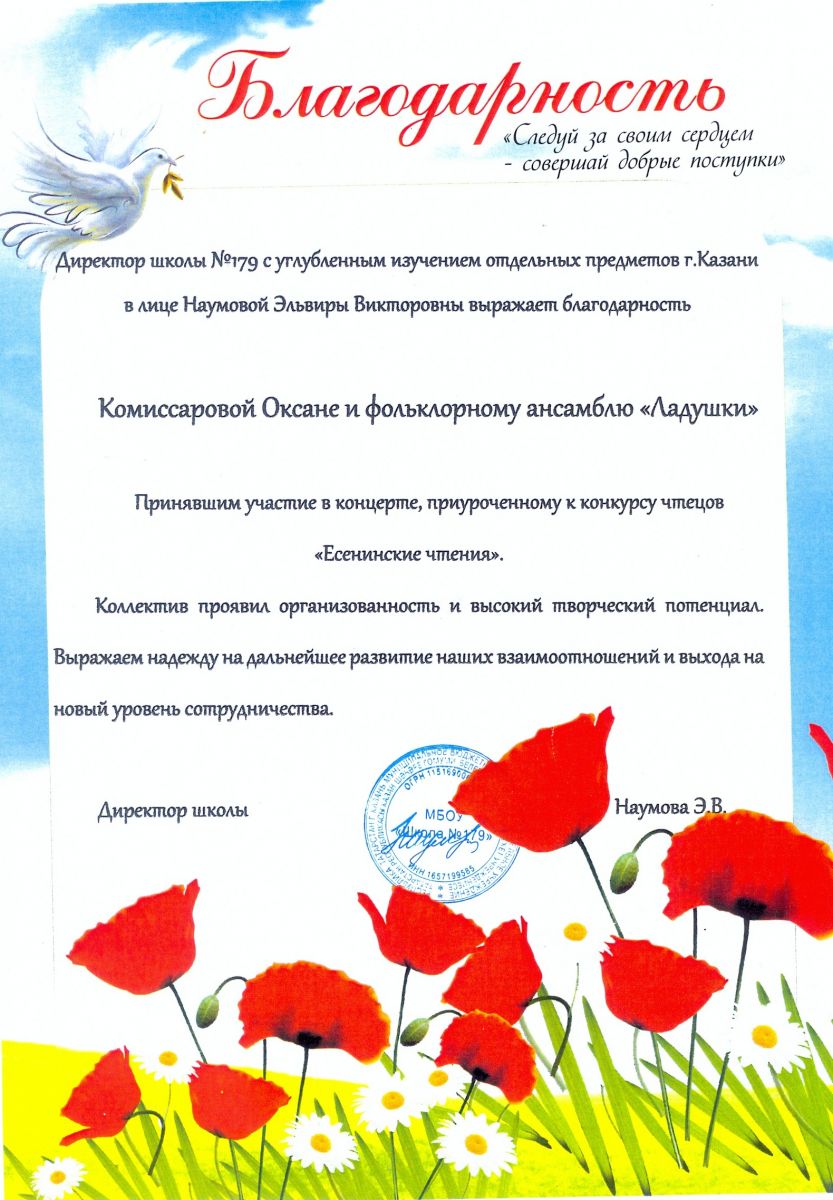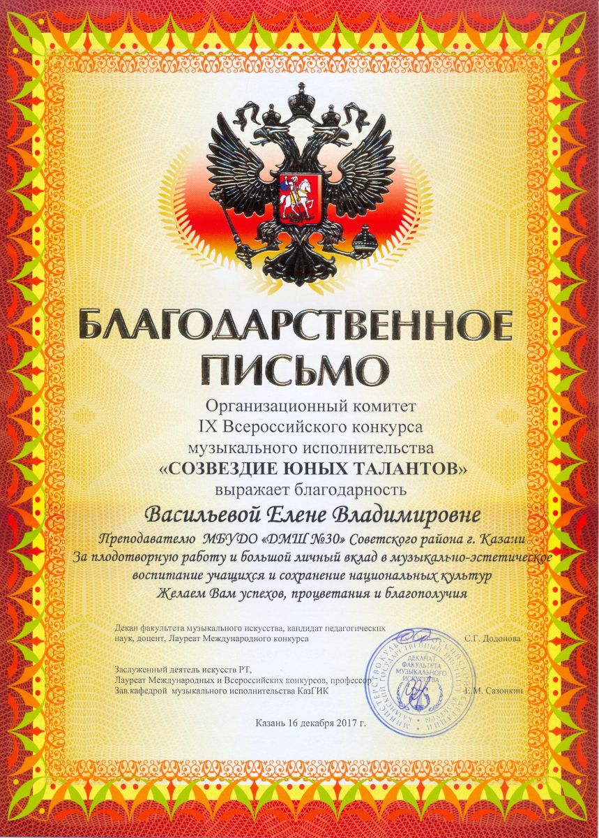 Международный конкурс-фестиваль "На крыльях таланта" - Камалова Ю.З. - благодарность