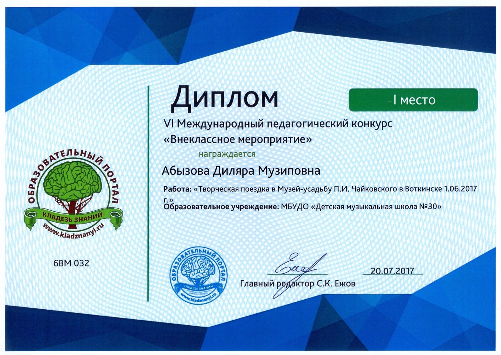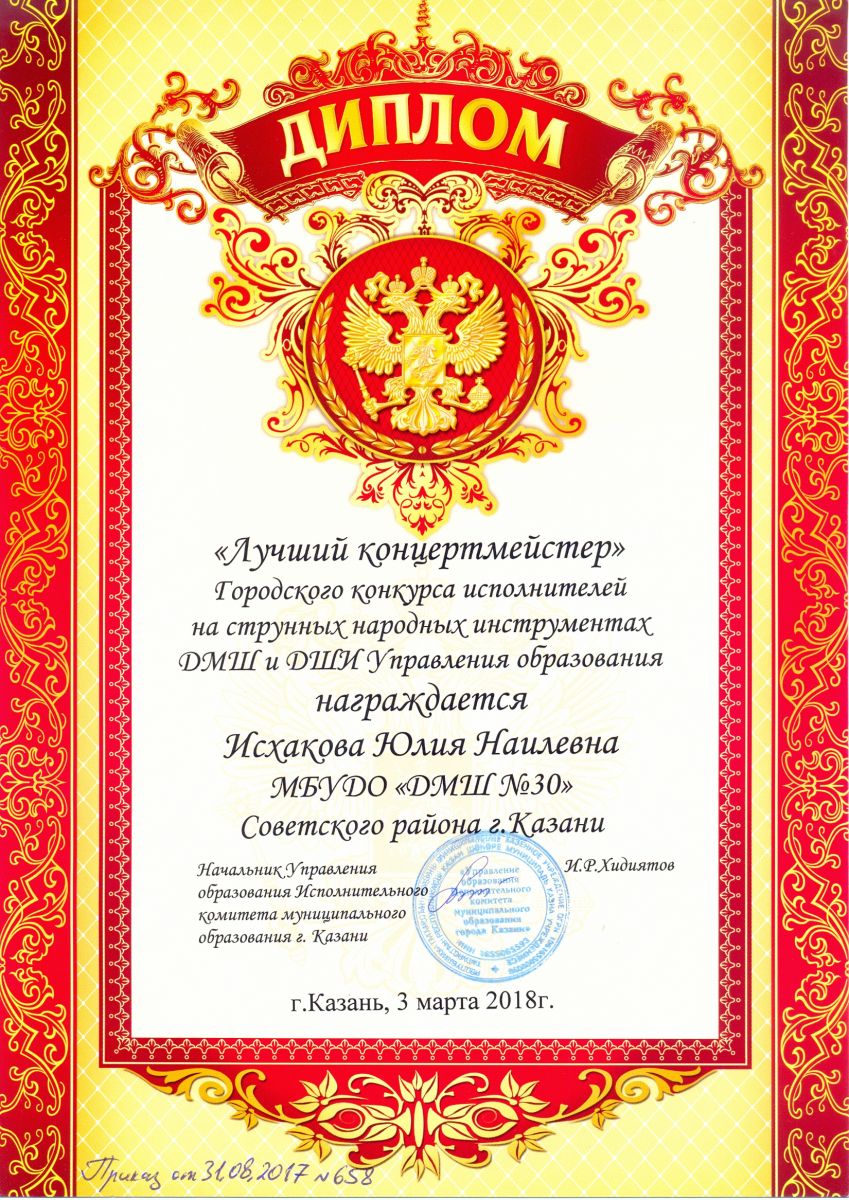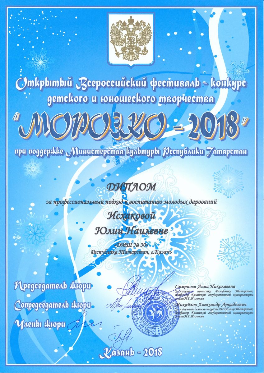 Всероссийский конкурс "Внеурочная образовательная деятельность педагога" - Исхакова Ю.Н. - II место