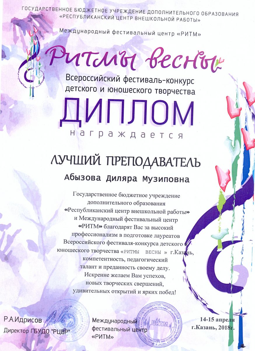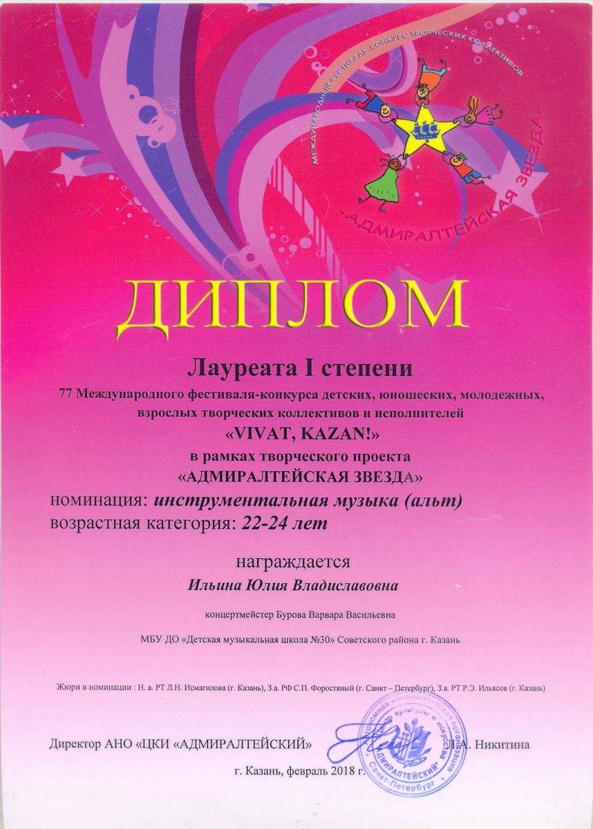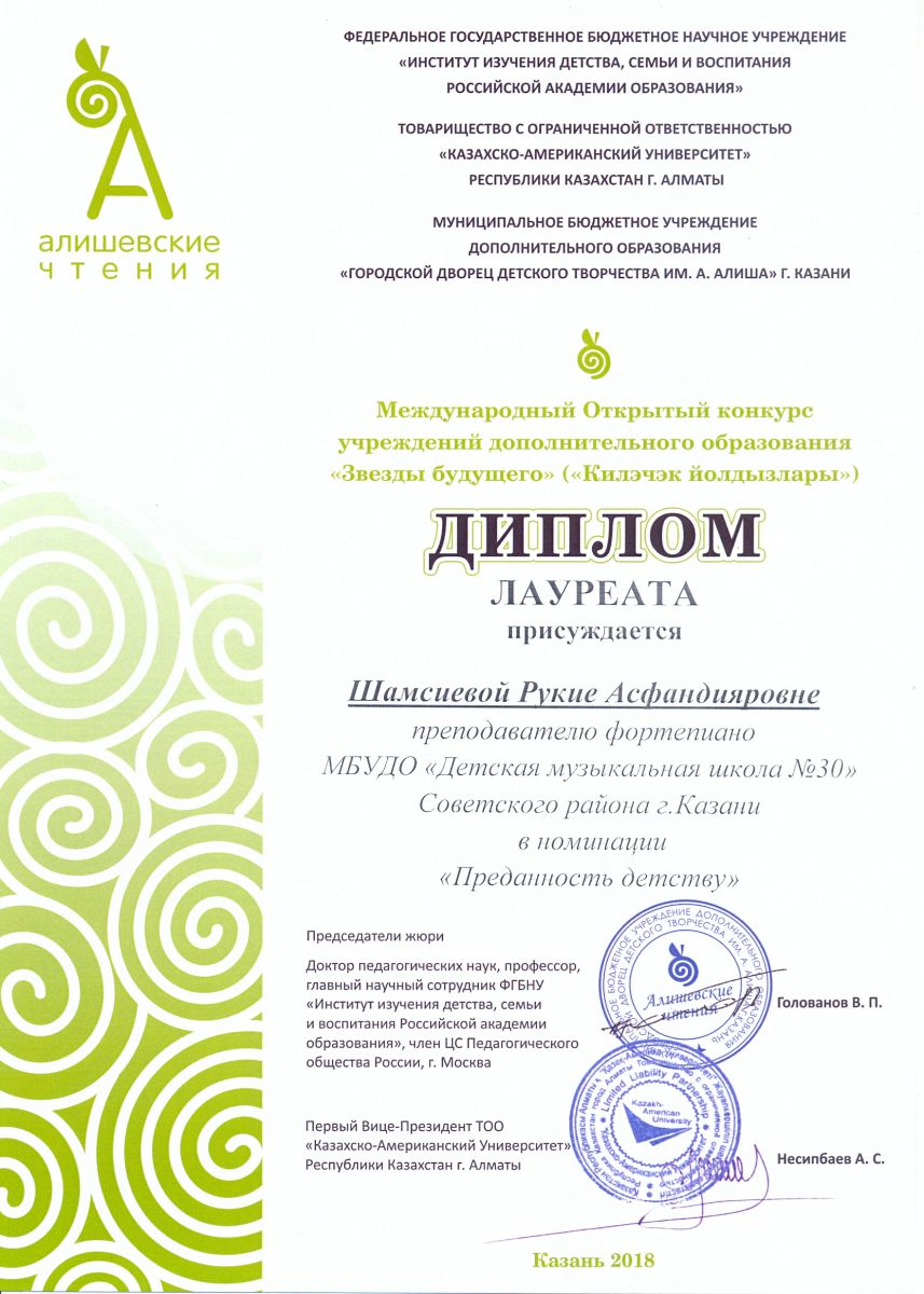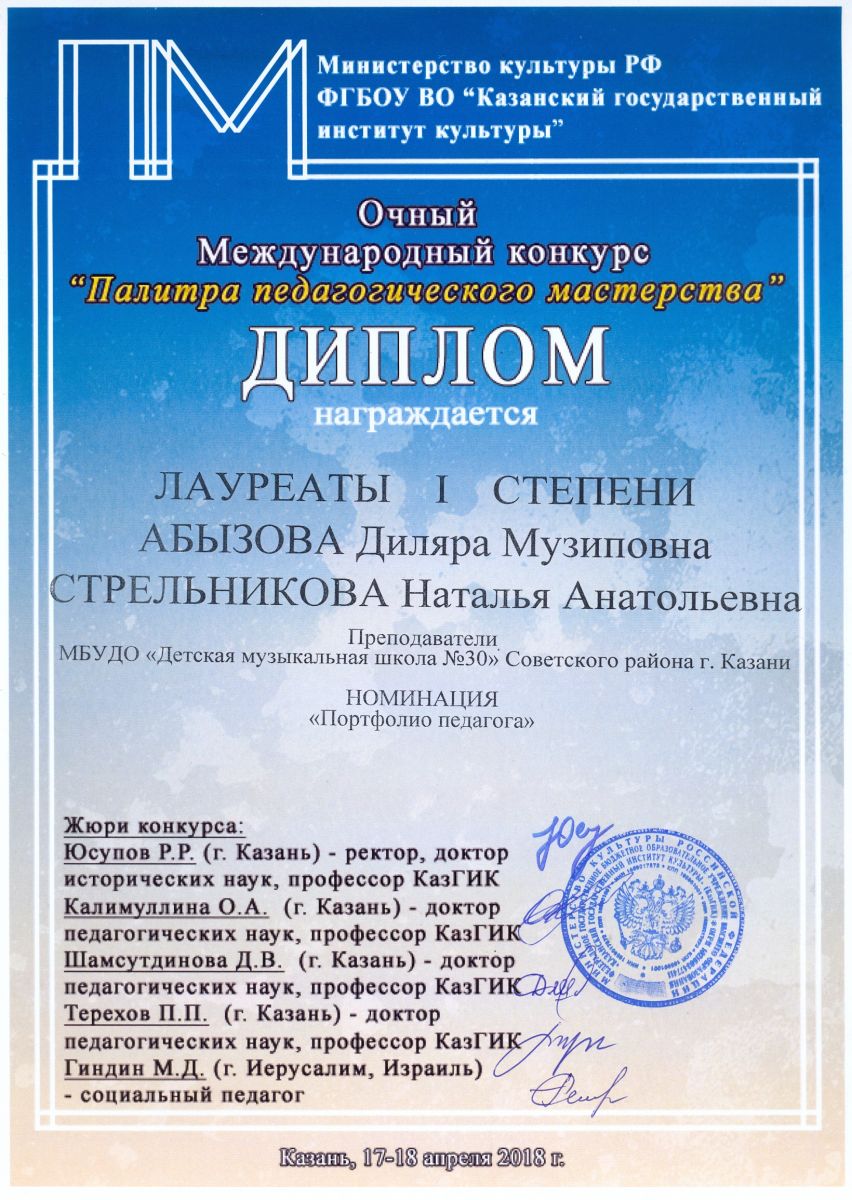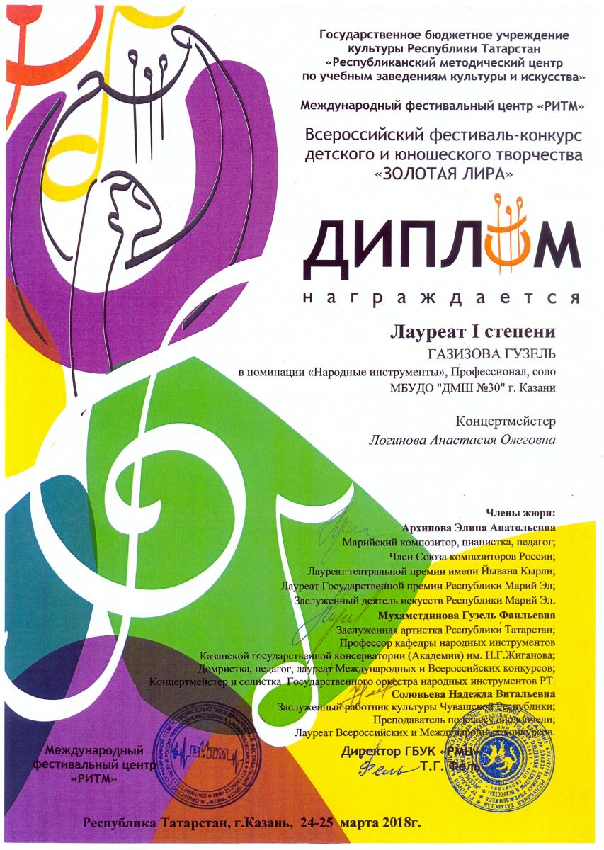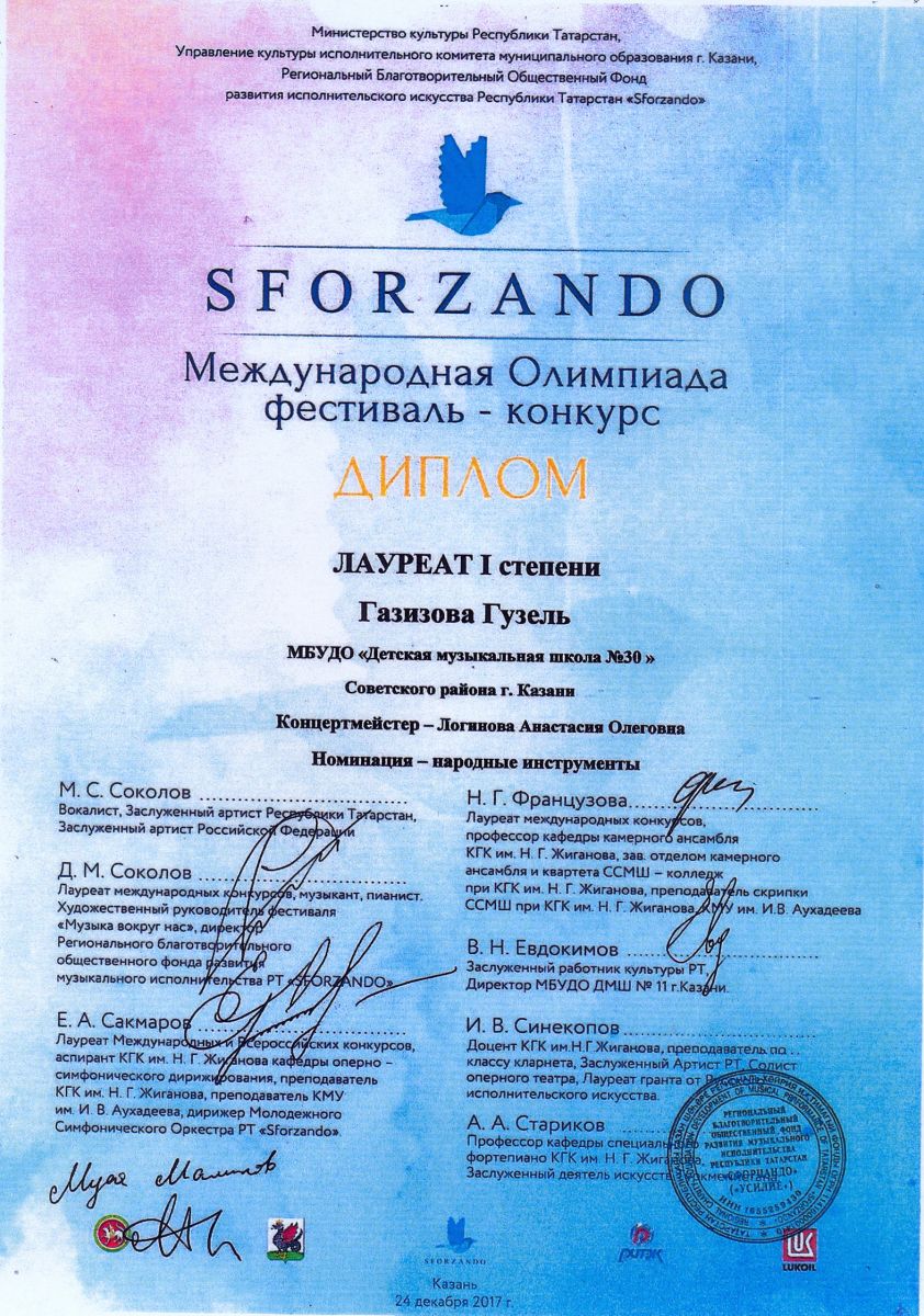 Международный фестиваль-конкурс "SFORZANDO" - Газизова Г.Т. - I место