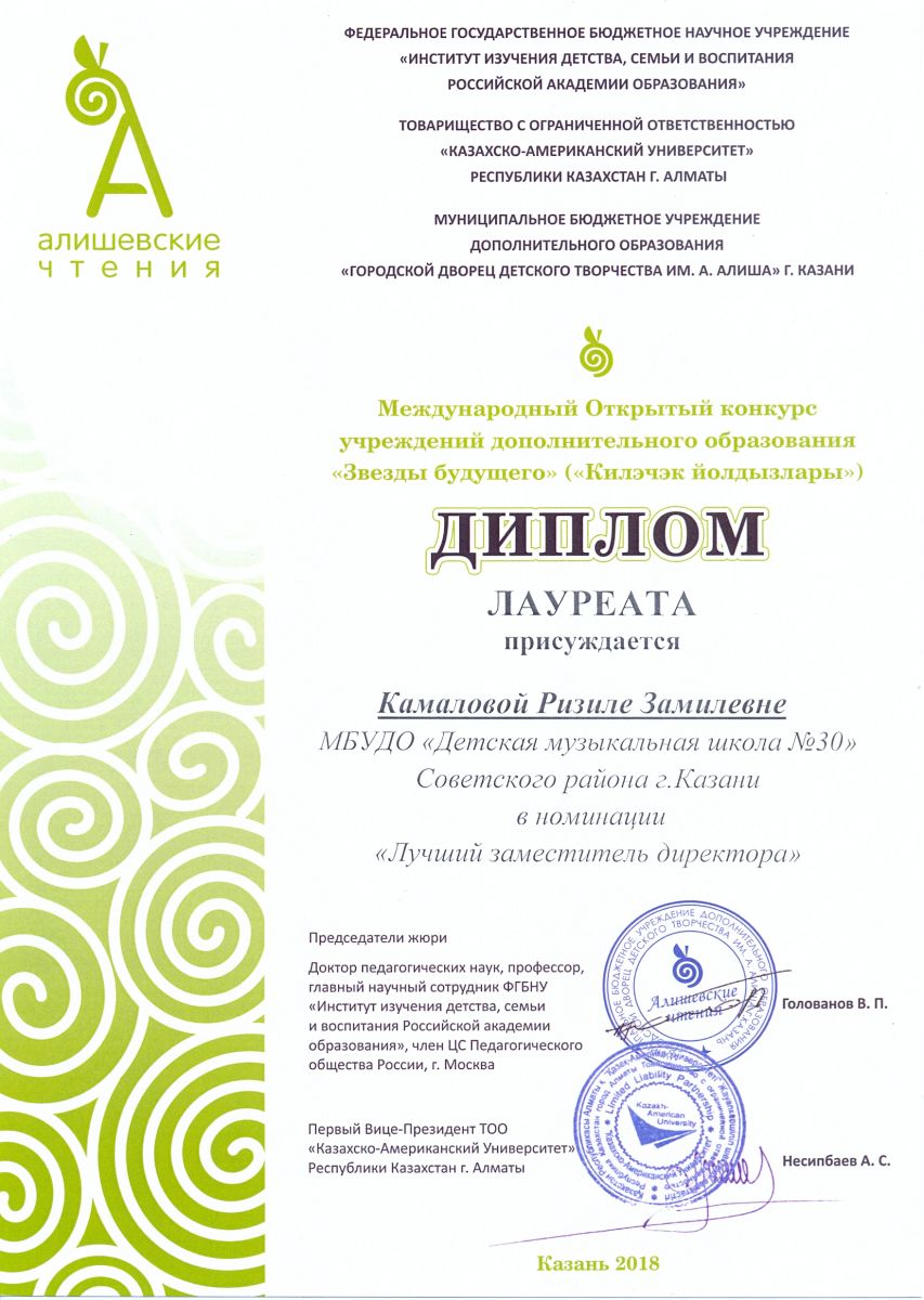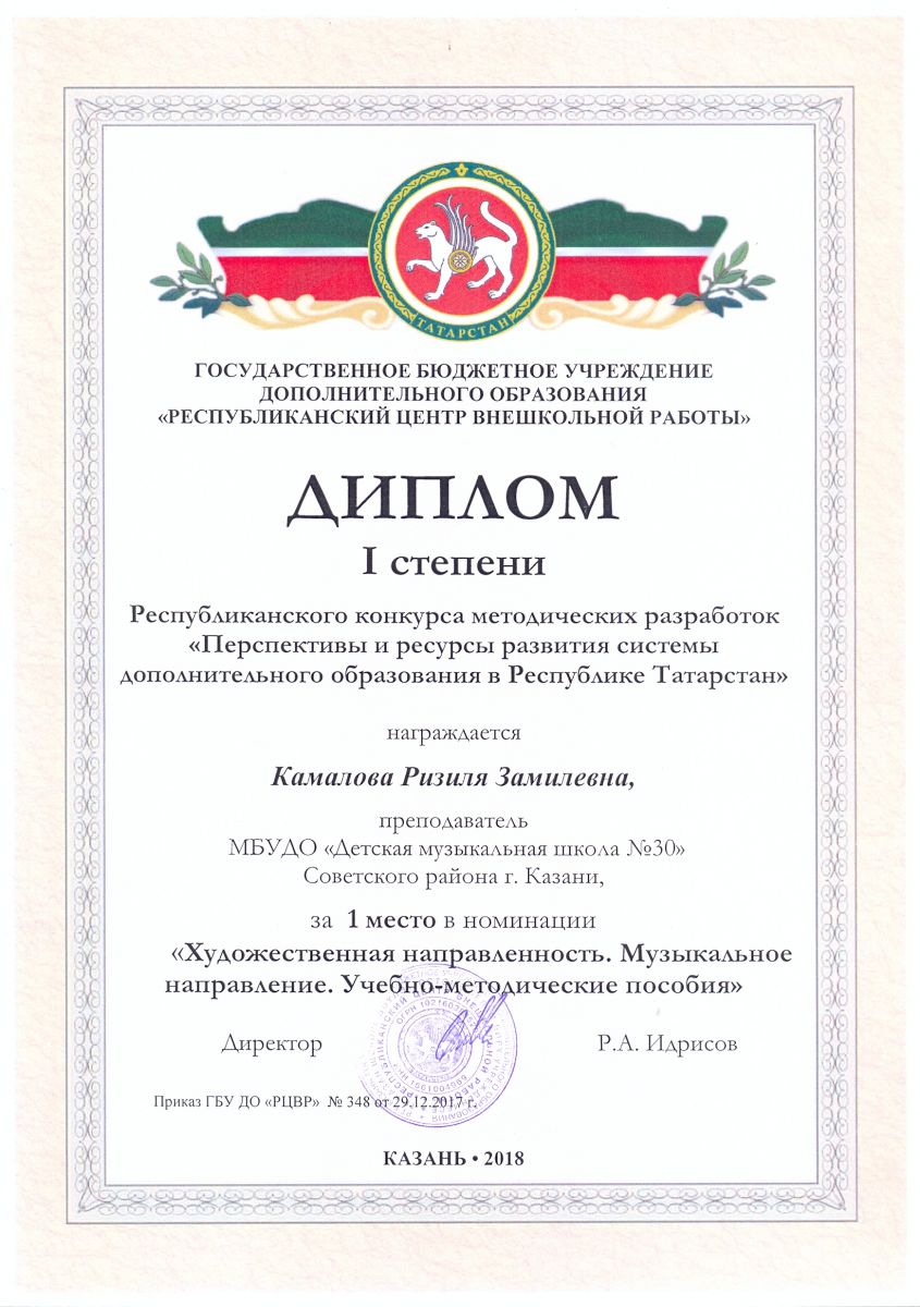 Очный Международный конкурс "Палитра педагогического мастерства" - Камалова Р.З. - I место