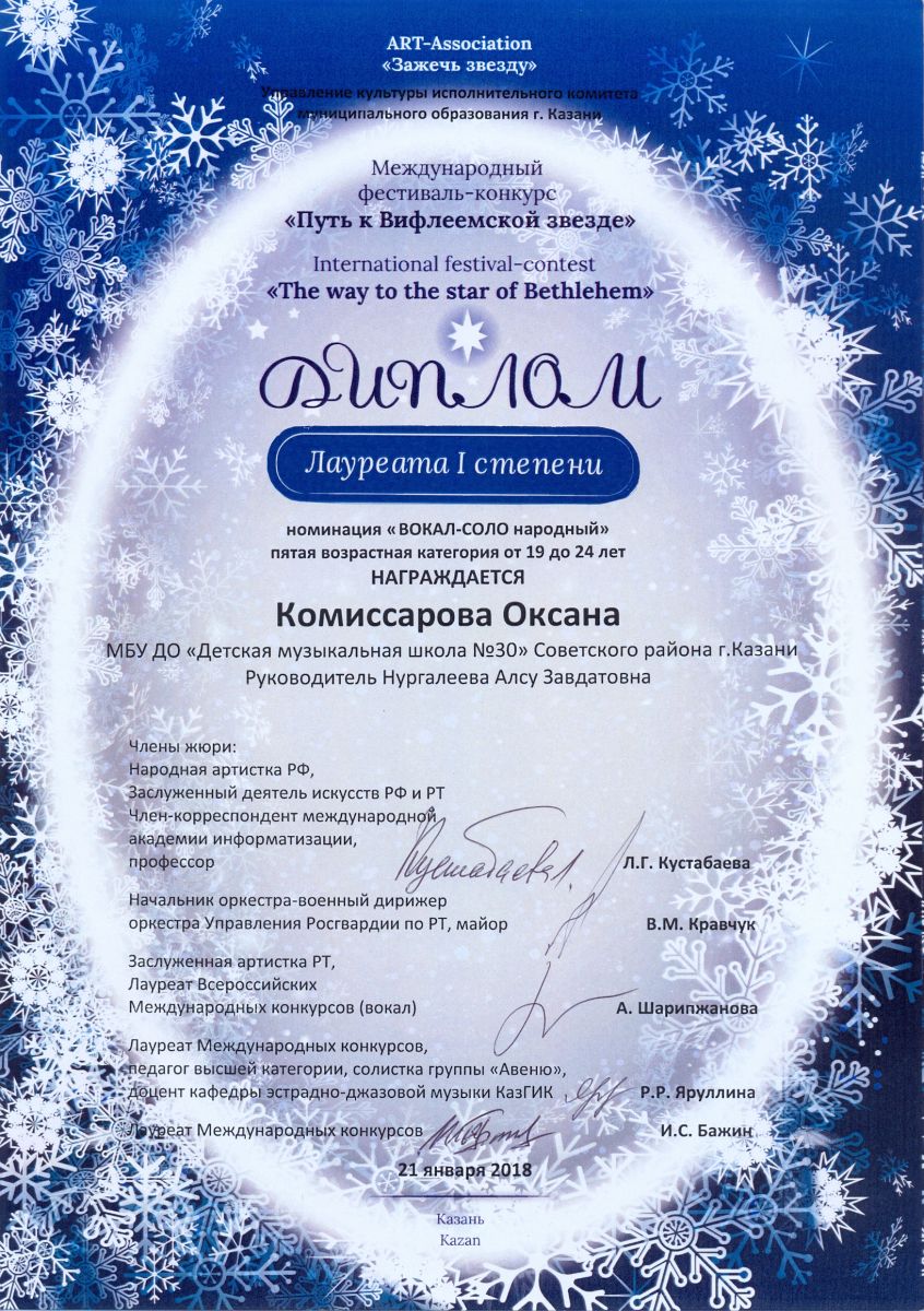 Международный фестиваль-конкурс "Путь к Вифлеемской звезде" - Комиссарова О.М. - I место
