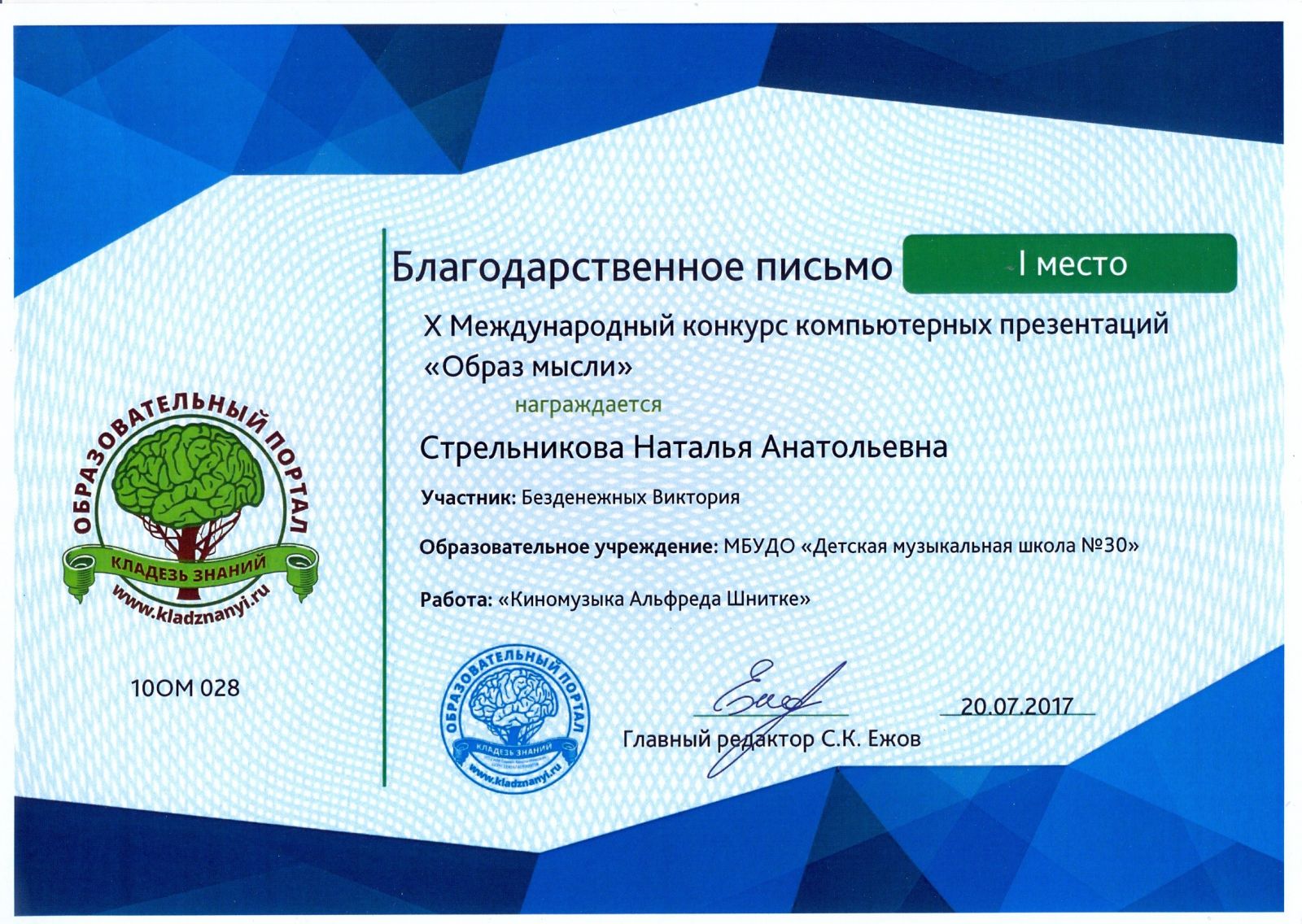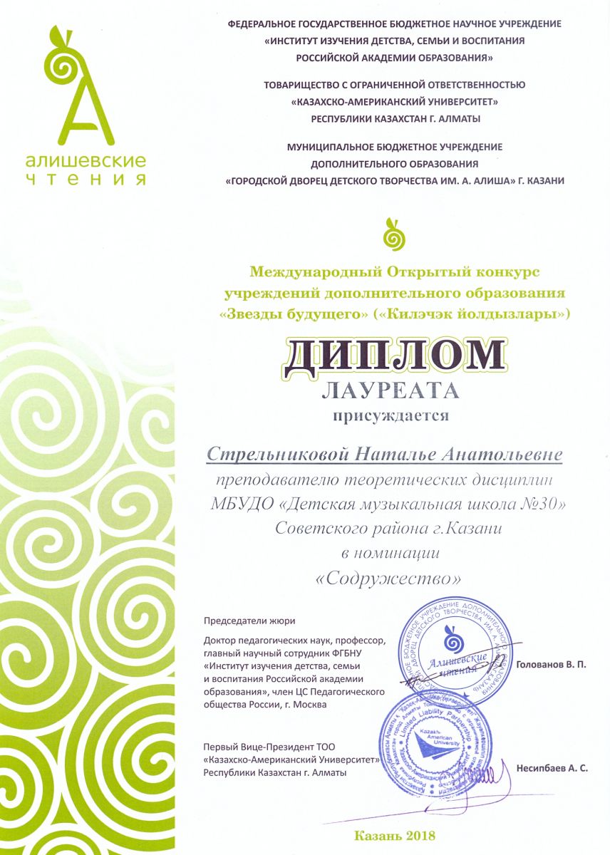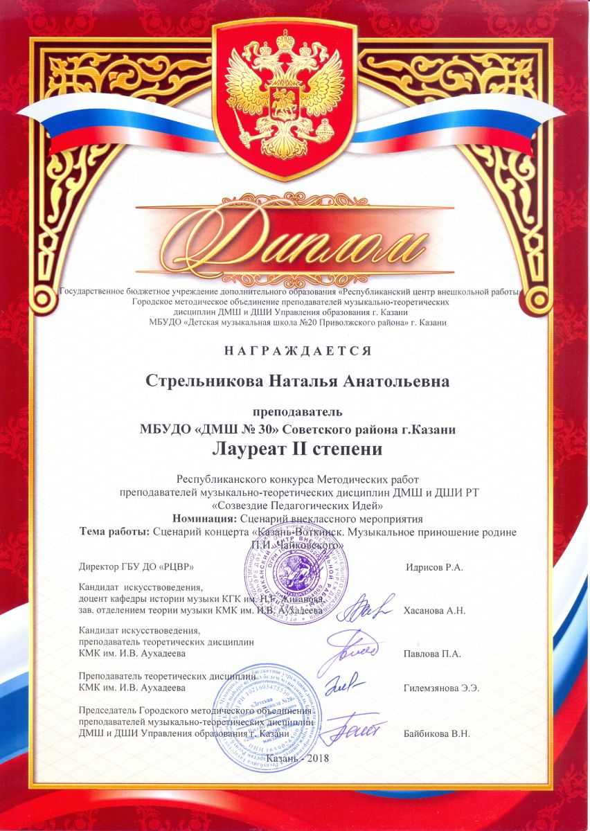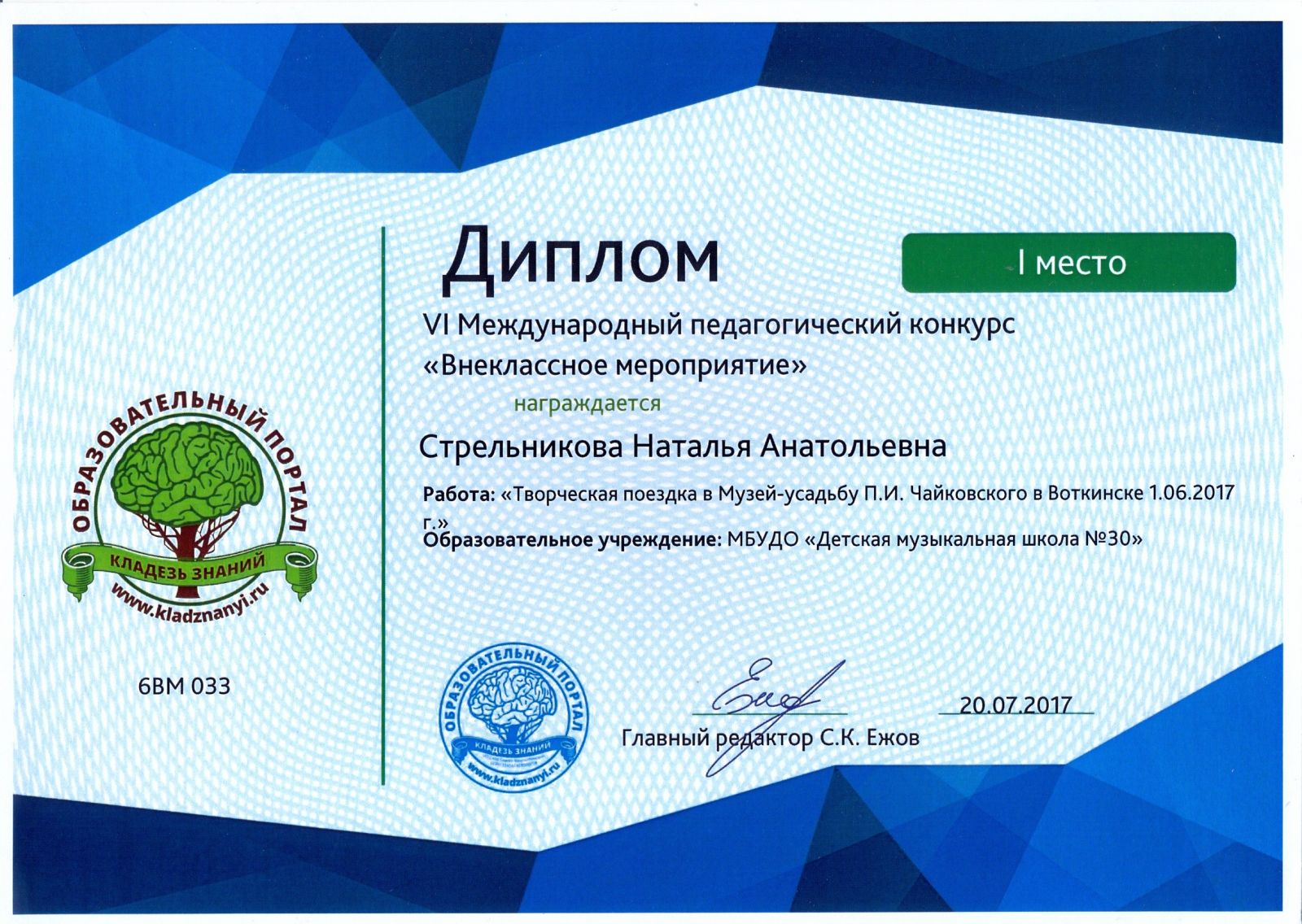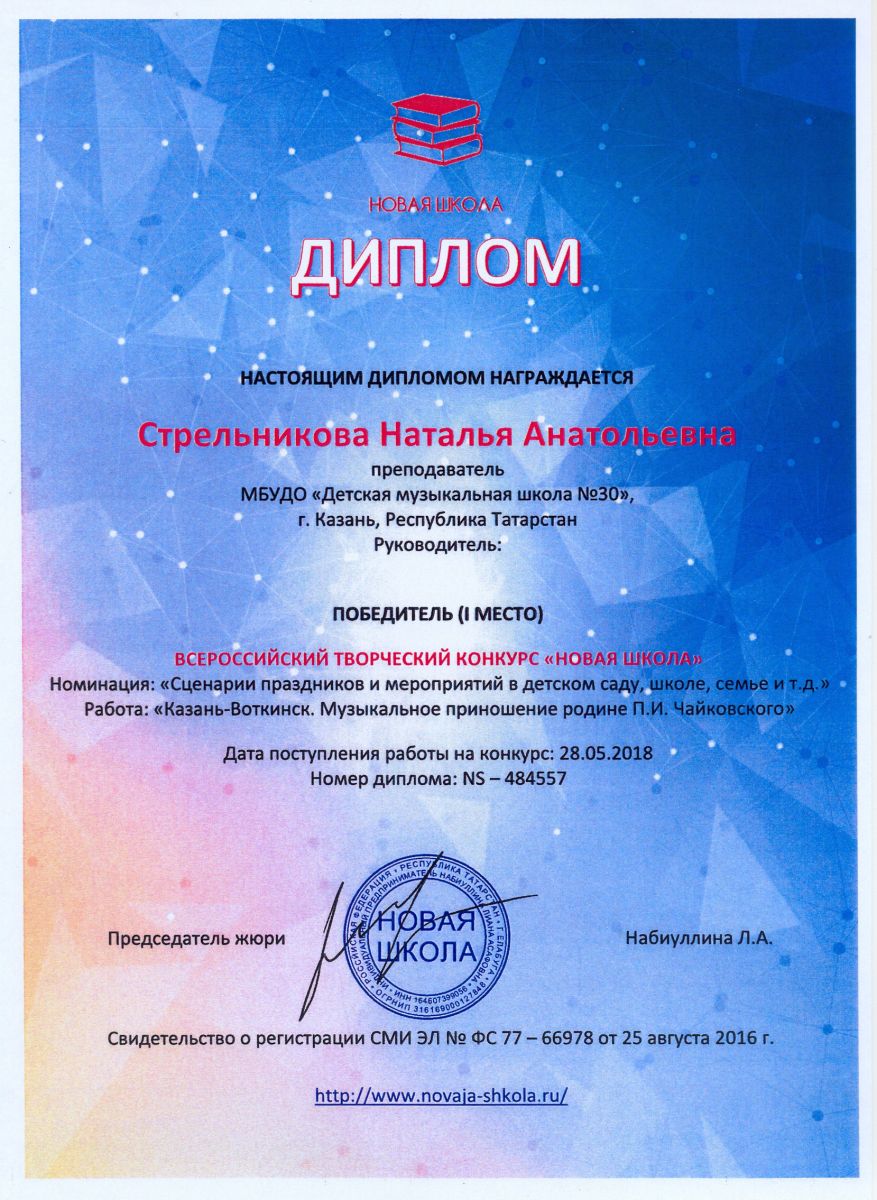 Всероссийский творческий конкурс "Новая школа" - Стрельникова Н.А. - I место