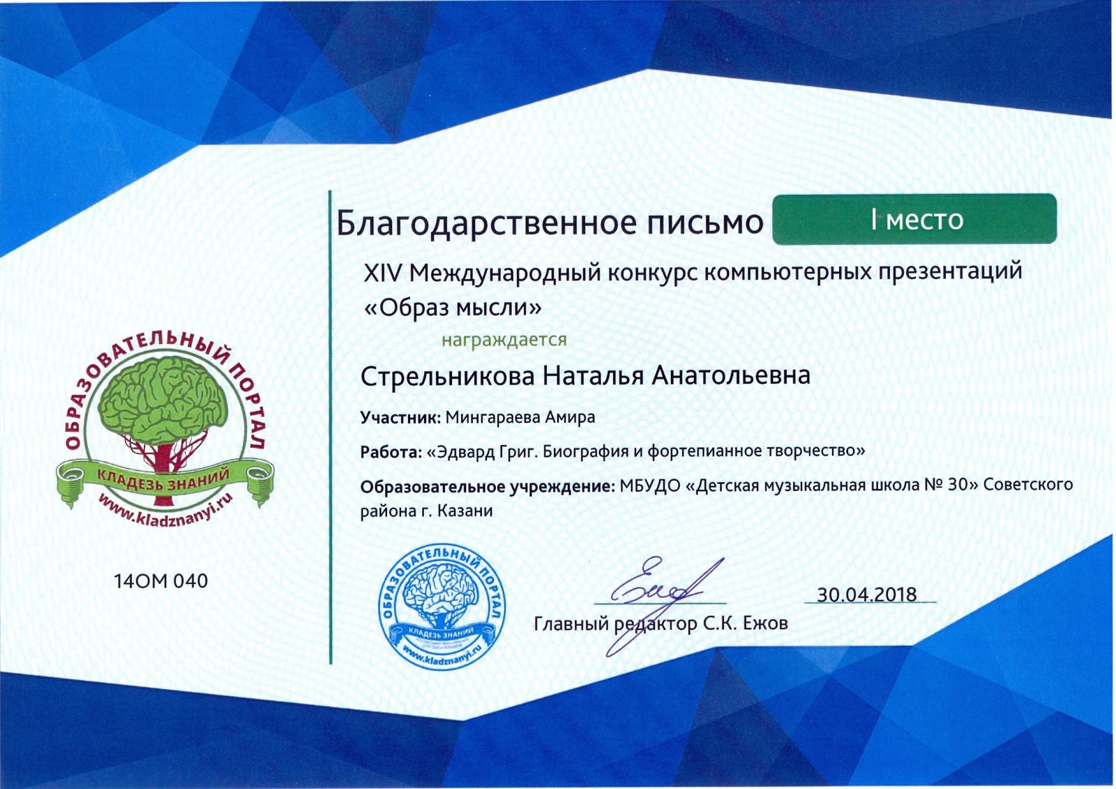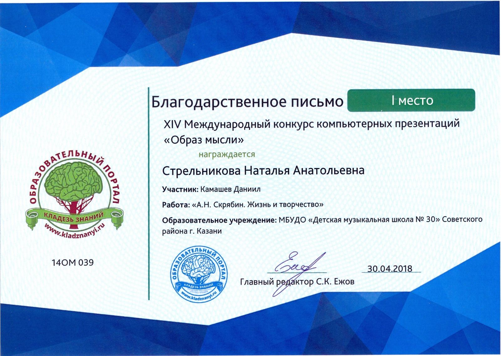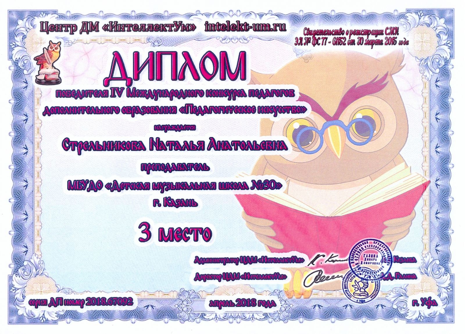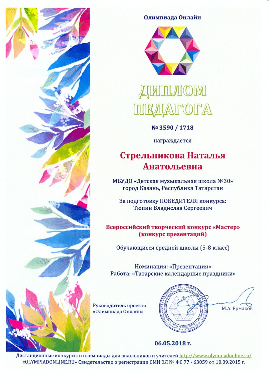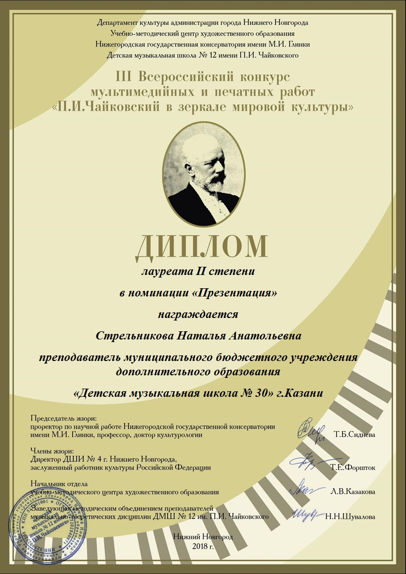 Всероссийский творческий конкурс "Новая школа" - Стрельникова Н.А. - I место