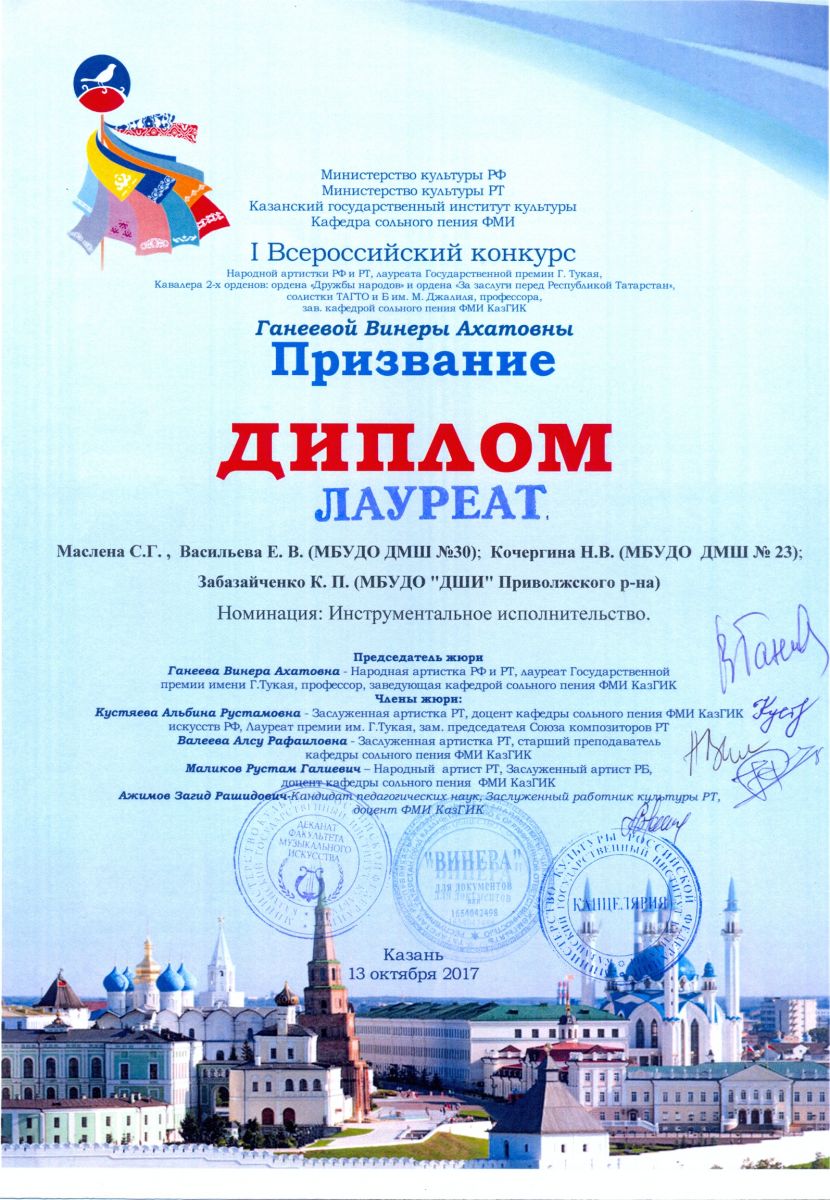 I Всероссийский конкурс В.А.Ганеевой "Призвание" - Васильева Е.В., Маслена С.Г. - лауреаты