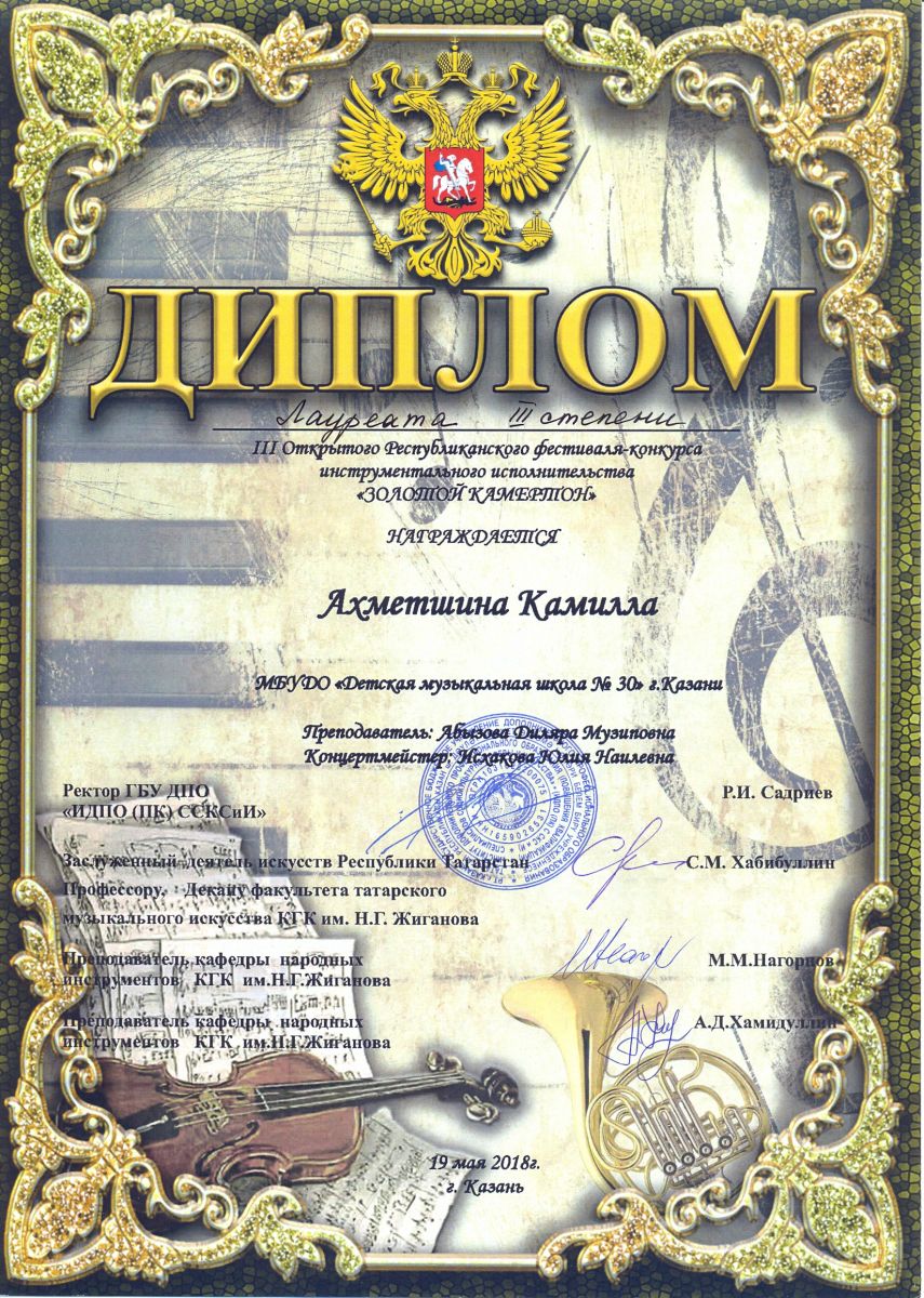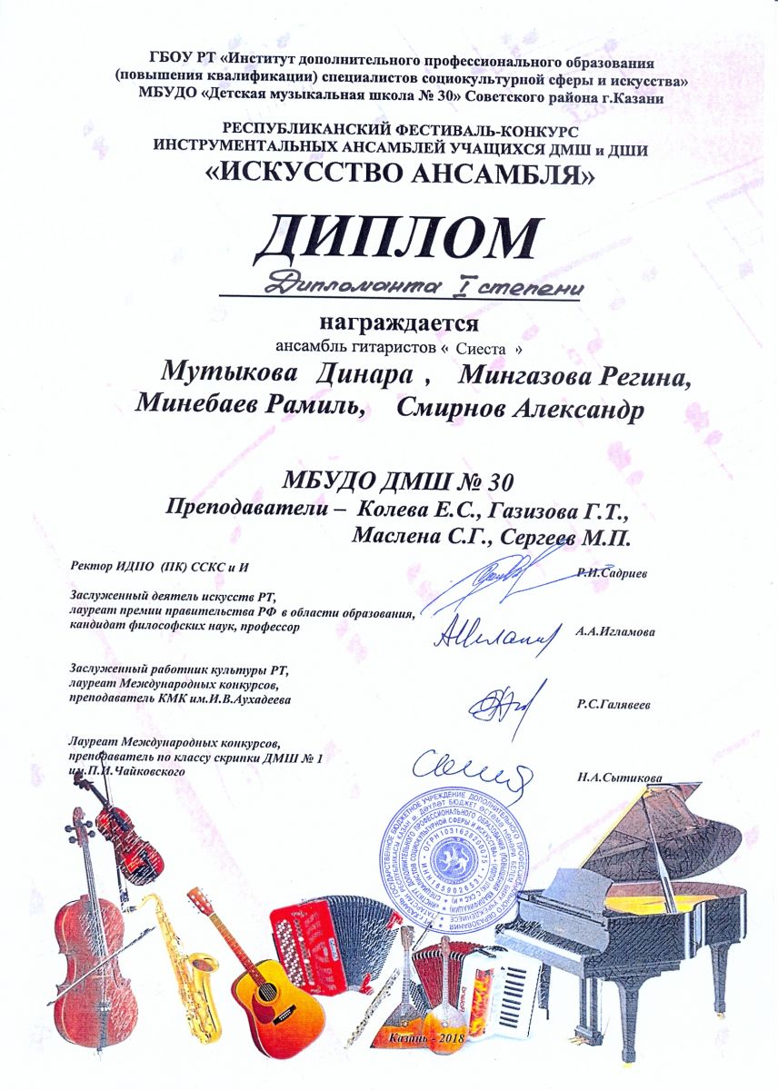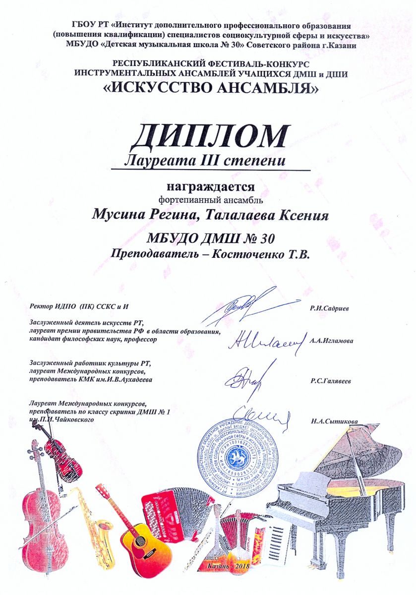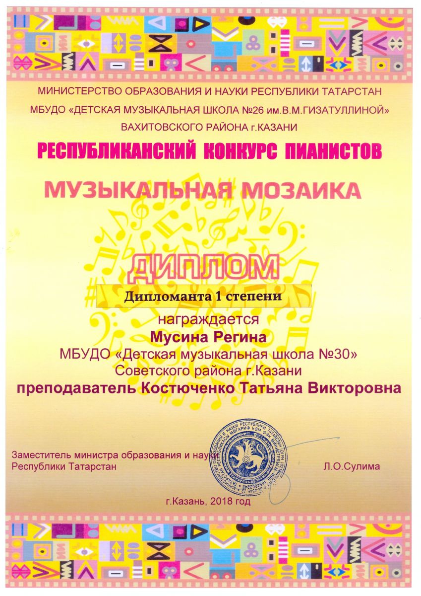 Республиканский конкурс пианистов "Музыкальная мозаика" - Мусина Регина - диплом I степени