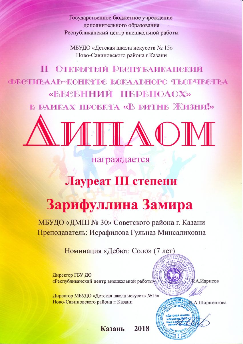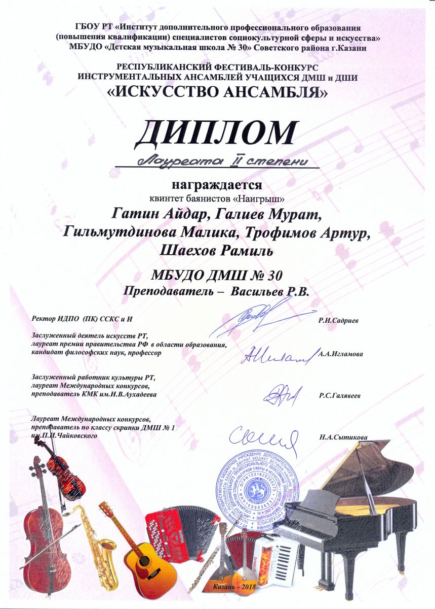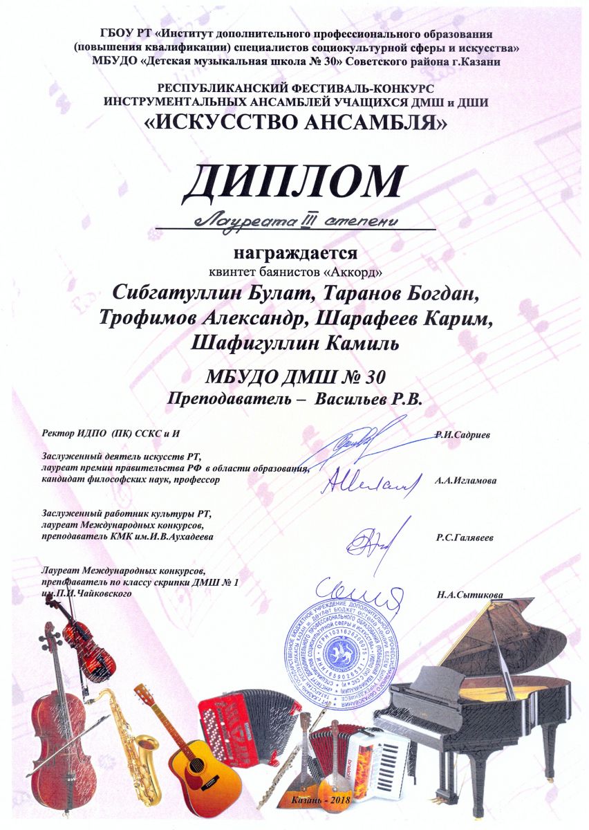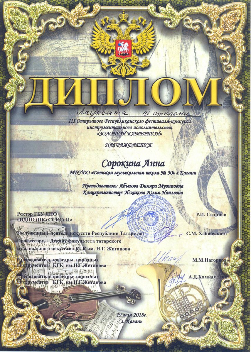 Республиканский конкурс пианистов "Музыкальная мозаика" - Мусина Регина - диплом I степени